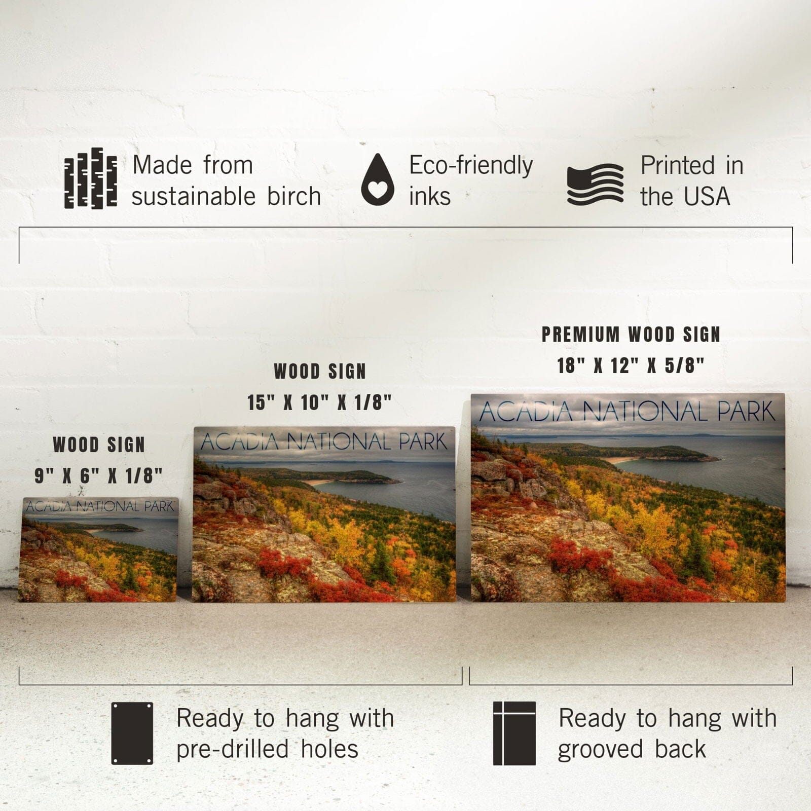 Acadia National Park, Maine, Fall Scenery, Lantern Press Photography, Wood Signs and Postcards