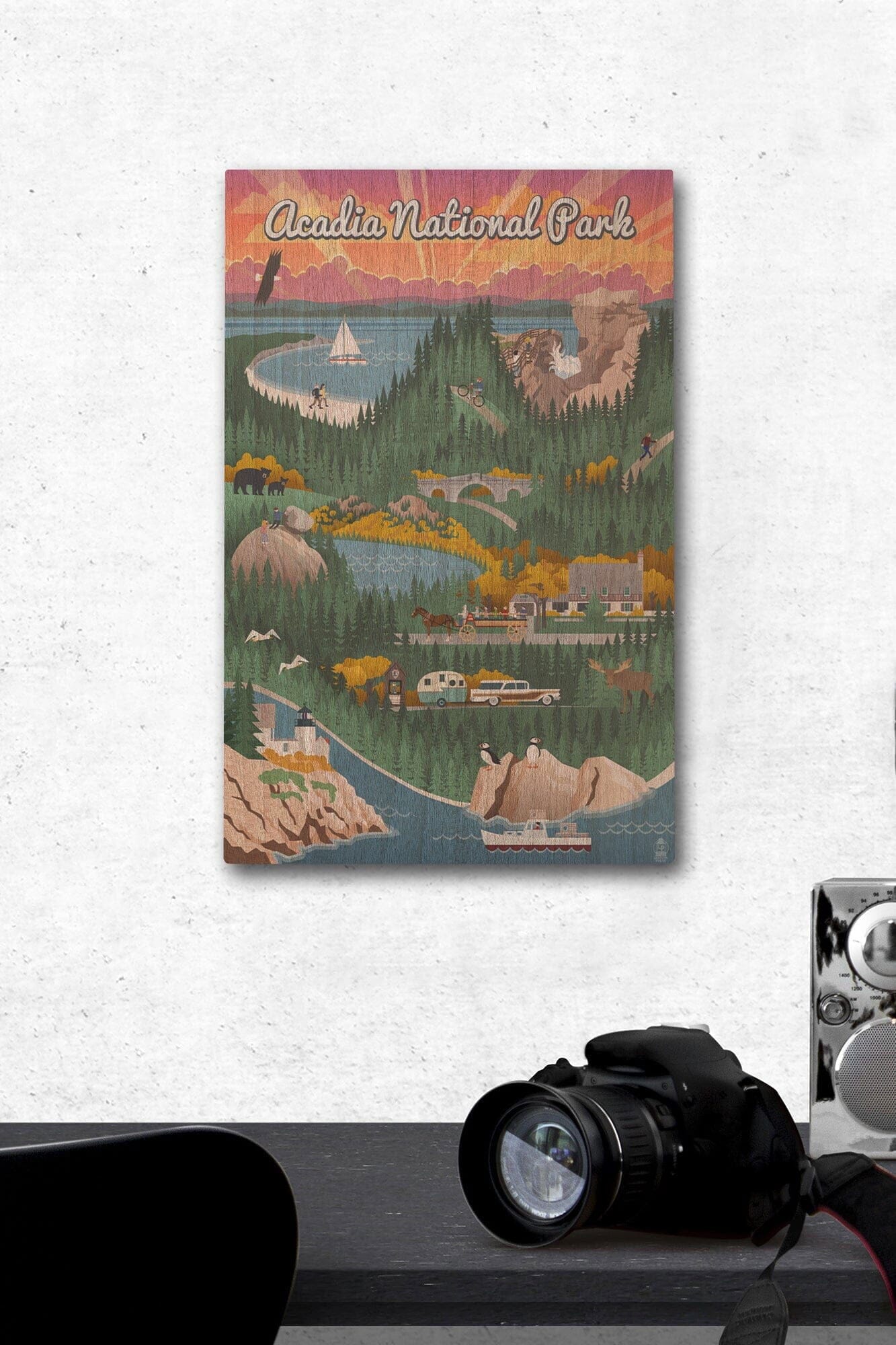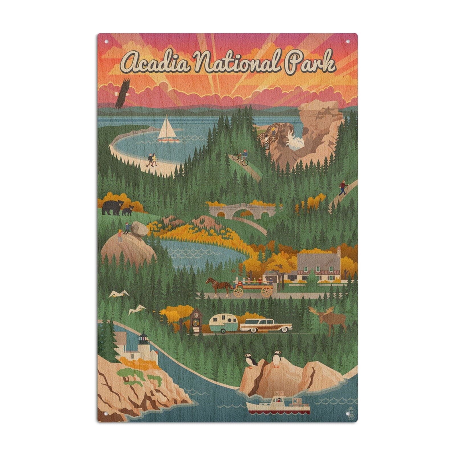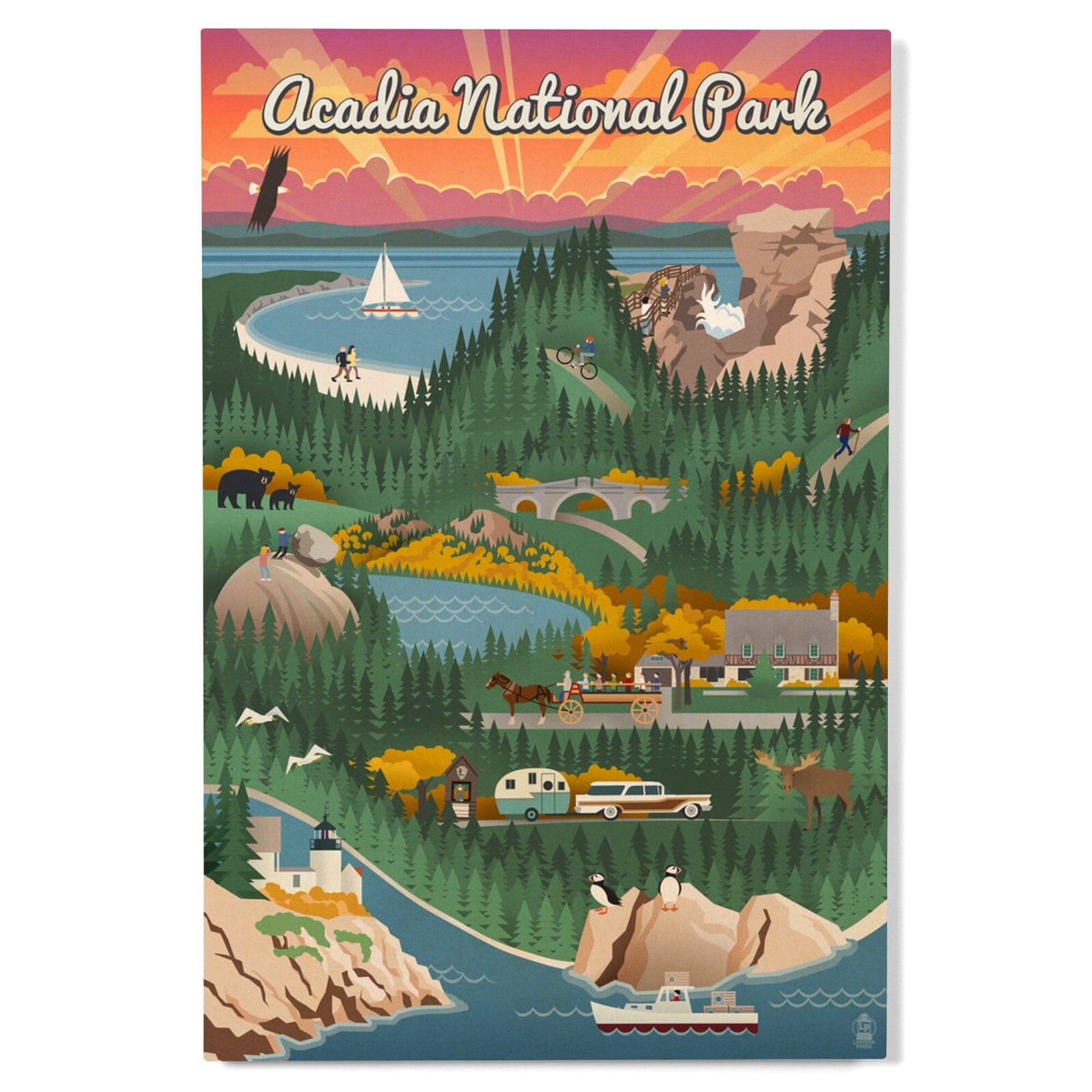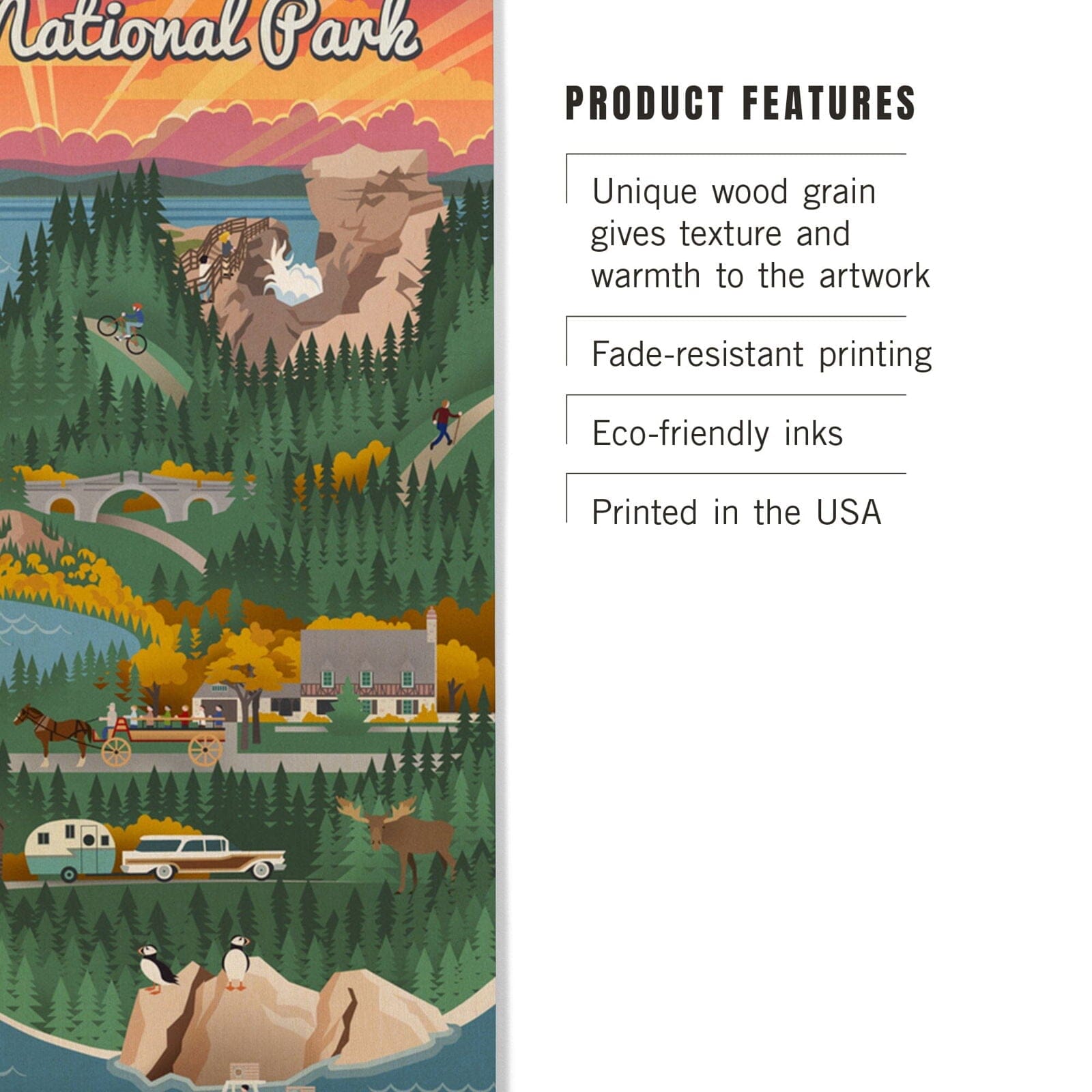 Acadia National Park, Maine, Retro View, Lantern Press Artwork, Wood Signs and Postcards Wood Lantern Press