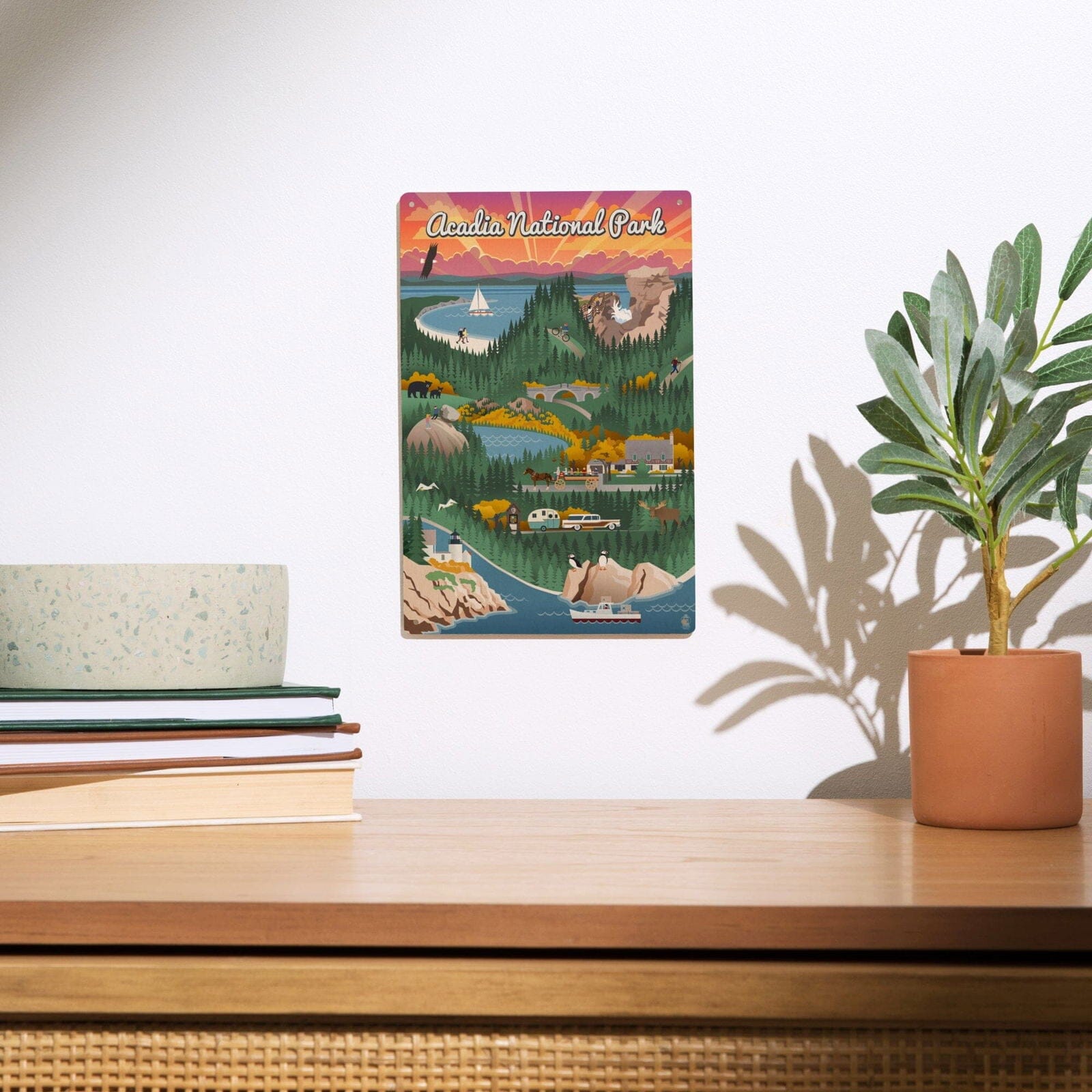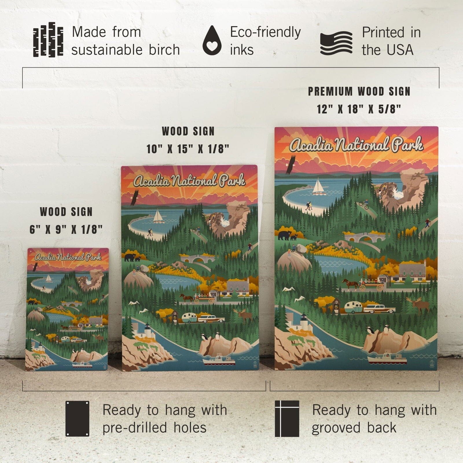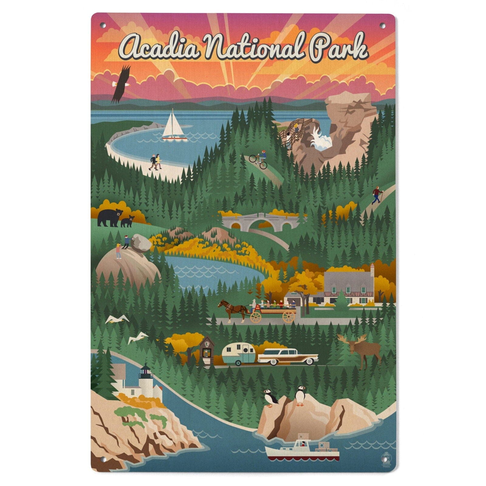 Acadia National Park, Maine, Retro View, Lantern Press Artwork, Wood Signs and Postcards