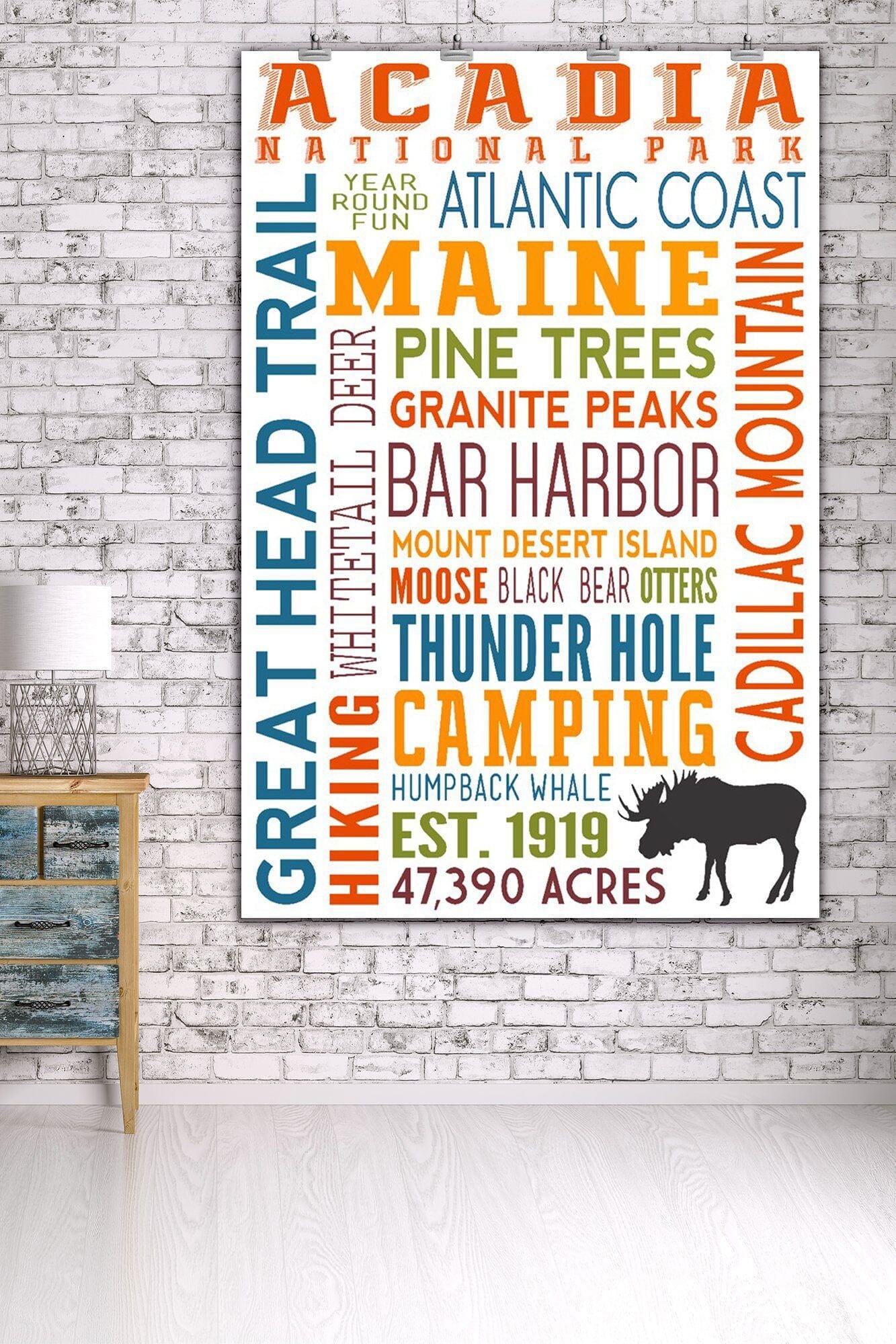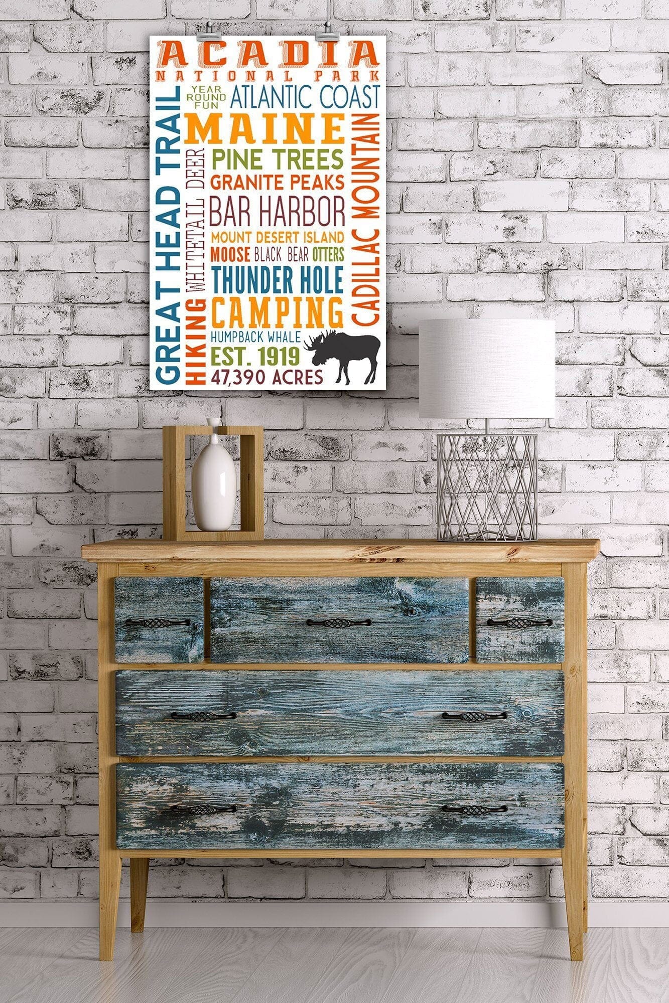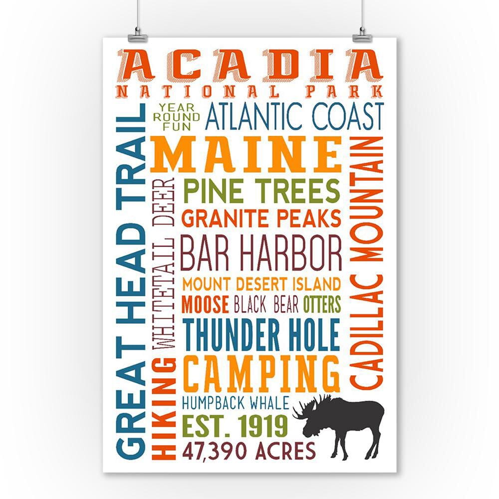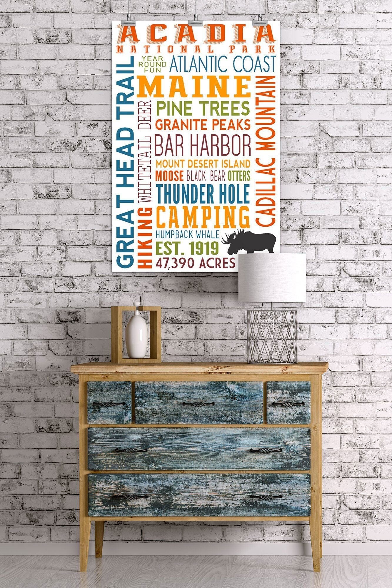 Acadia National Park, Maine, Typography, Art & Giclee Prints Art Lantern Press