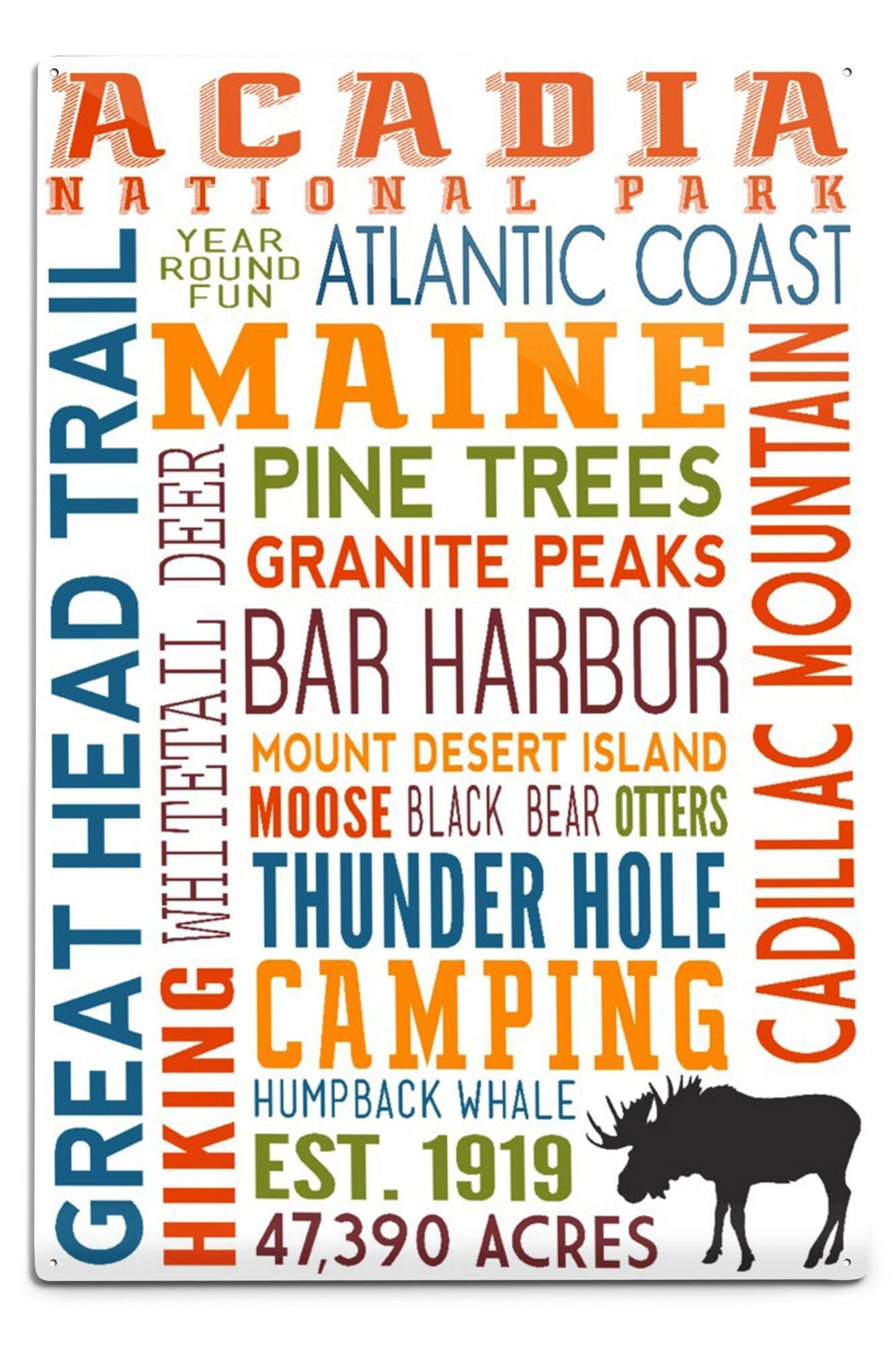 Acadia National Park, Maine, Typography, Art & Giclee Prints