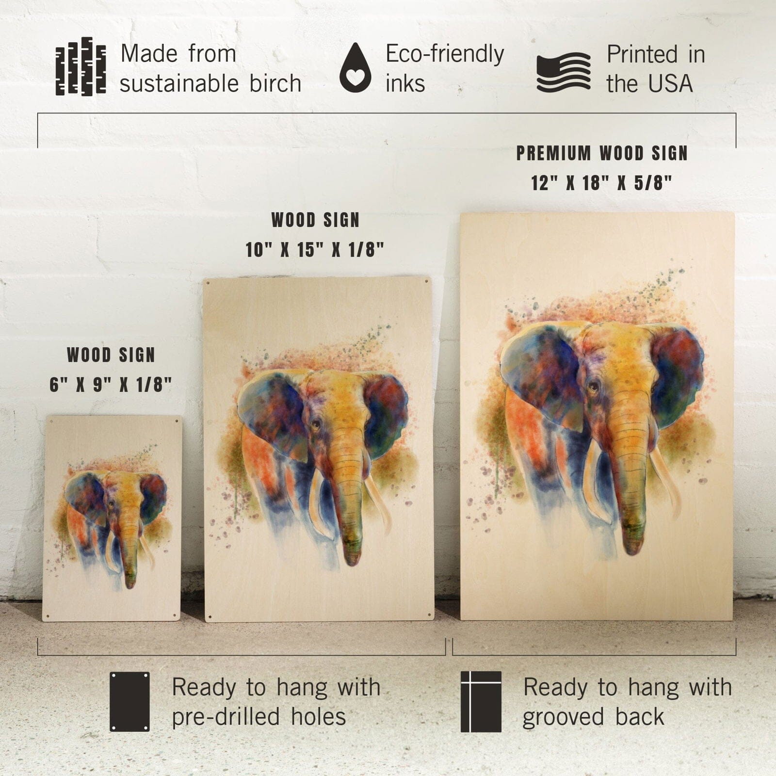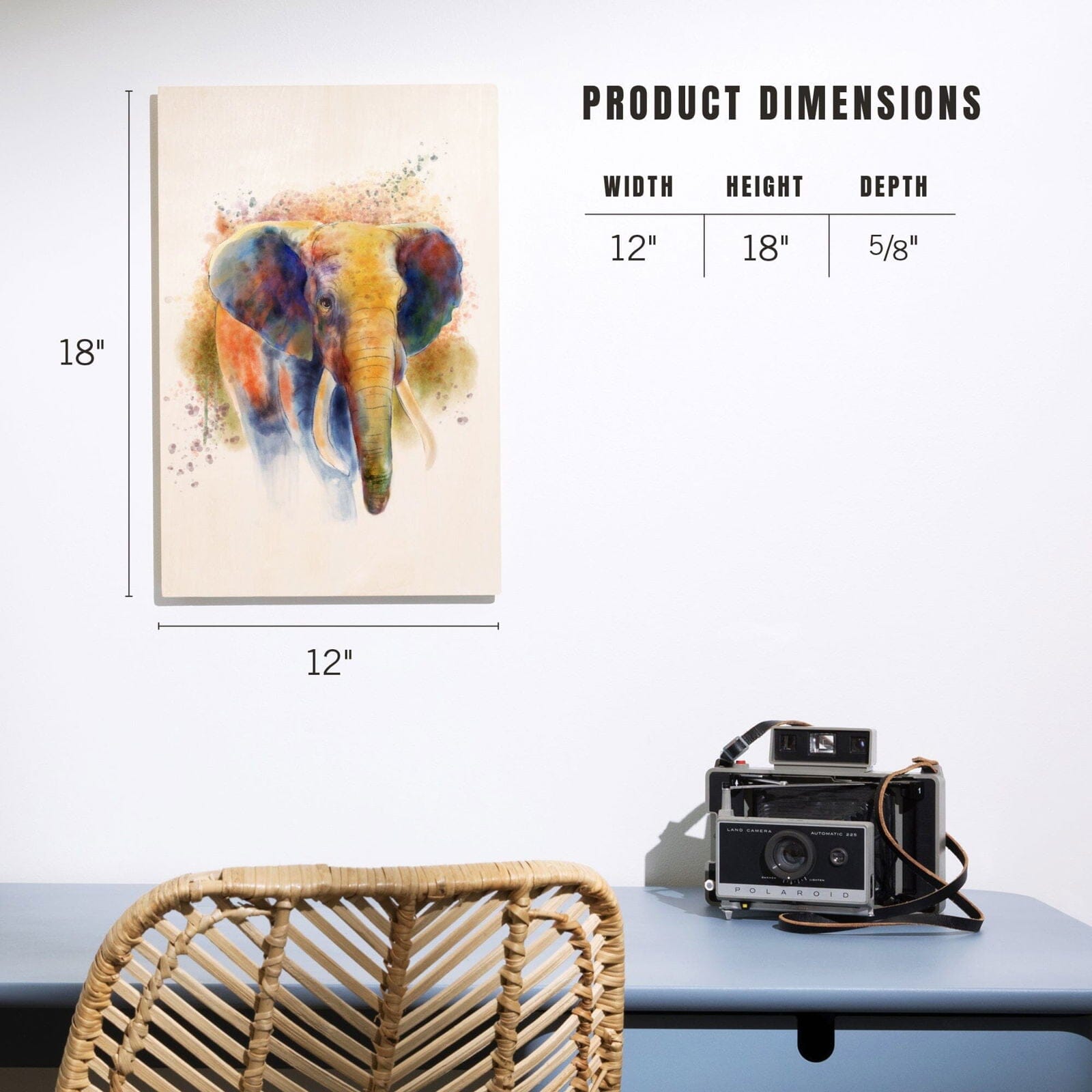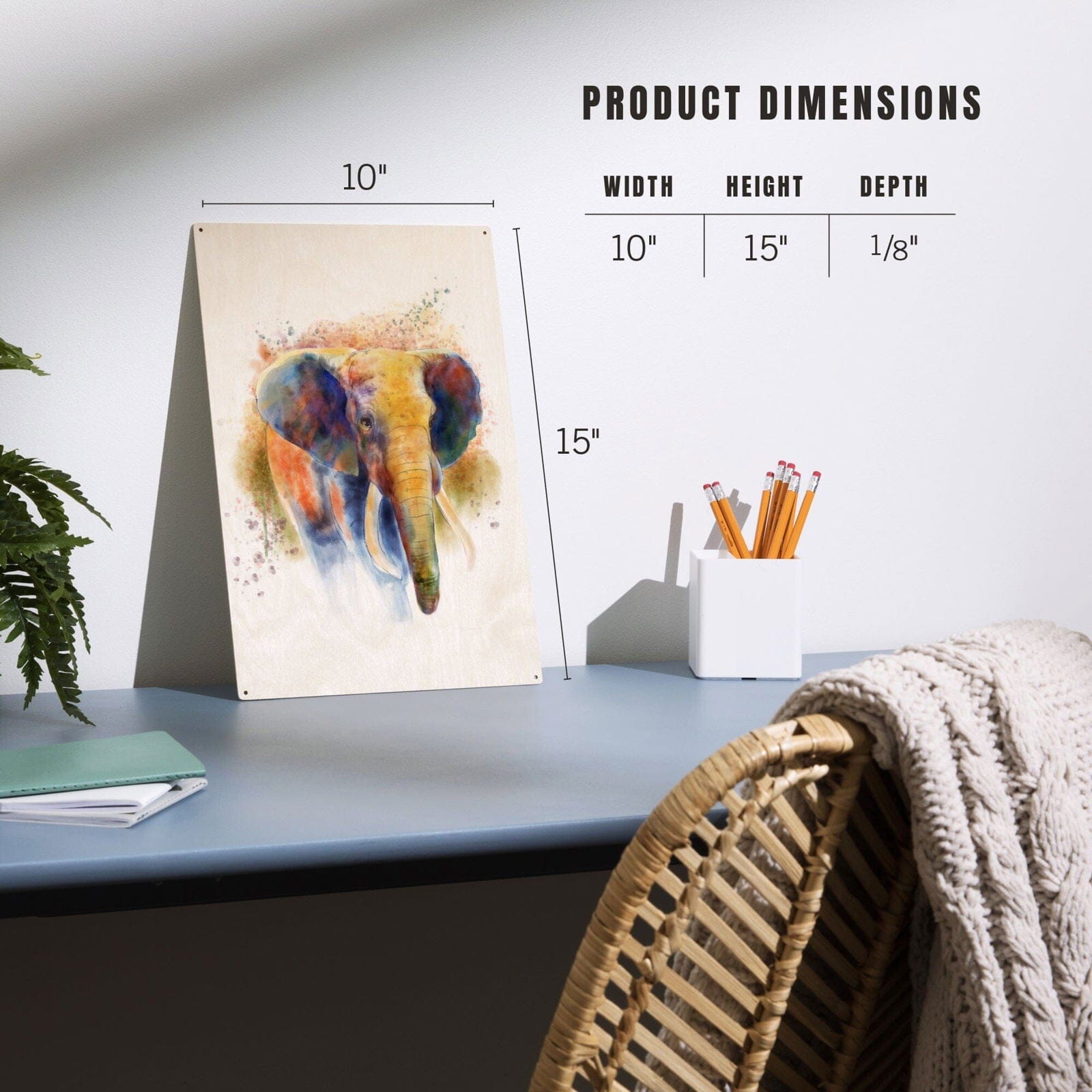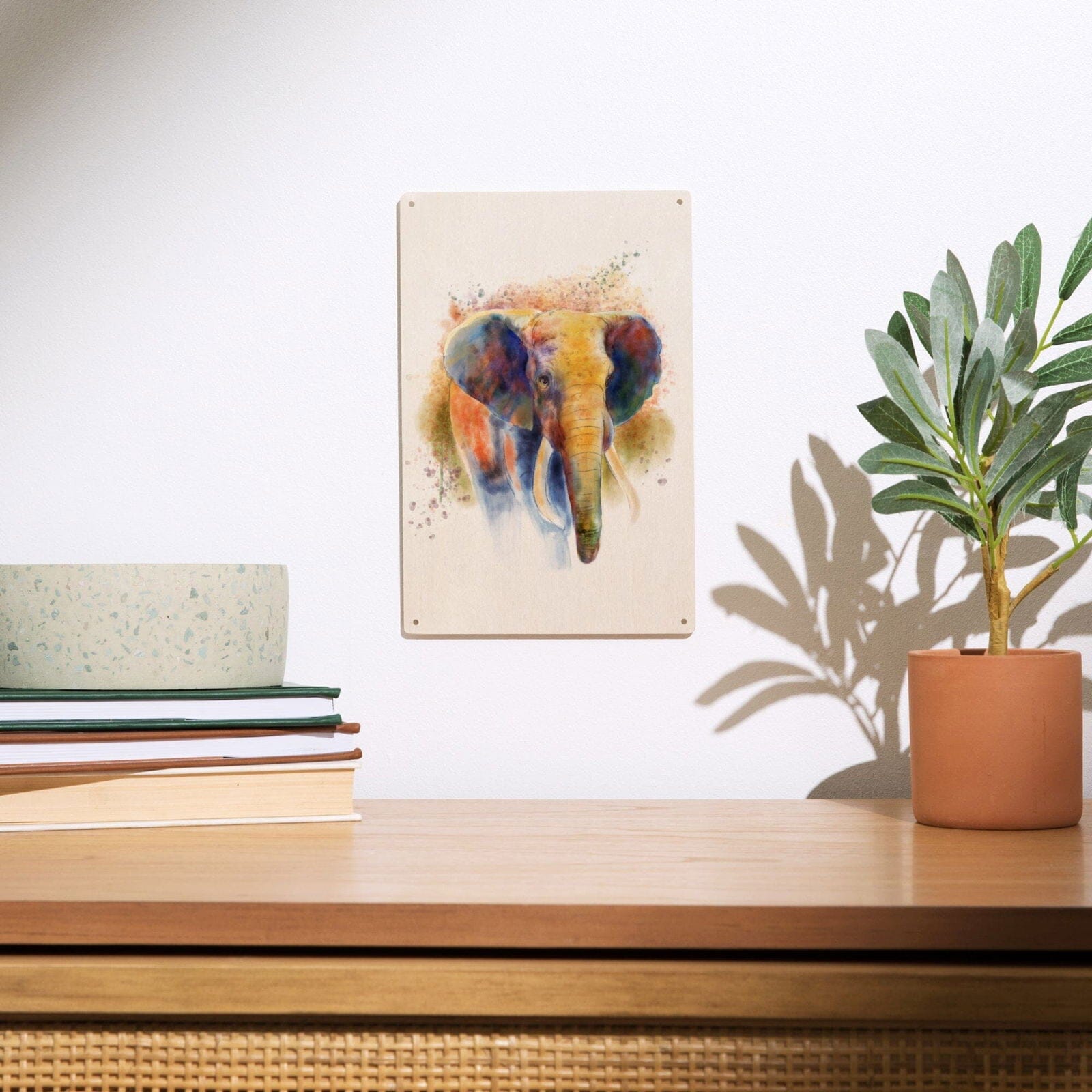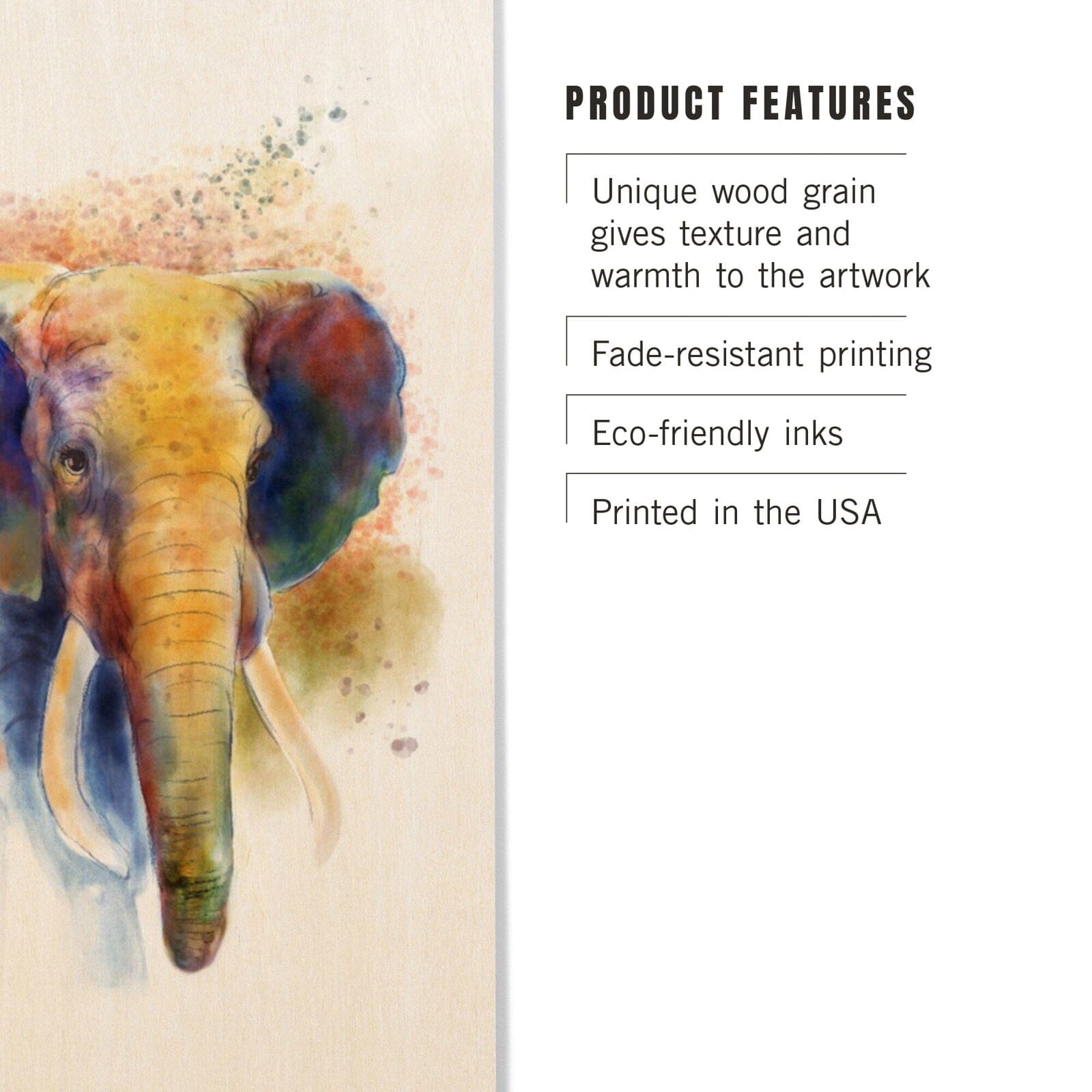 African Elephant, Watercolor, Lantern Press Artwork, Wood Signs and Postcards Wood Lantern Press