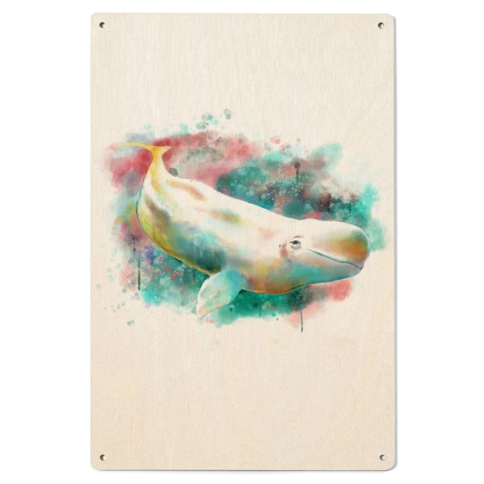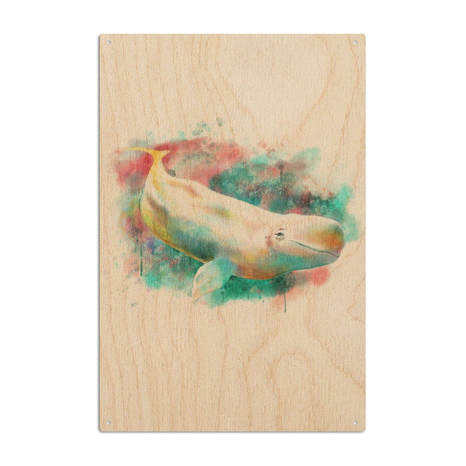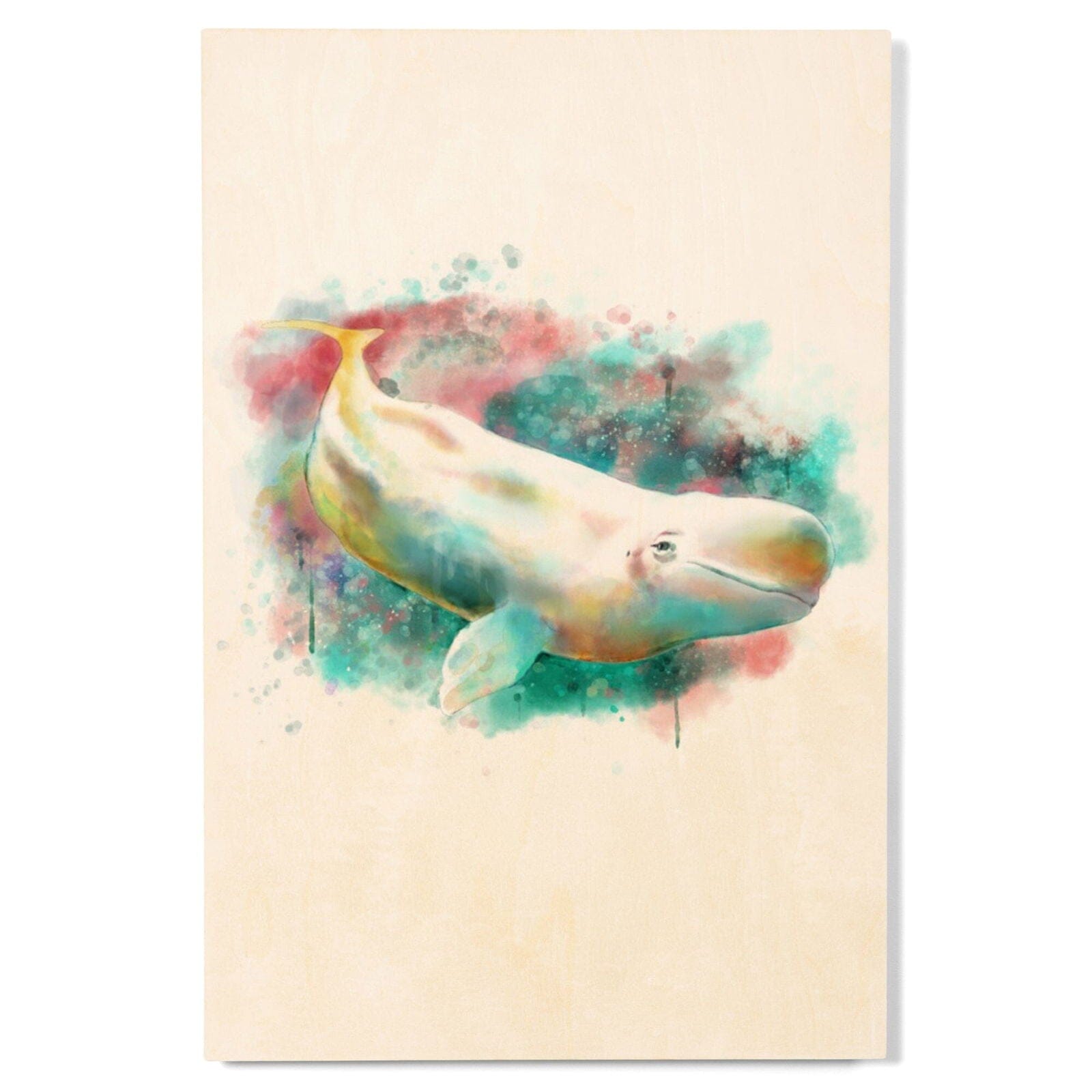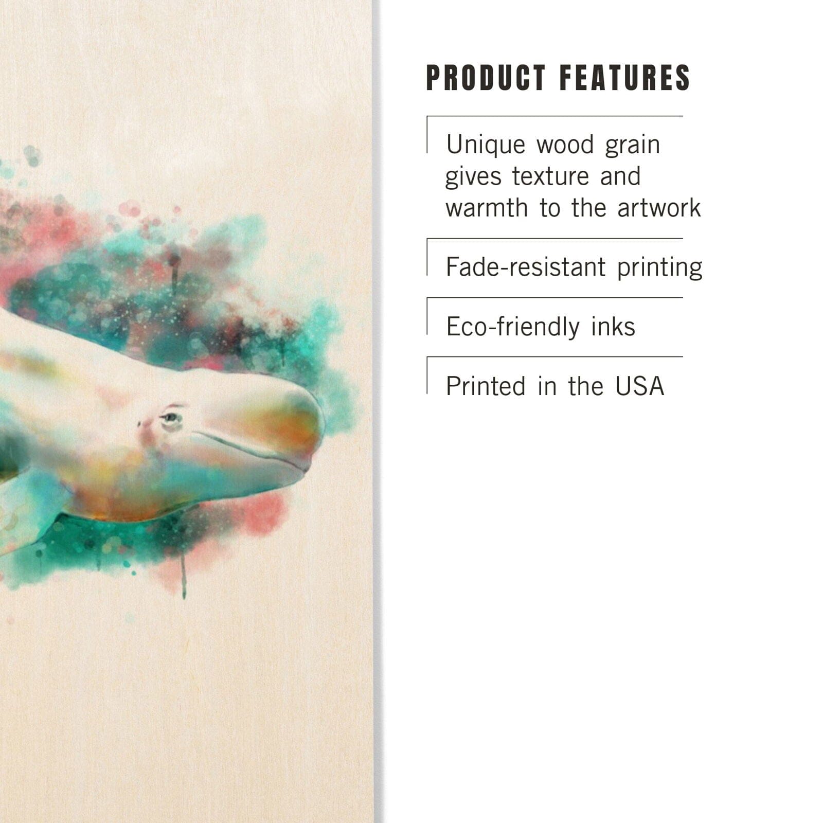 Beluga Whale, Watercolor, Lantern Press Artwork, Wood Signs and Postcards Wood Lantern Press