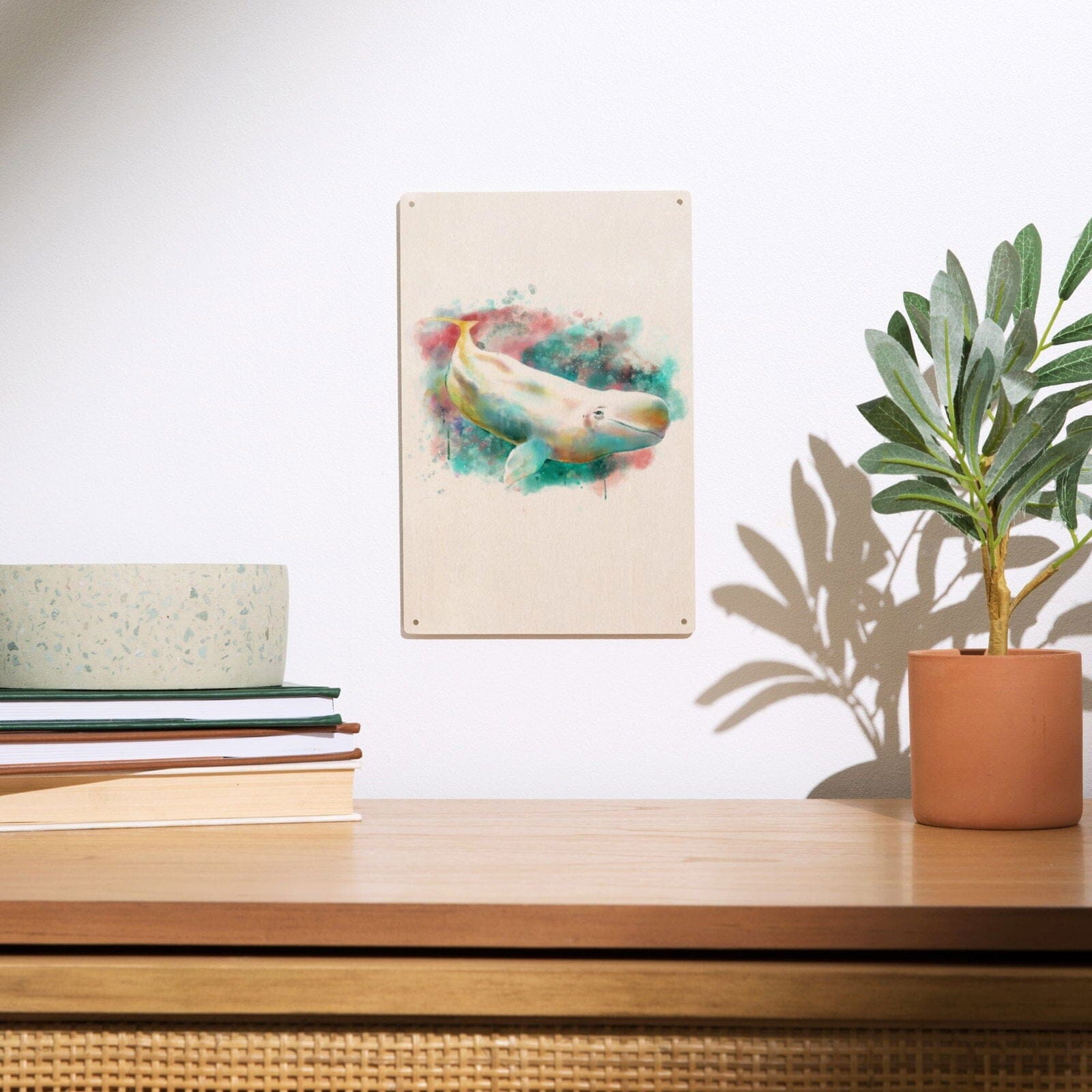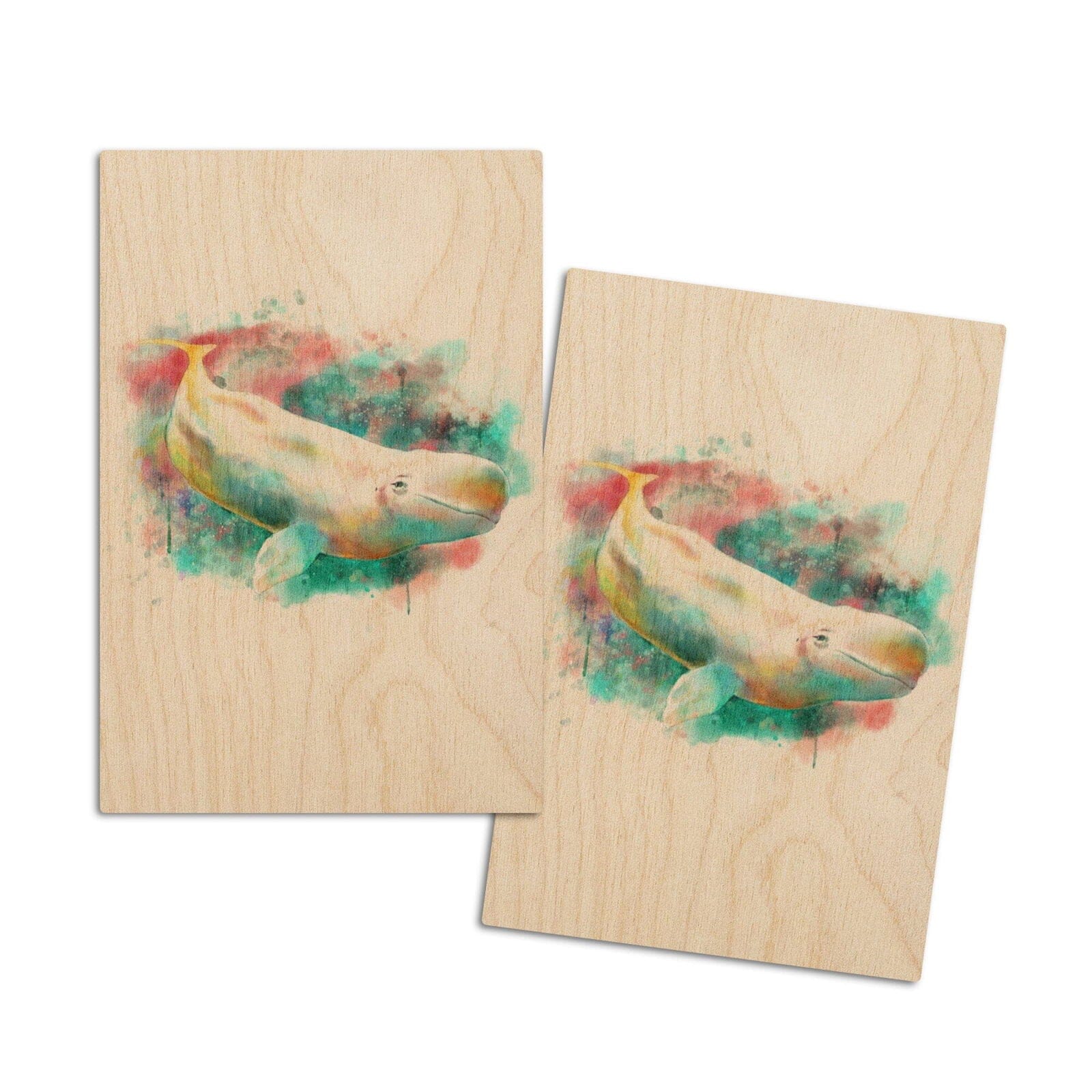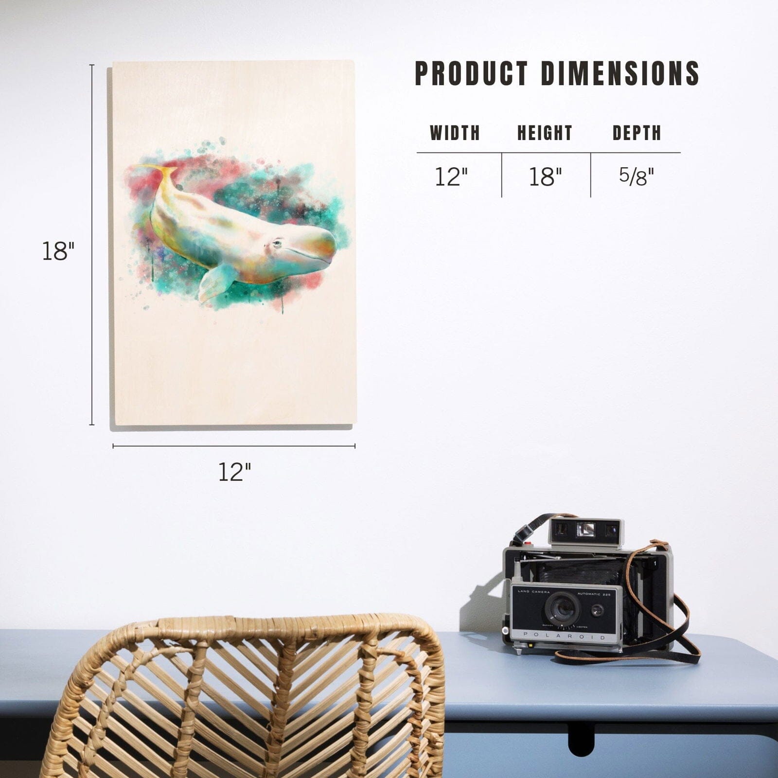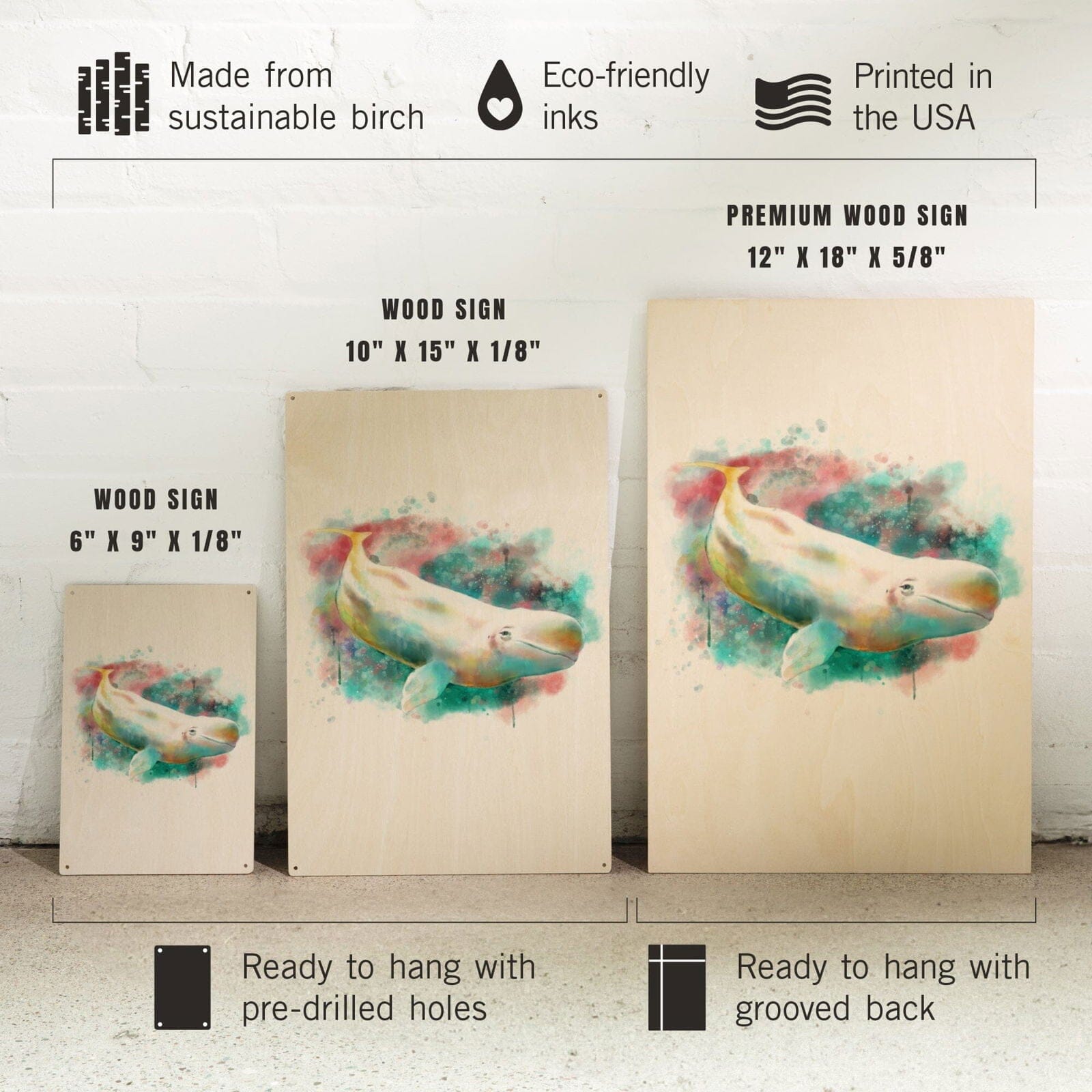 Beluga Whale, Watercolor, Lantern Press Artwork, Wood Signs and Postcards Wood Lantern Press