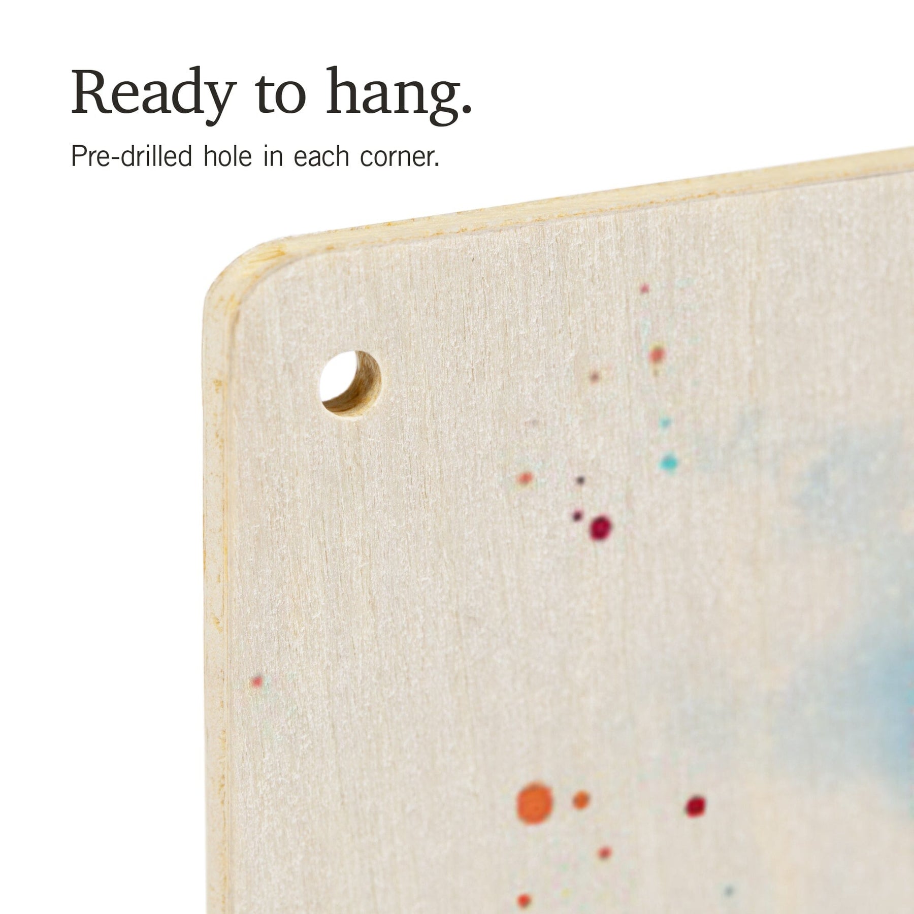 • Hole in each corner, ready to hang