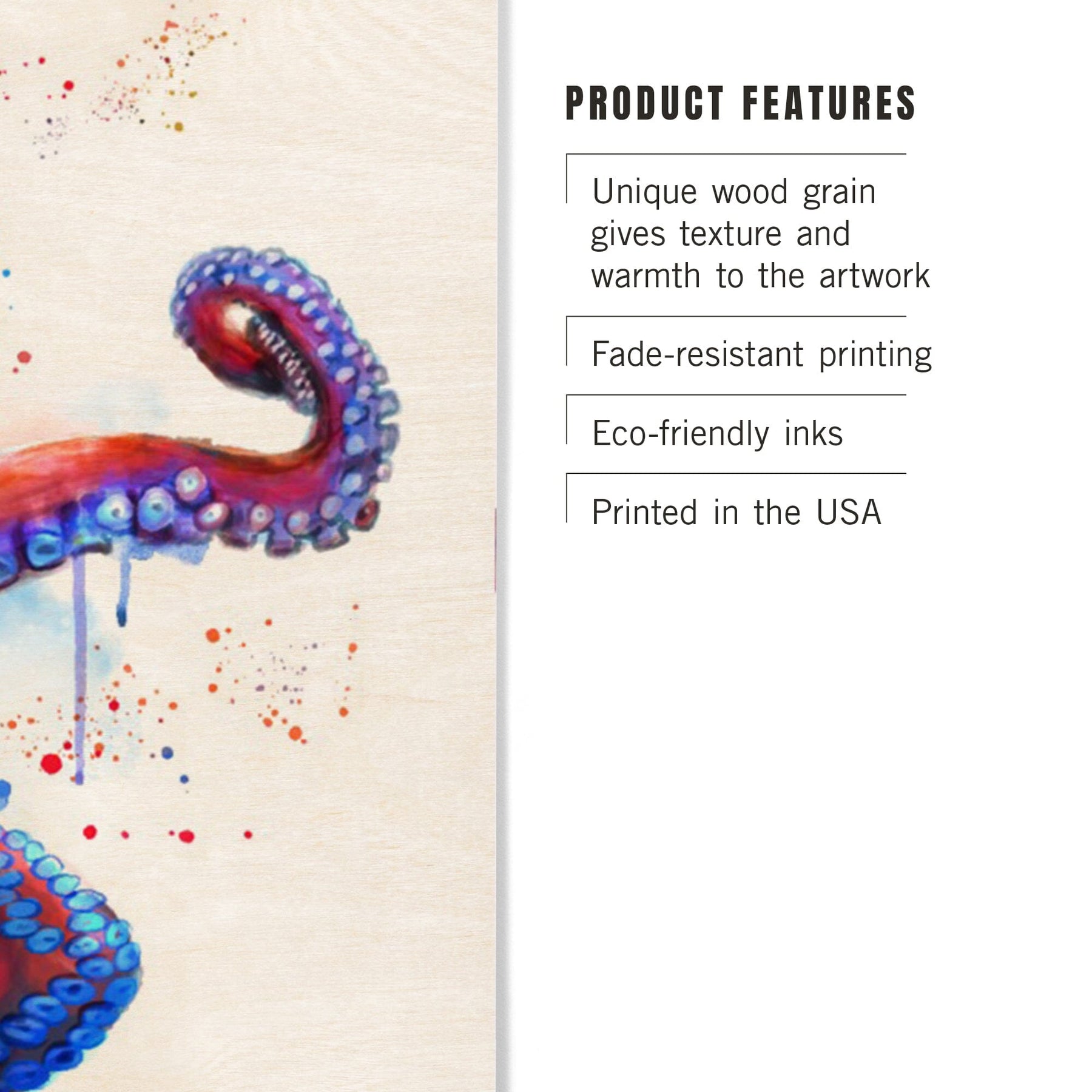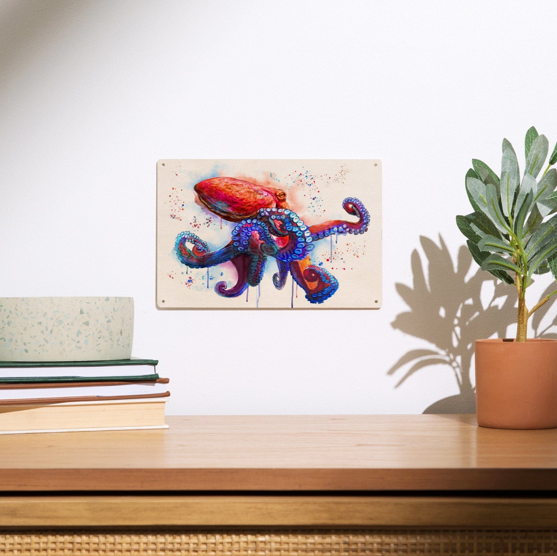 Octopus, Watercolor, Lantern Press Artwork, Wood Signs and Postcards Wood Lantern Press