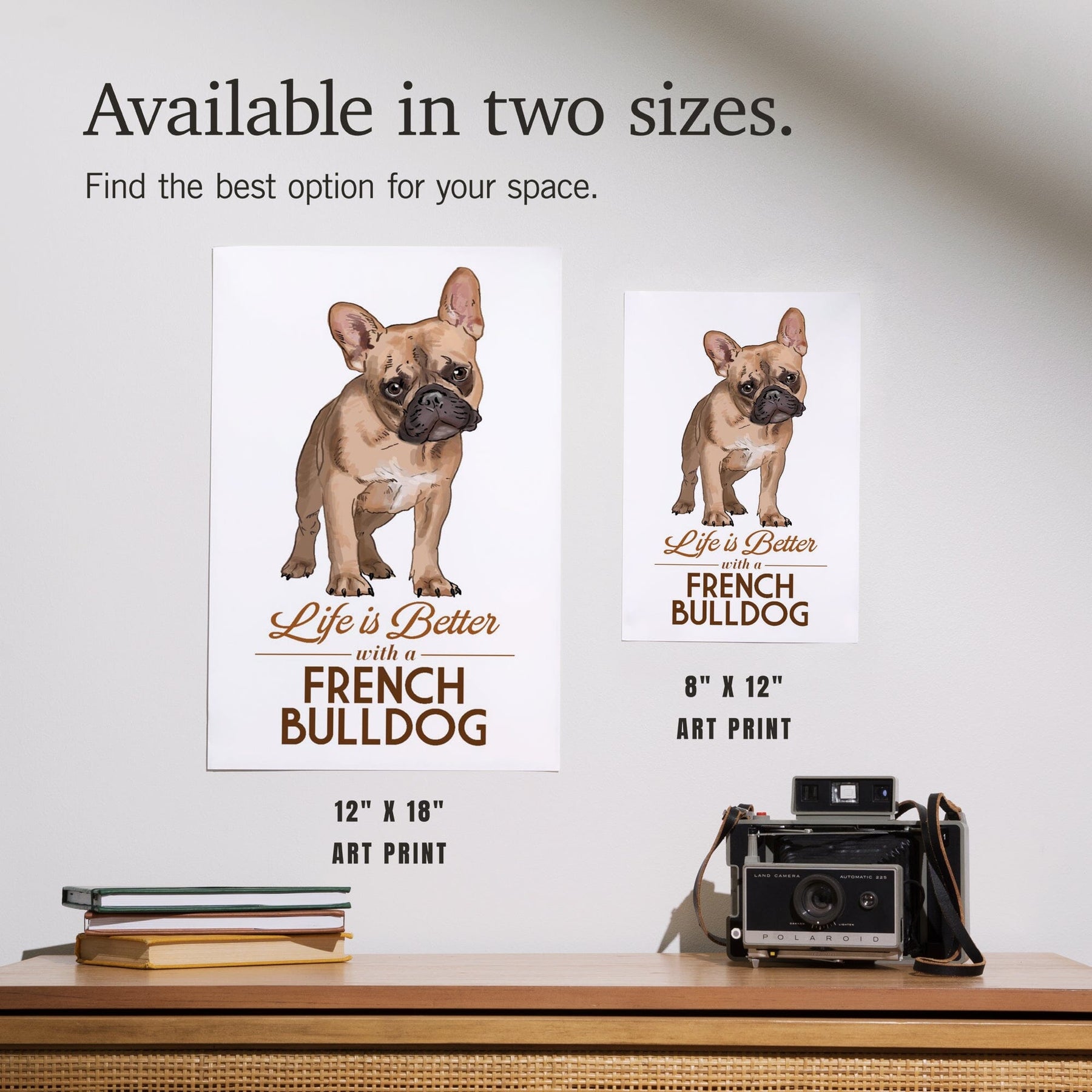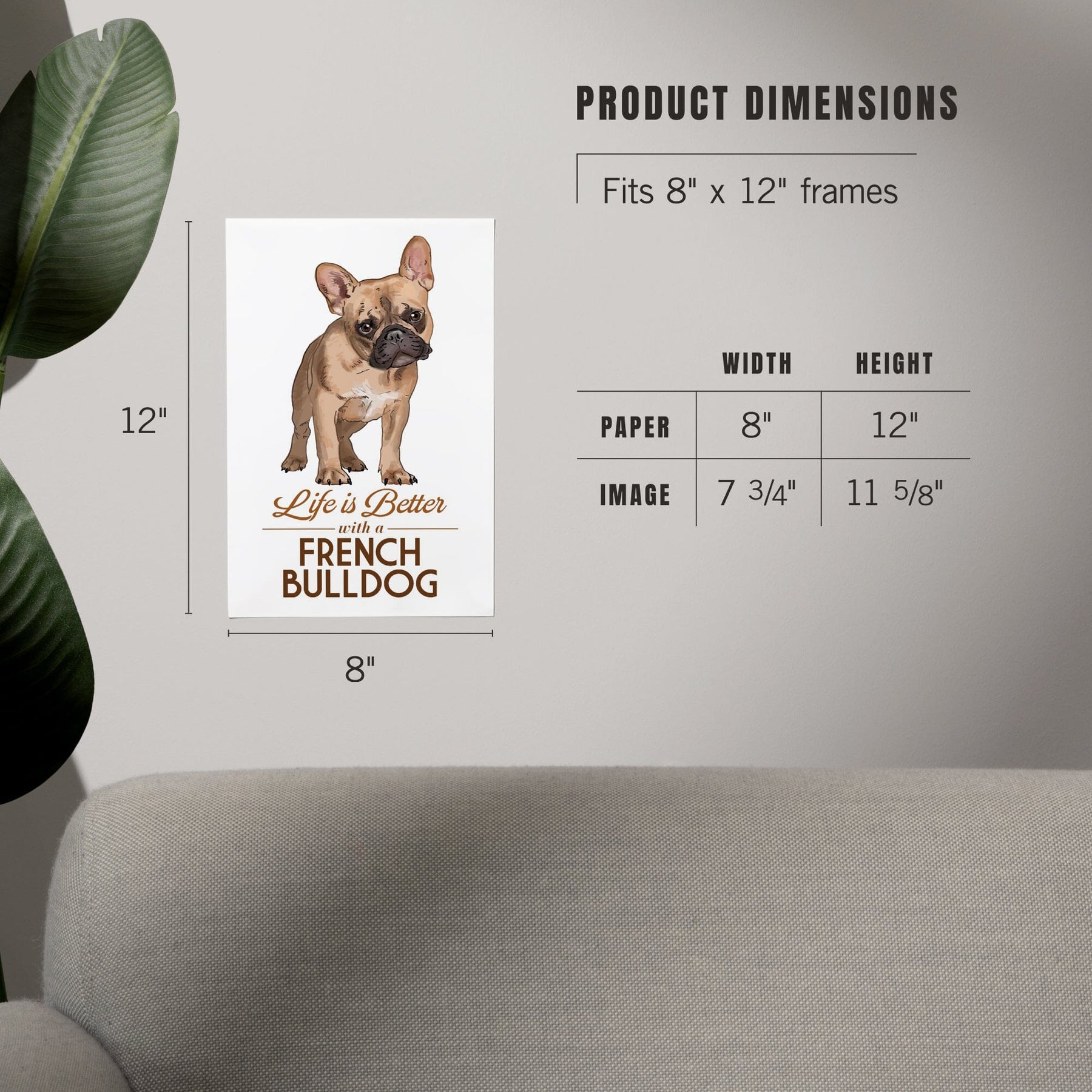 French Bulldog, Tan, Life is Better, White Background, Art & Giclee Prints