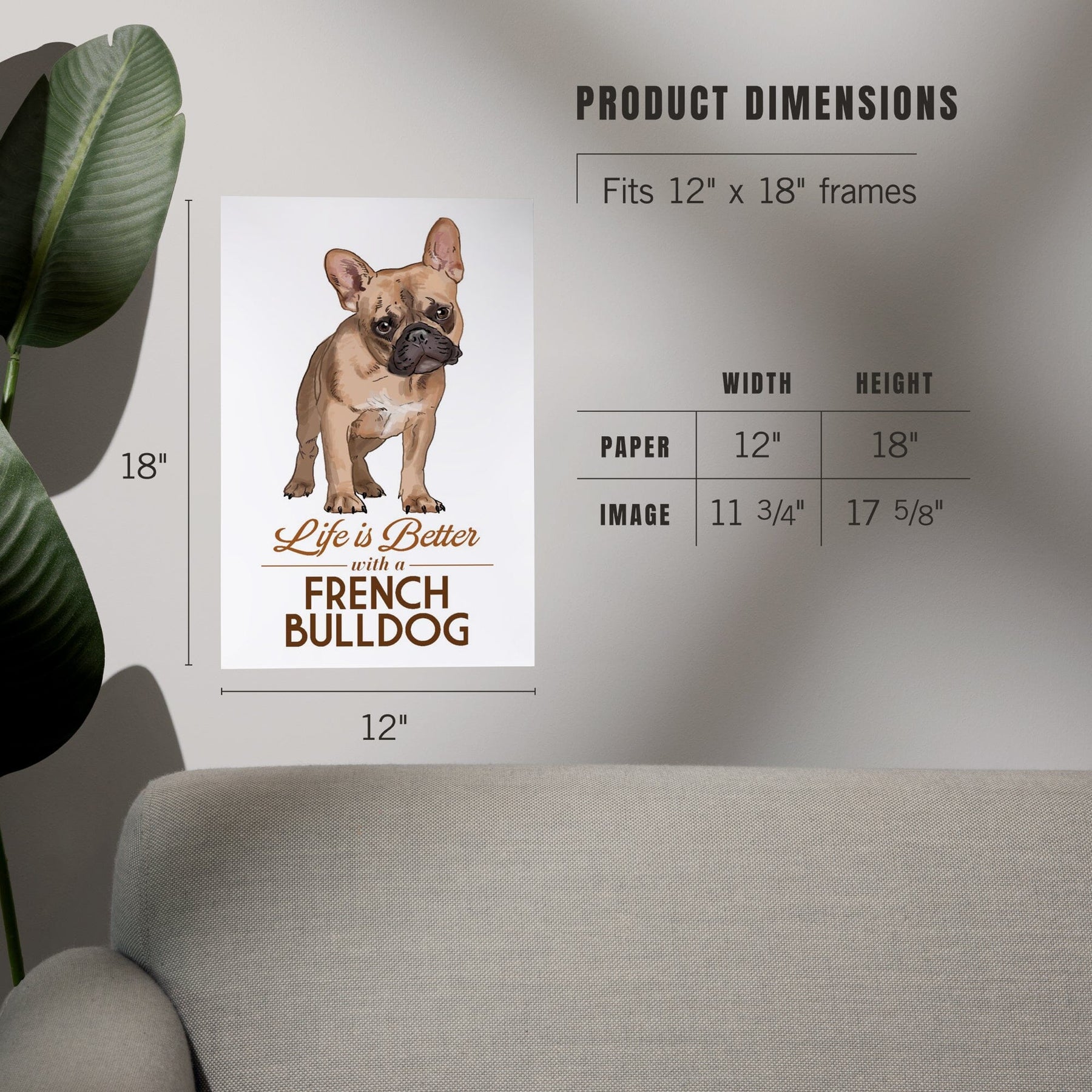 French Bulldog, Tan, Life is Better, White Background, Art & Giclee Prints - Lantern Press