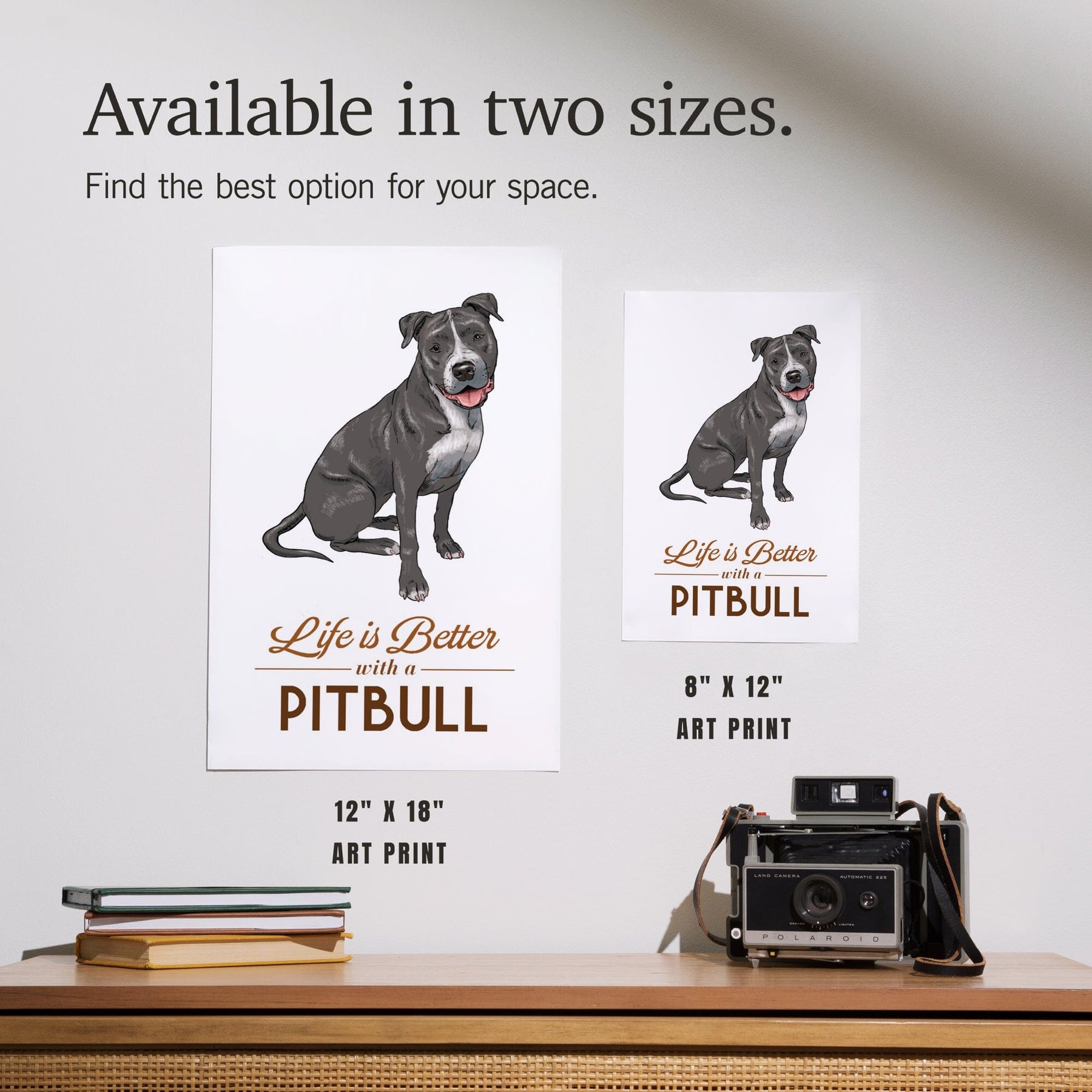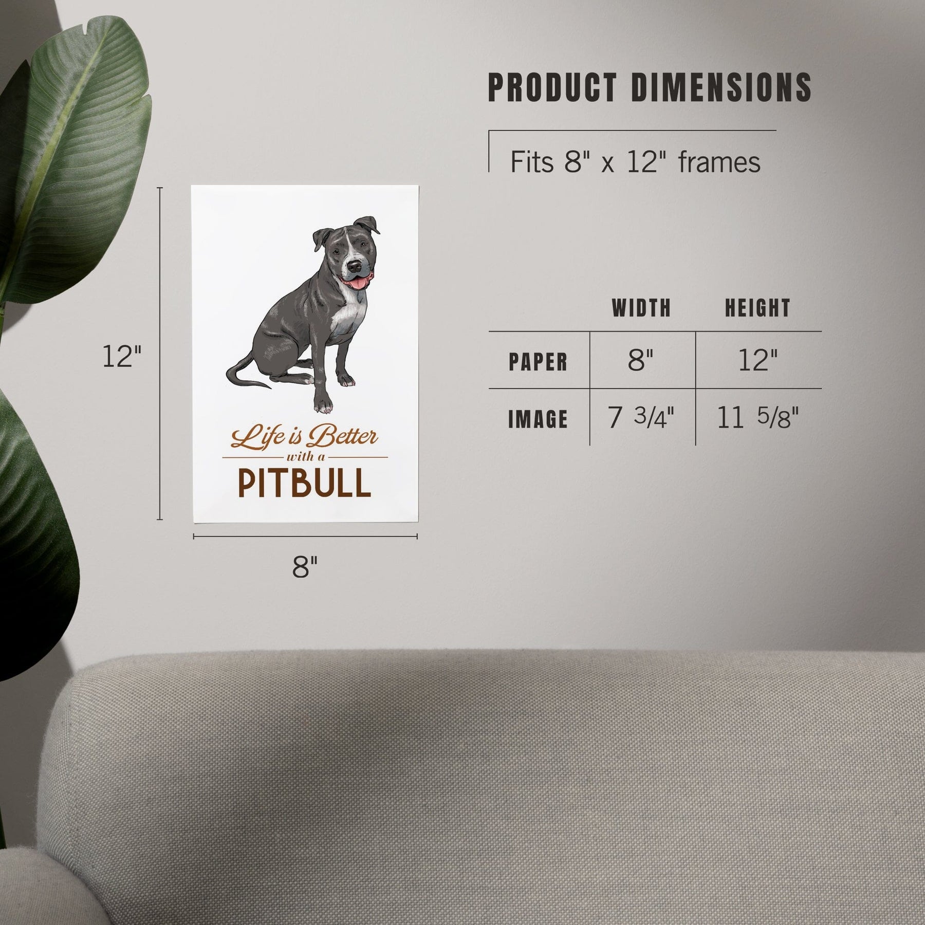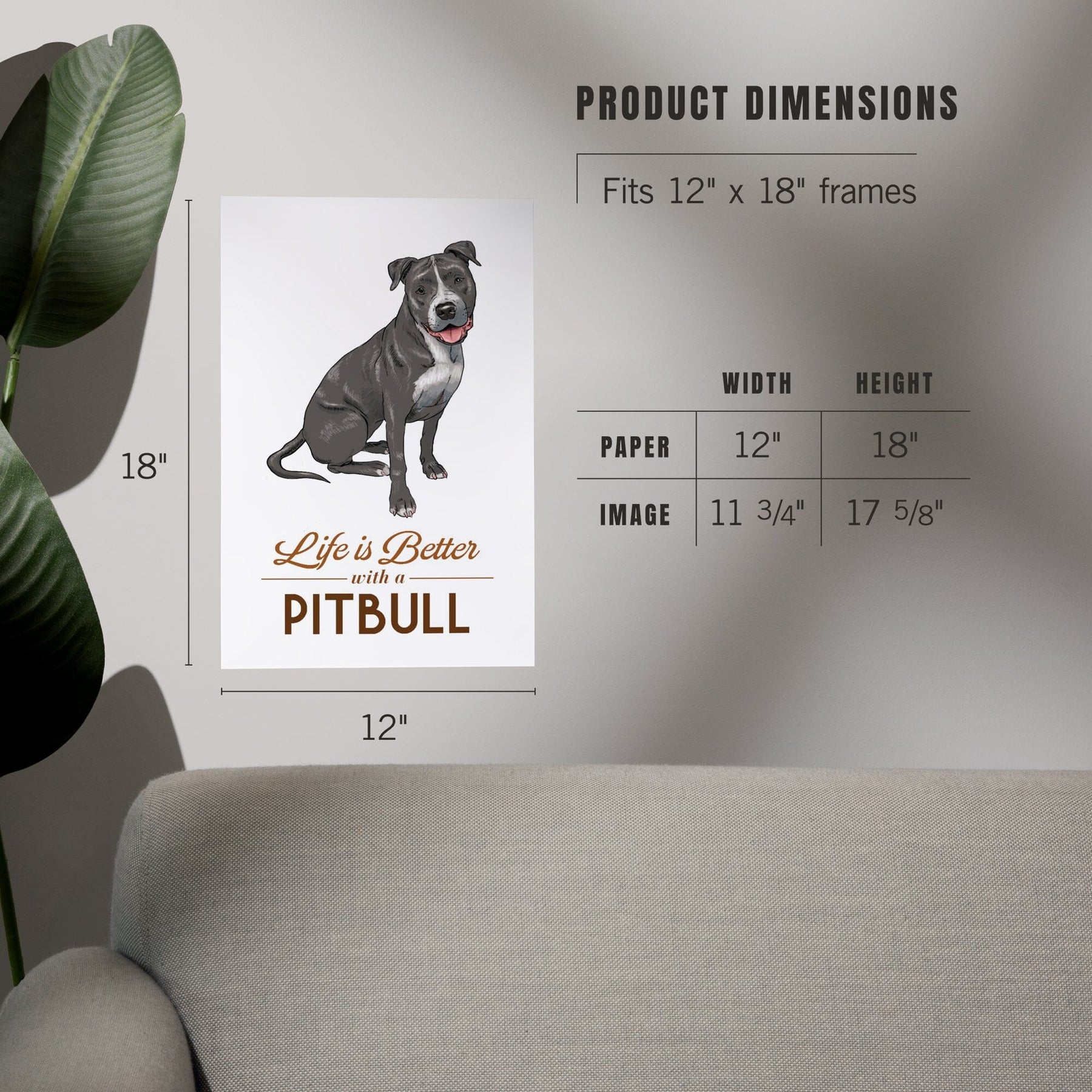 Pitbull, Gray and White, Life is Better, White Background, Art & Giclee Prints Art Lantern Press