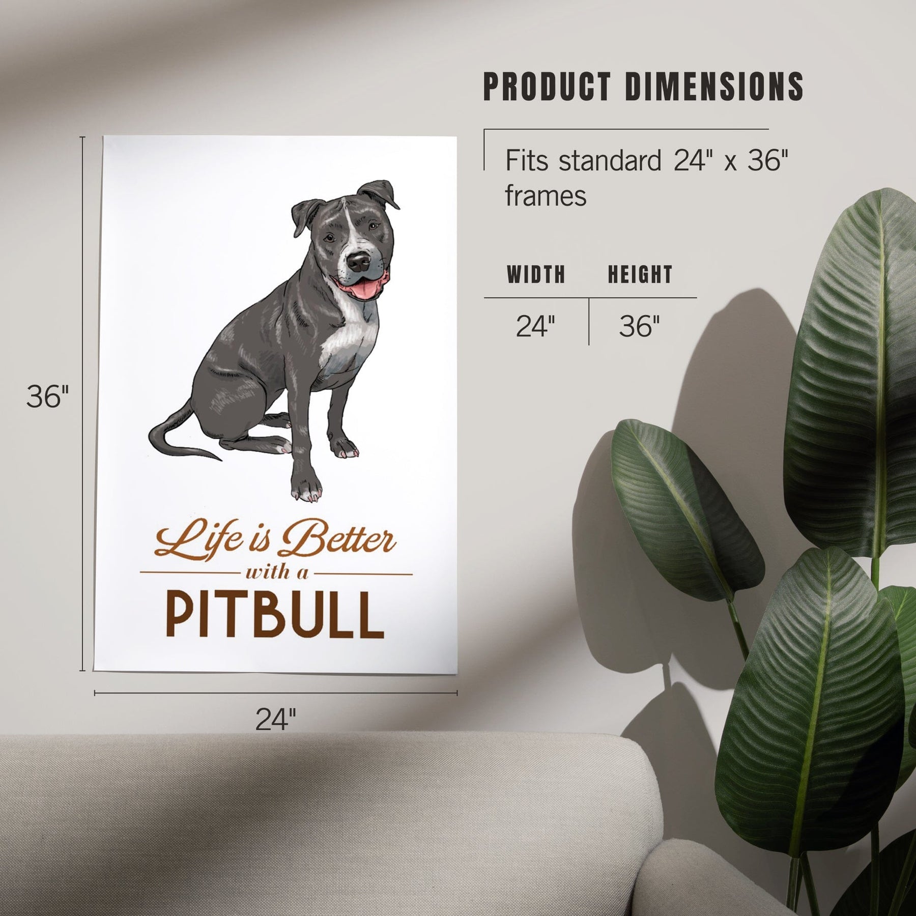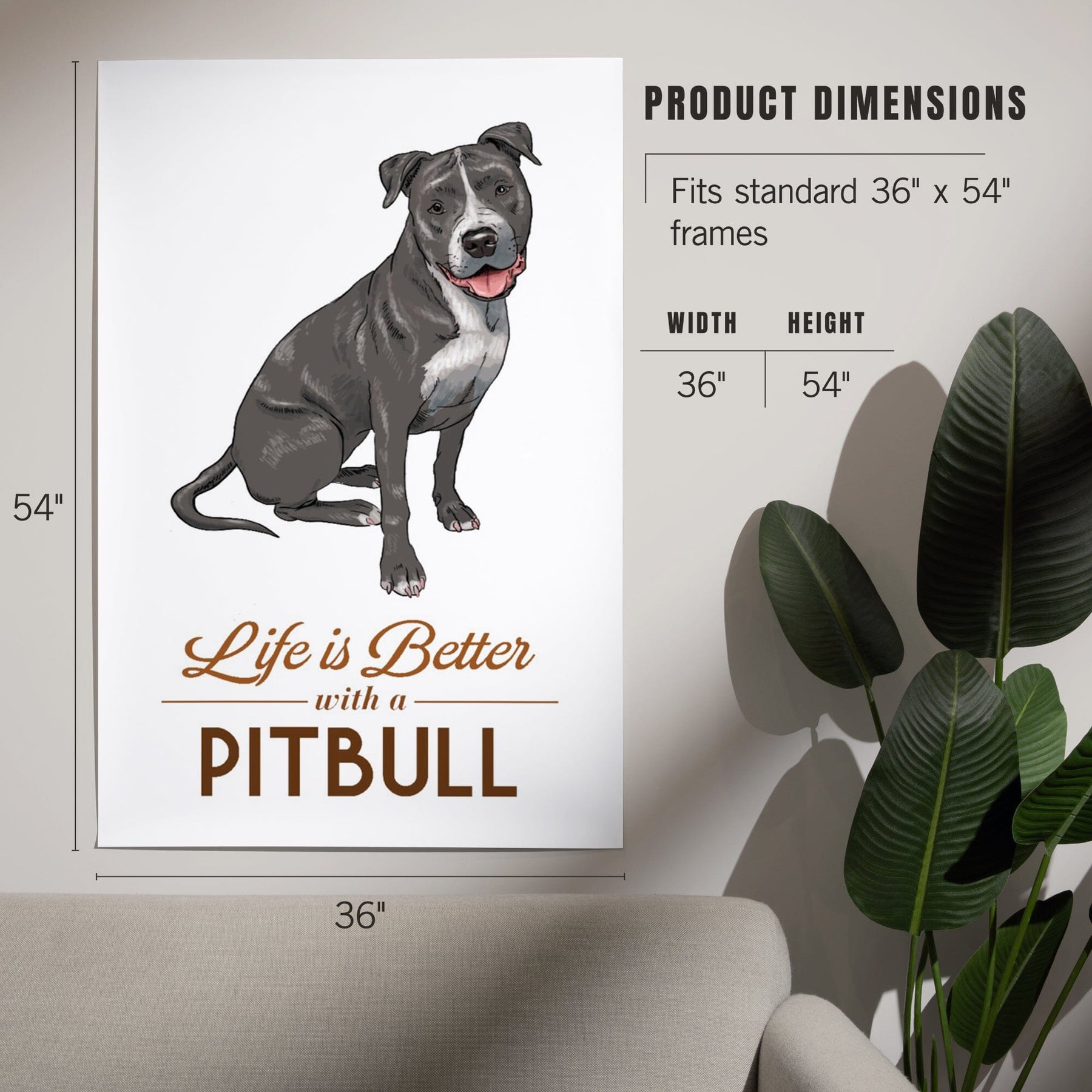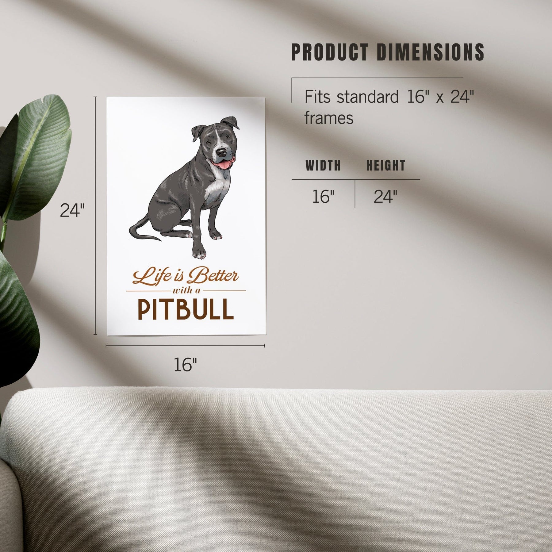 Pitbull, Gray and White, Life is Better, White Background, Art & Giclee Prints Art Lantern Press