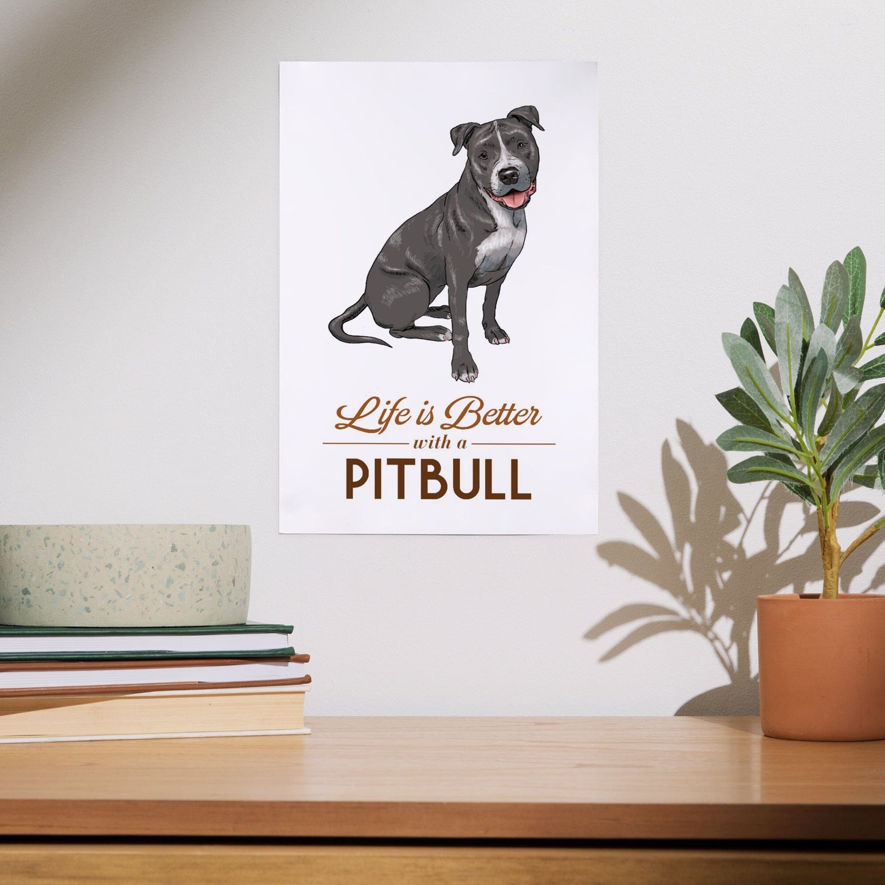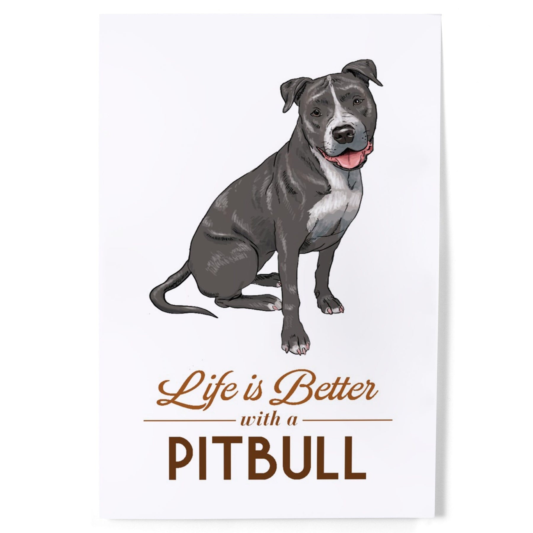 Pitbull, Gray and White, Life is Better, White Background, Art & Giclee Prints