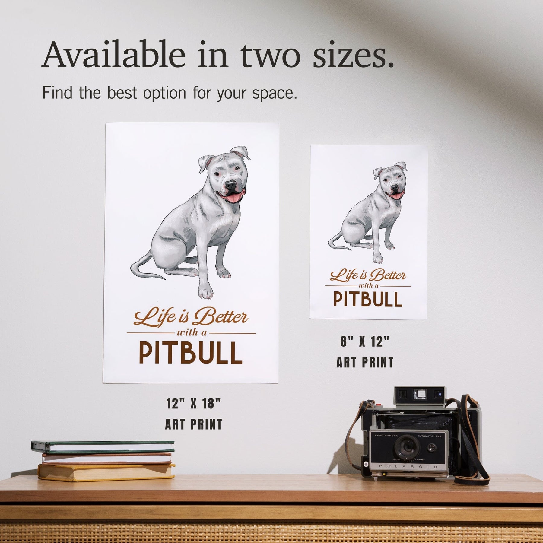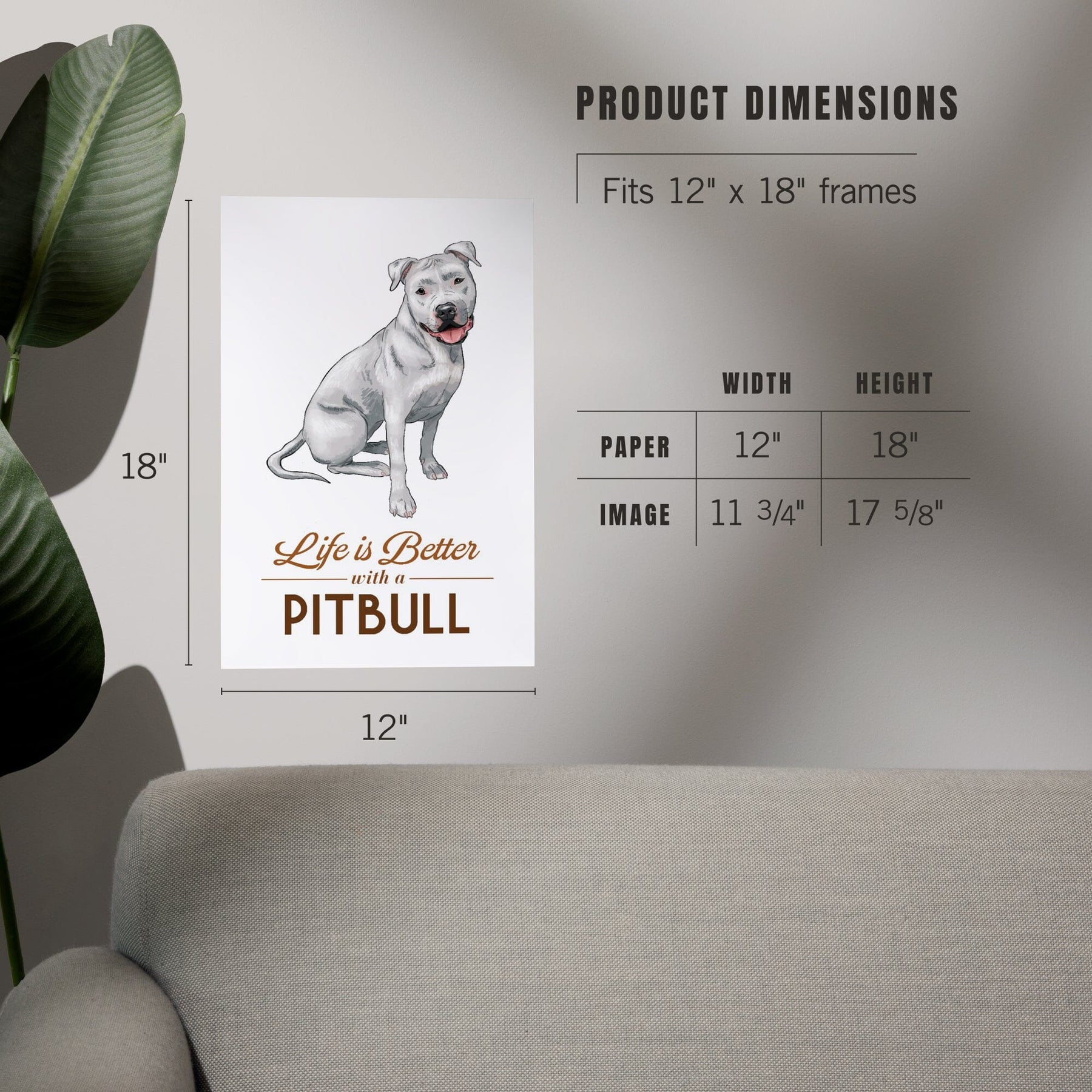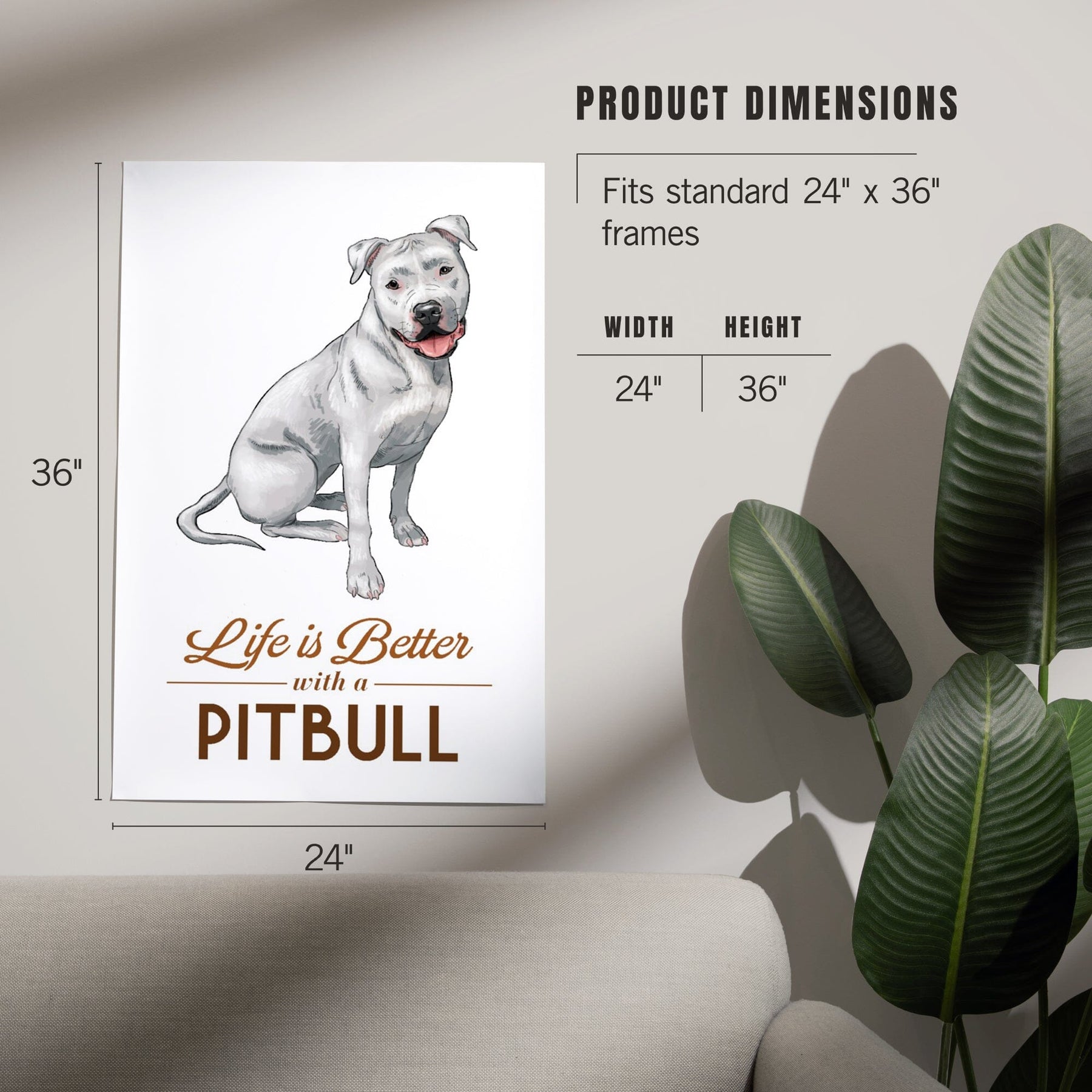 Pitbull, White, Life is Better, White Background, Art & Giclee Prints Art Lantern Press