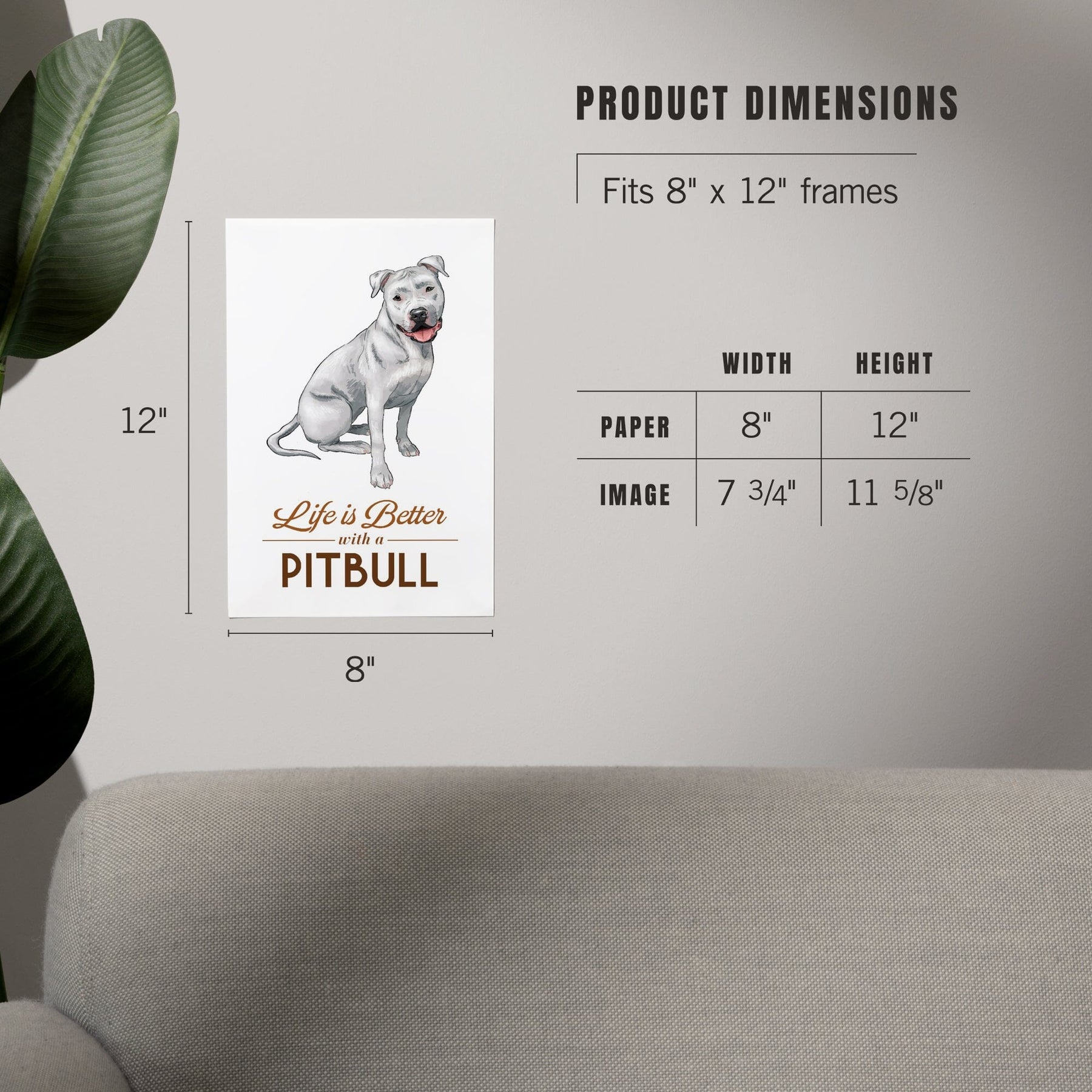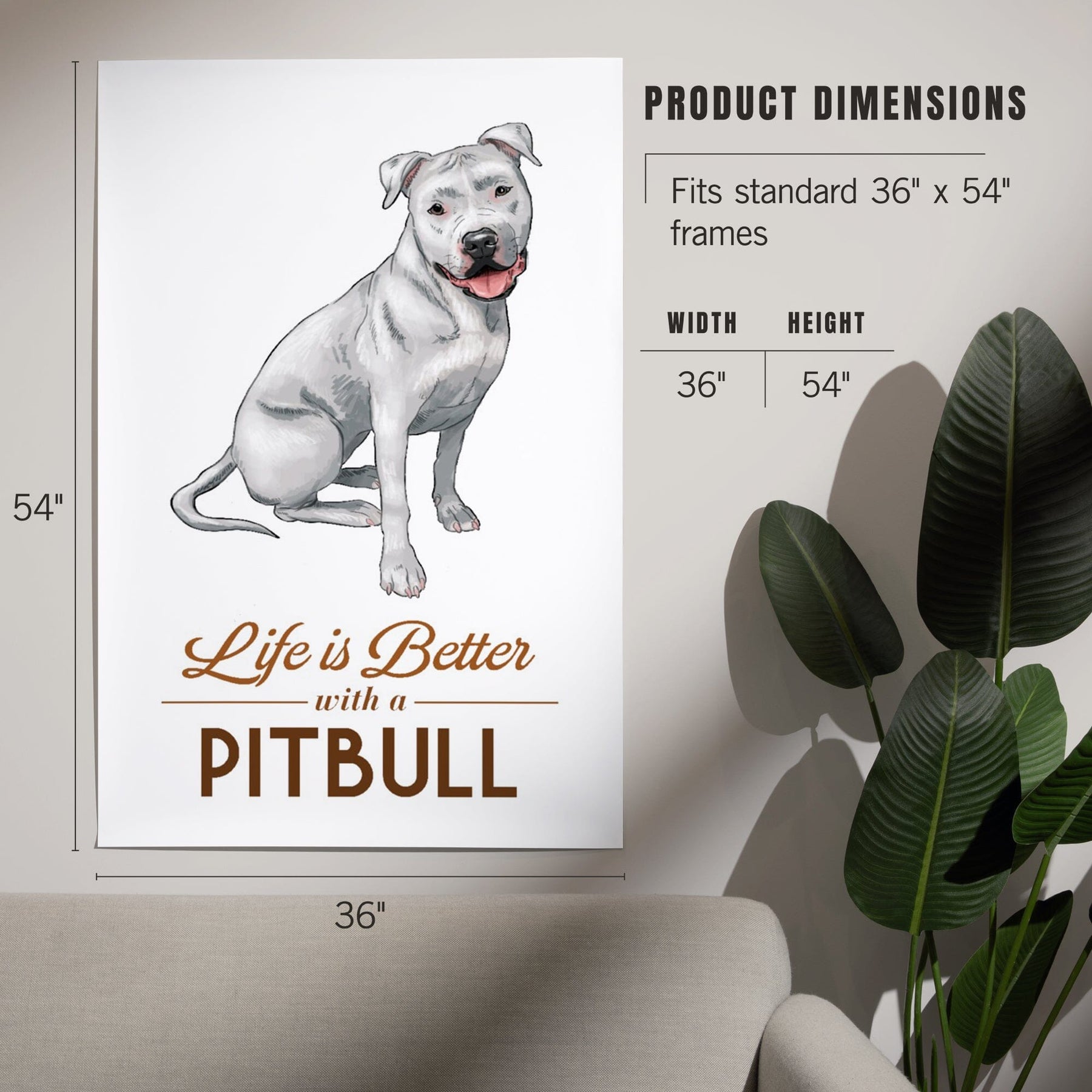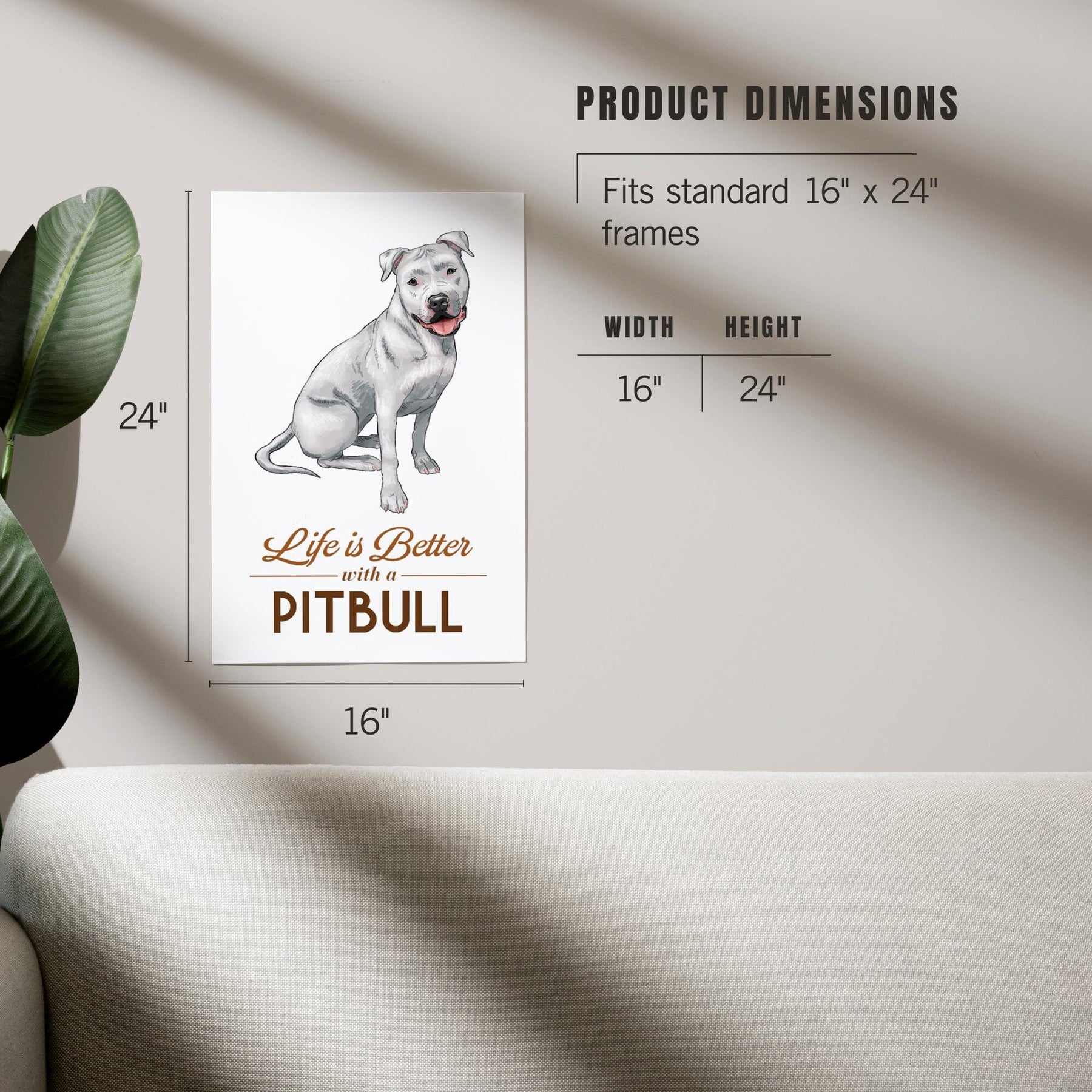 Pitbull, White, Life is Better, White Background, Art & Giclee Prints Art Lantern Press