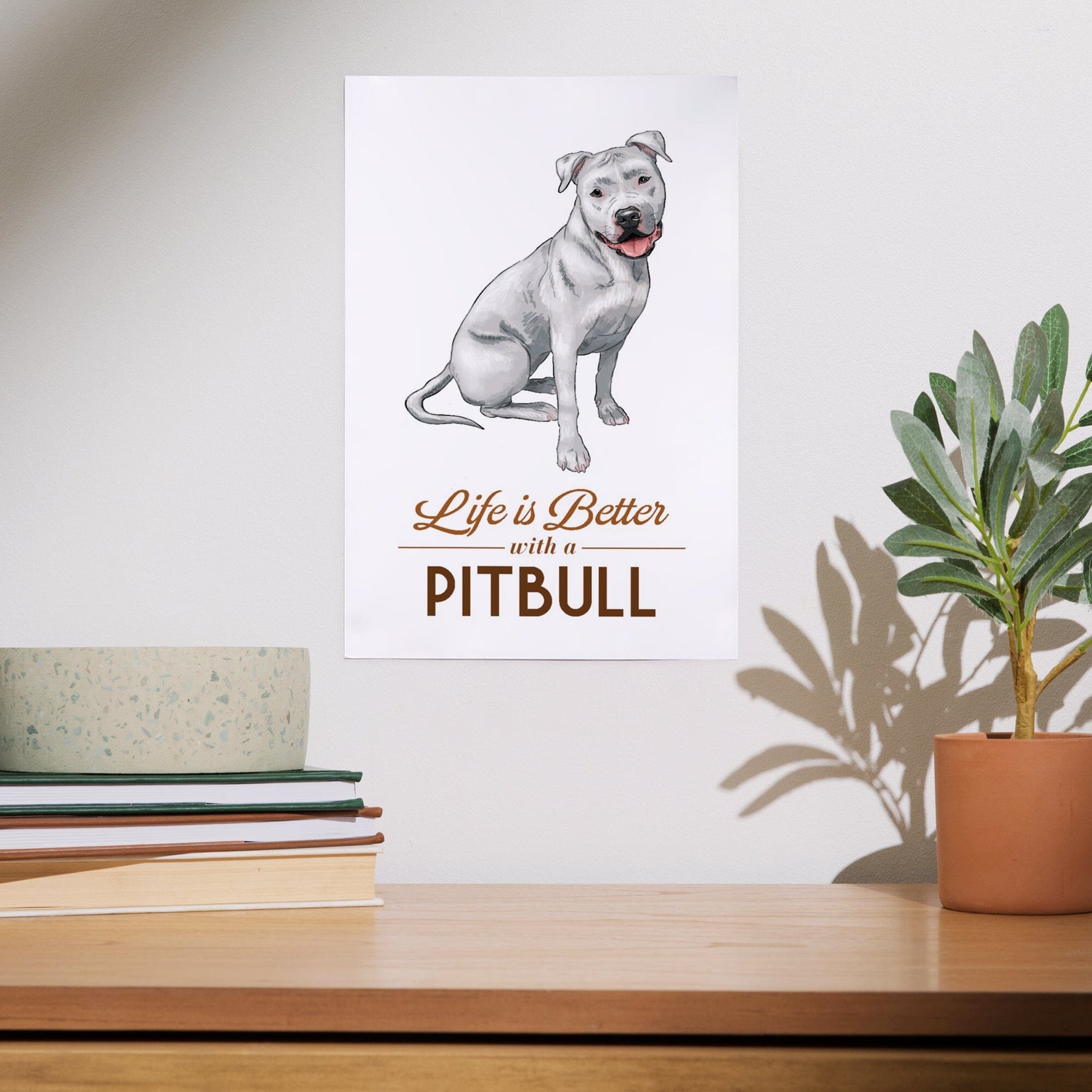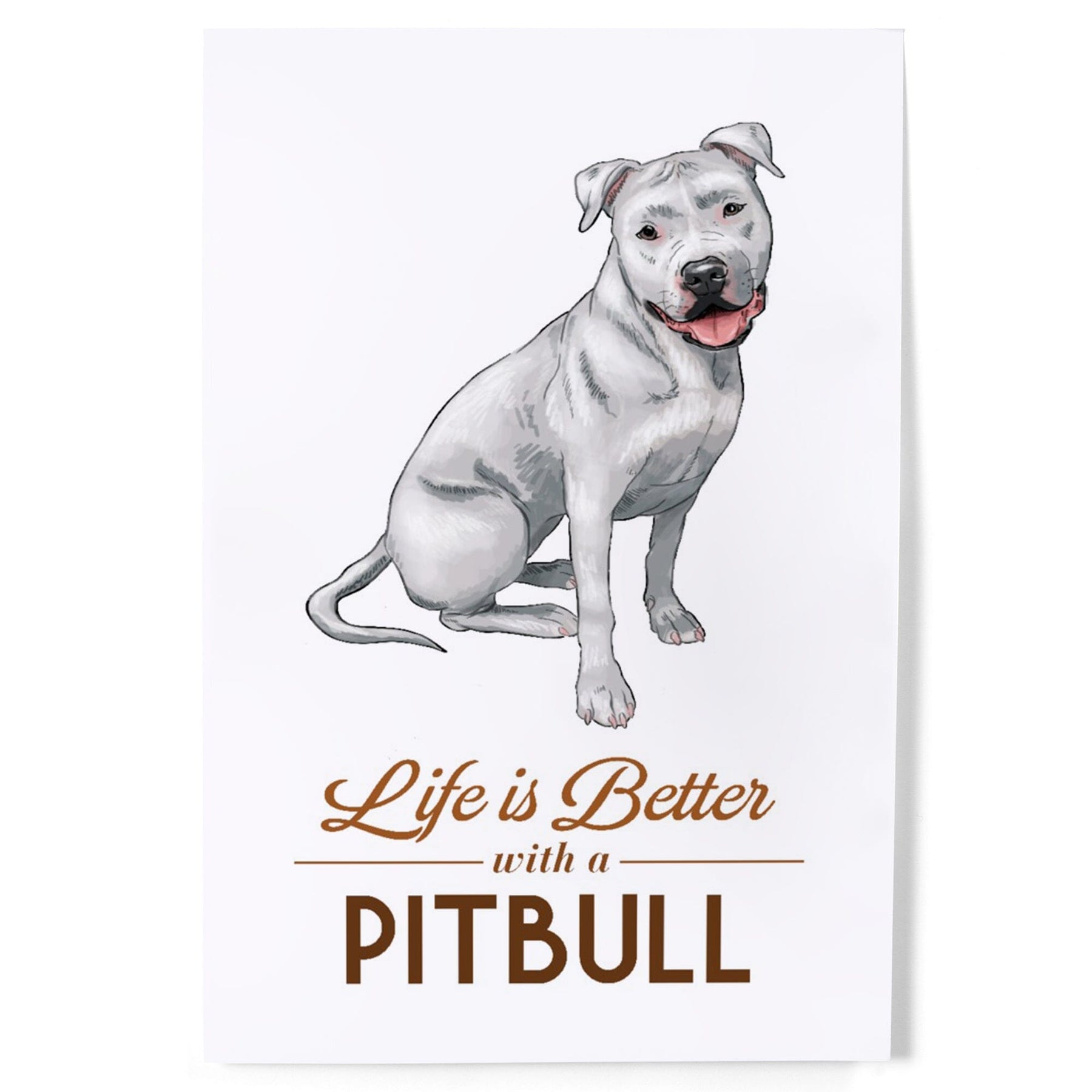Pitbull, White, Life is Better, White Background, Art & Giclee Prints