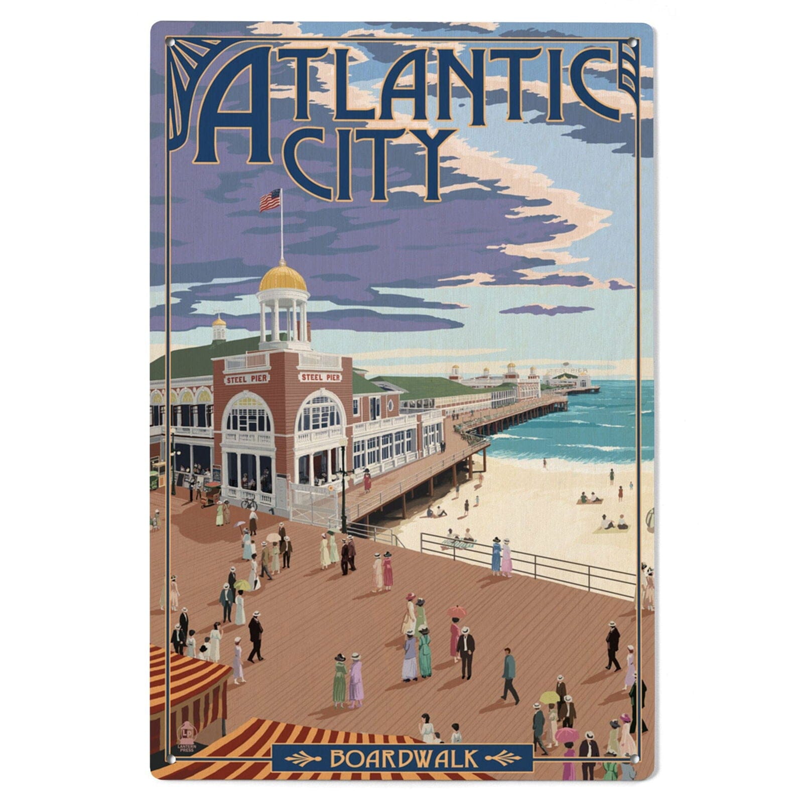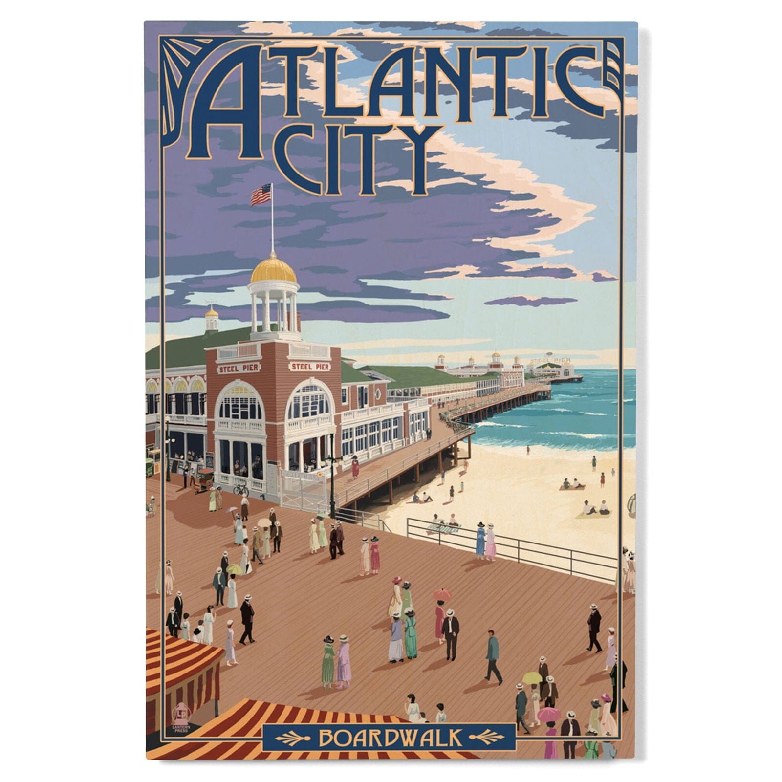 Atlantic City, New Jersey, Boardwalk, Lantern Press Artwork, Wood Signs and Postcards Wood Lantern Press