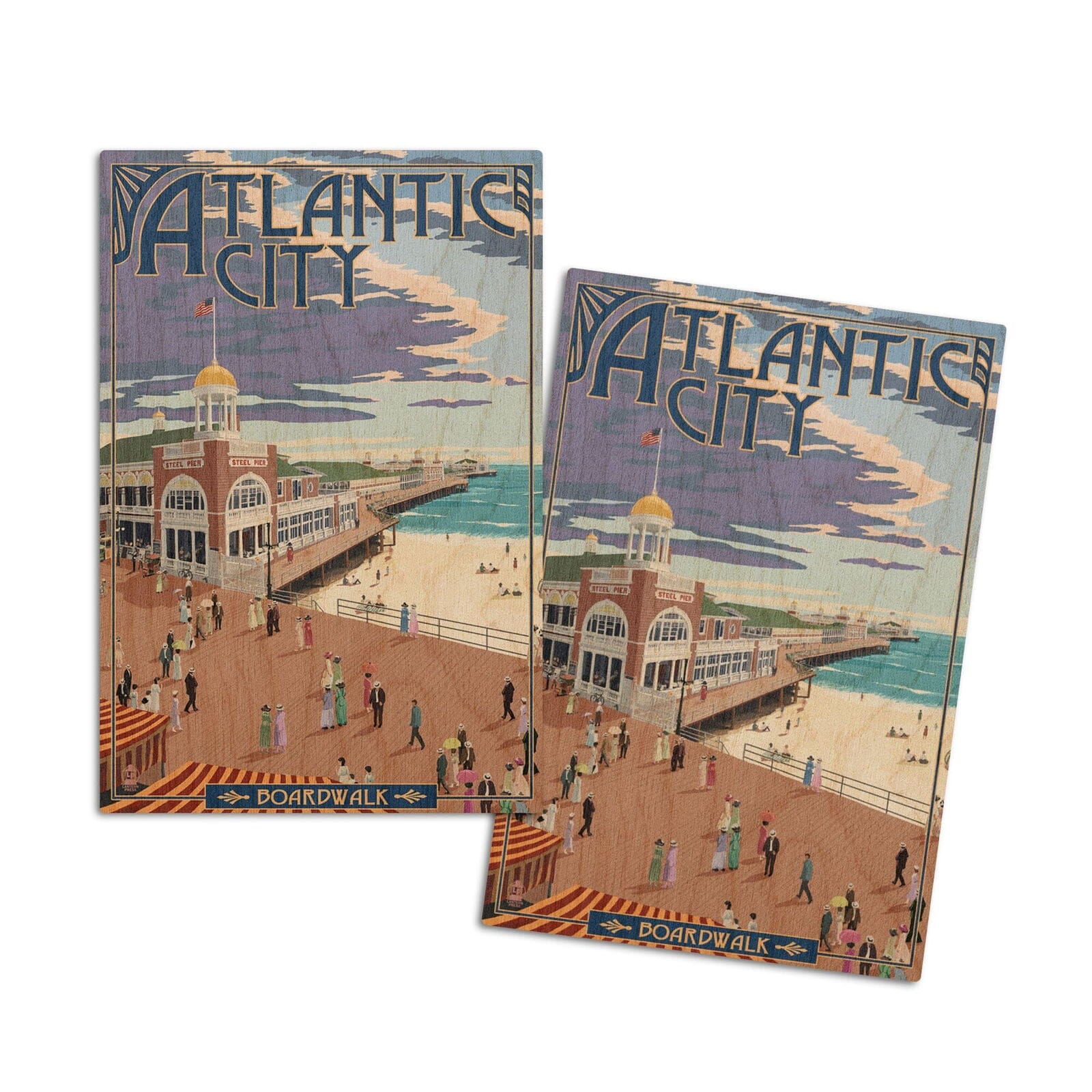Atlantic City, New Jersey, Boardwalk, Lantern Press Artwork, Wood Signs and Postcards