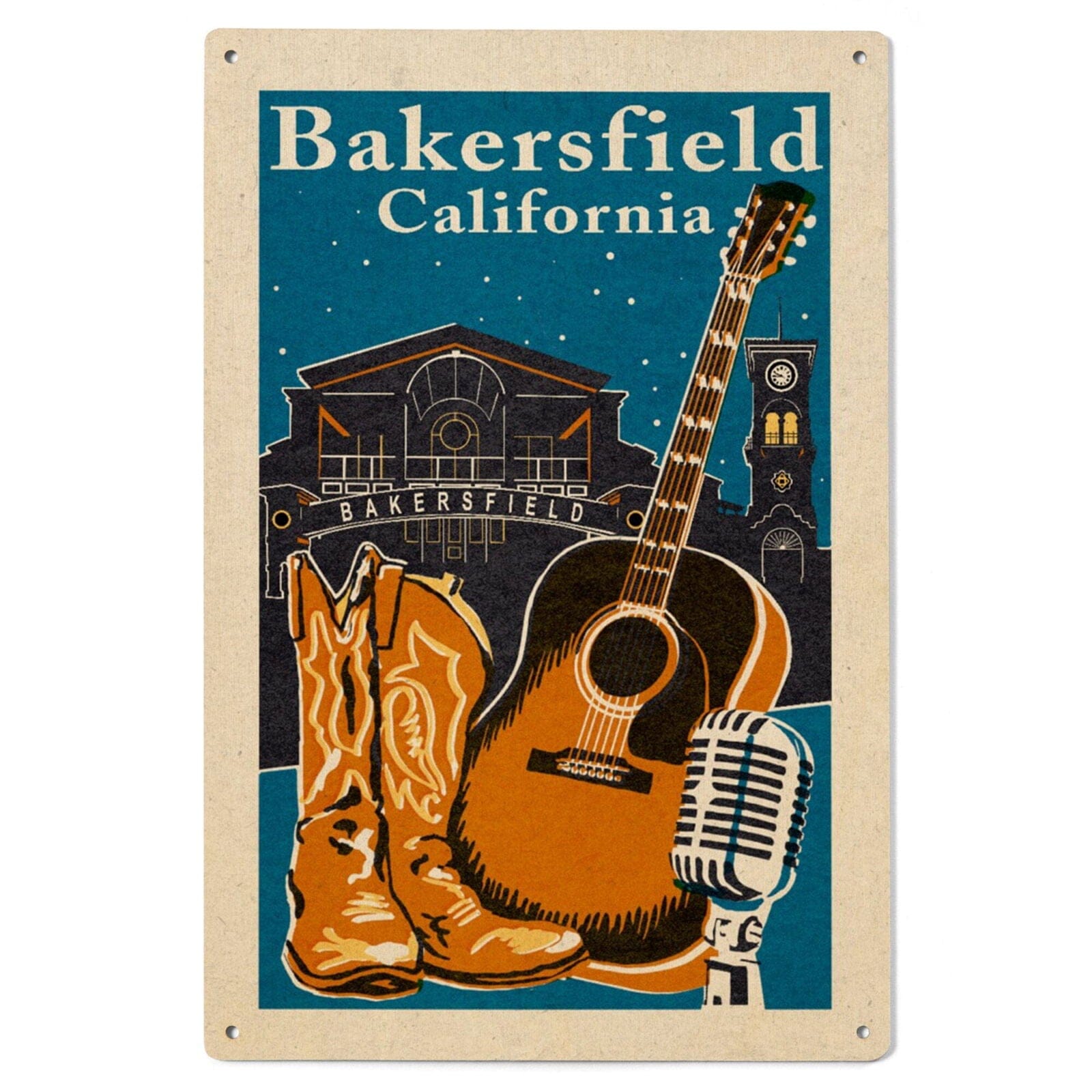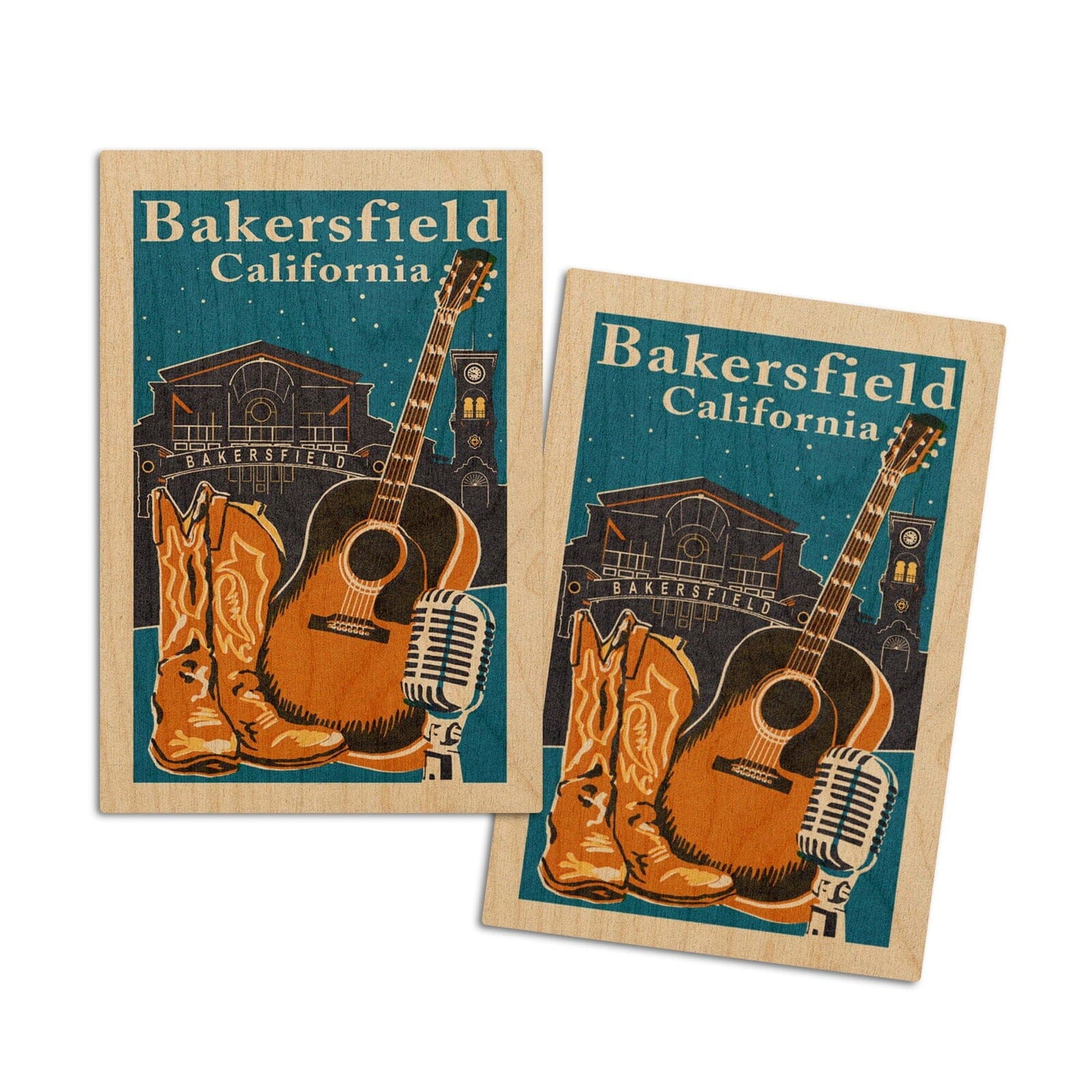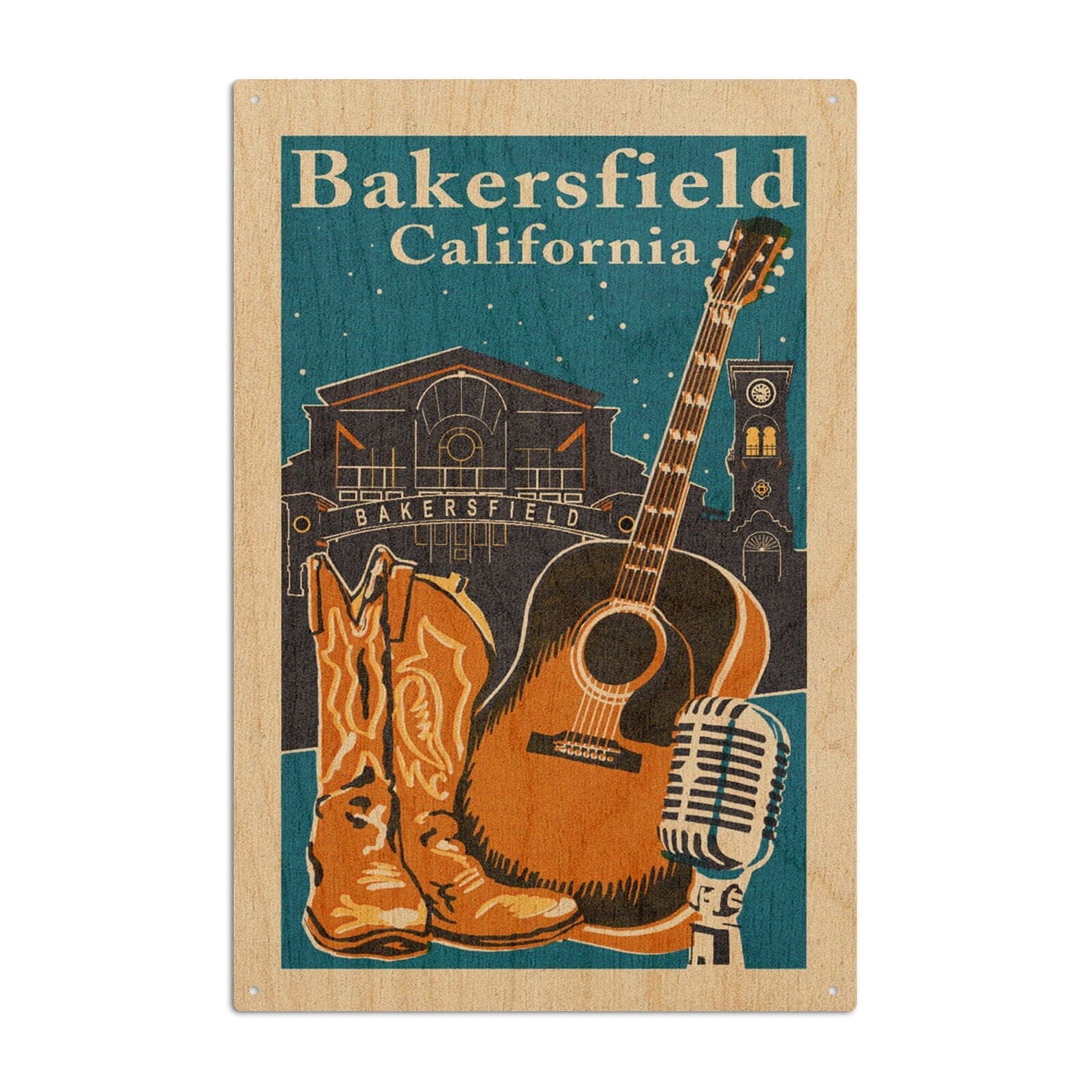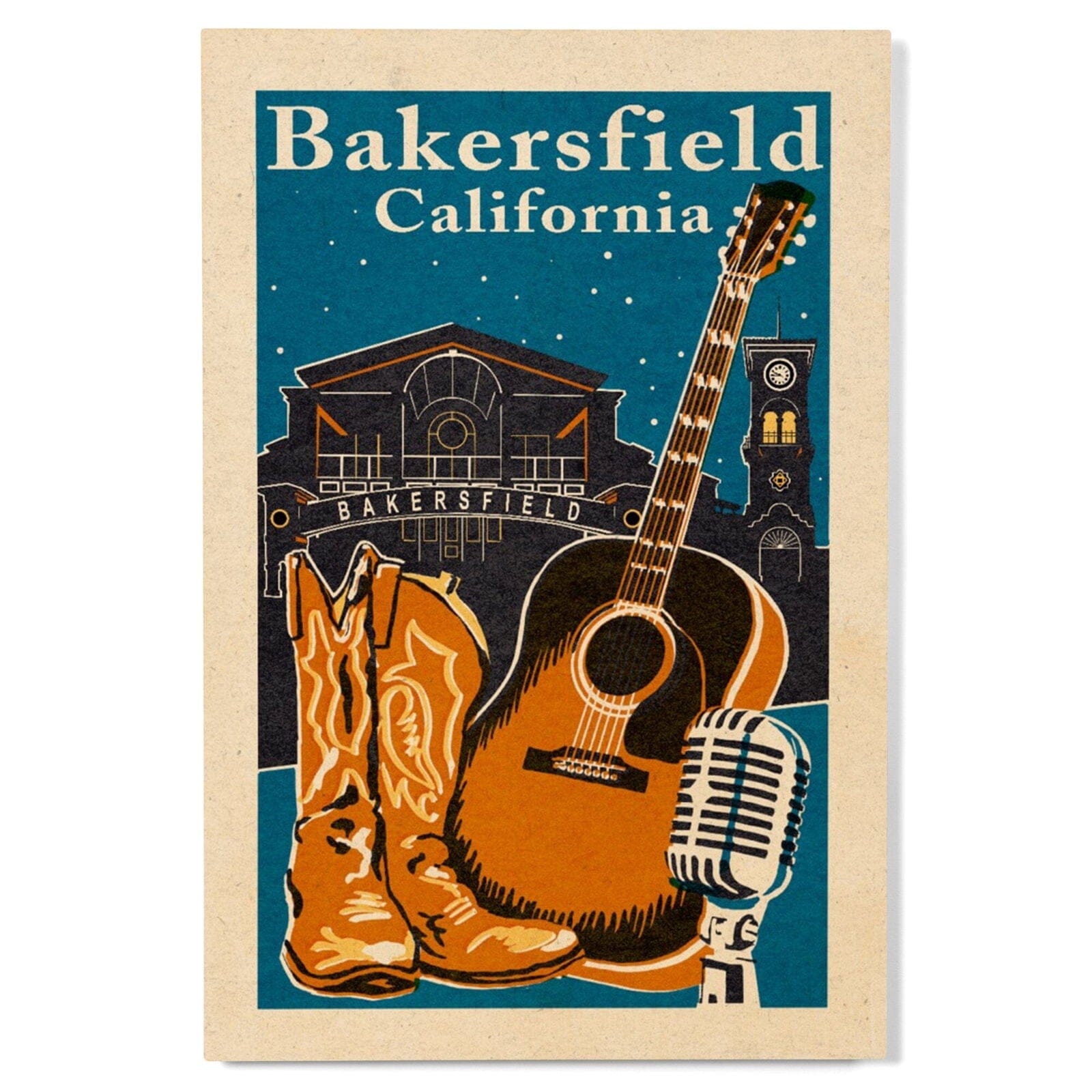 Bakersfield, California, Woodblock, Lantern Press Artwork, Wood Signs and Postcards