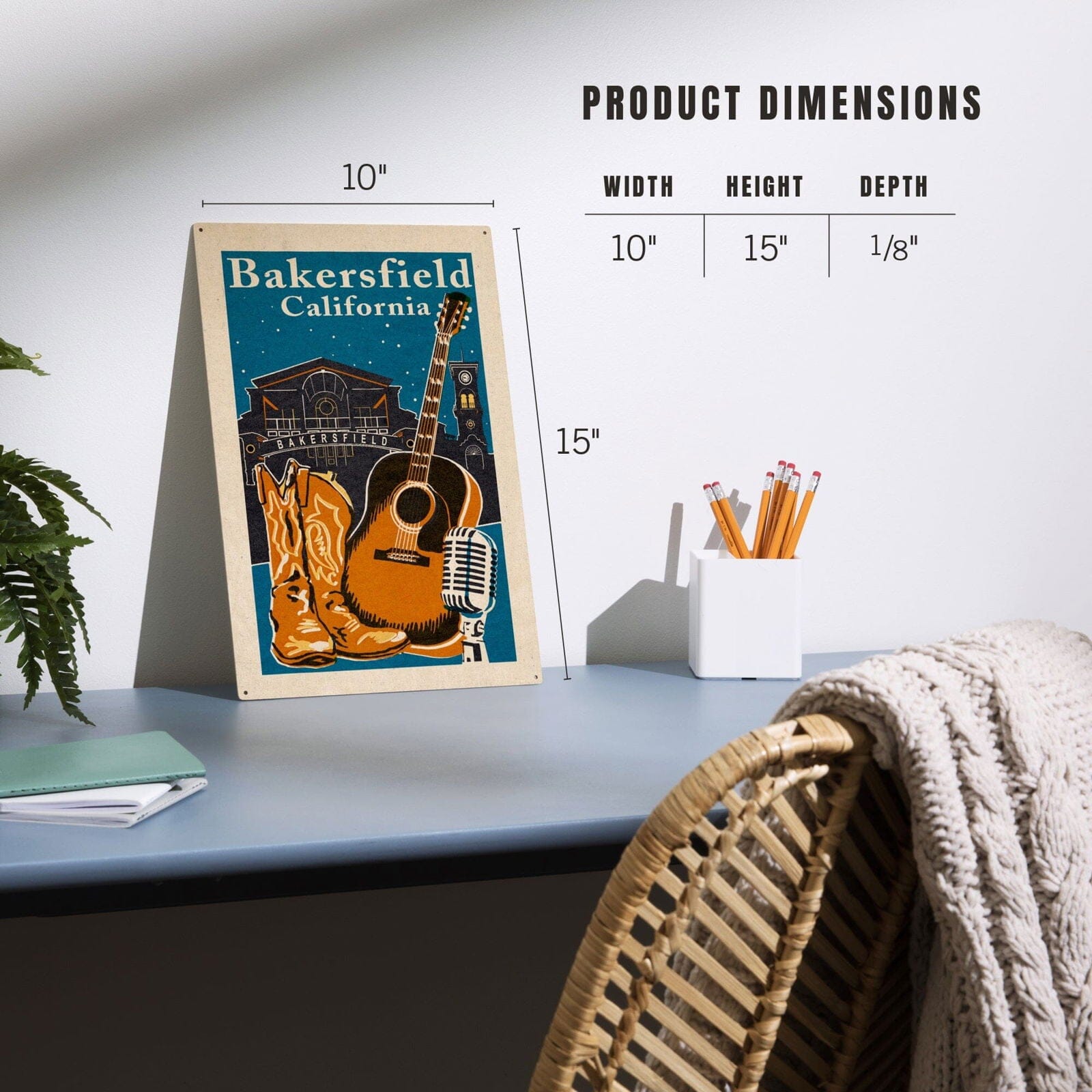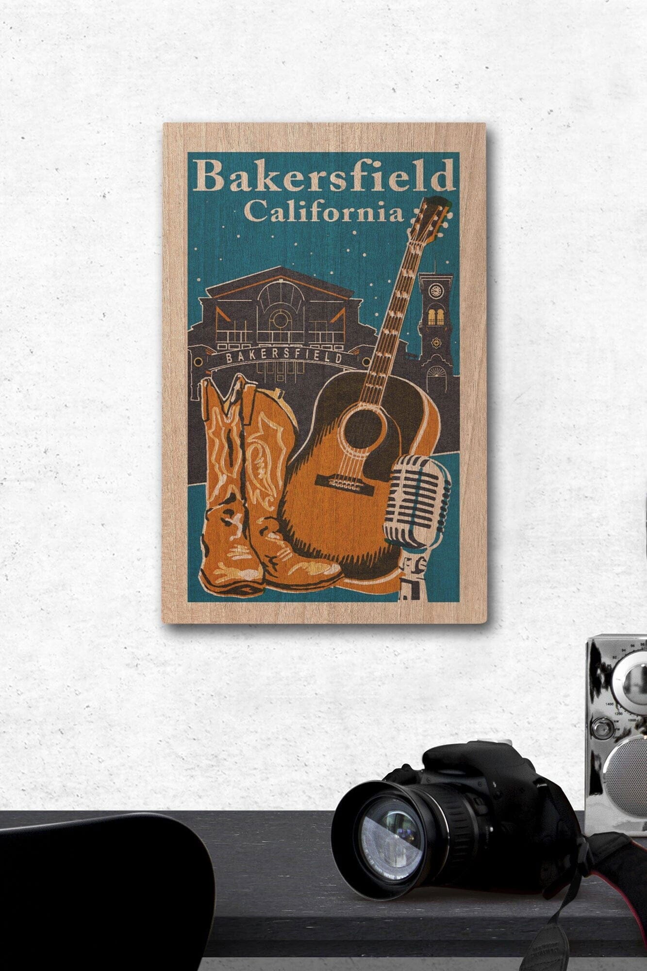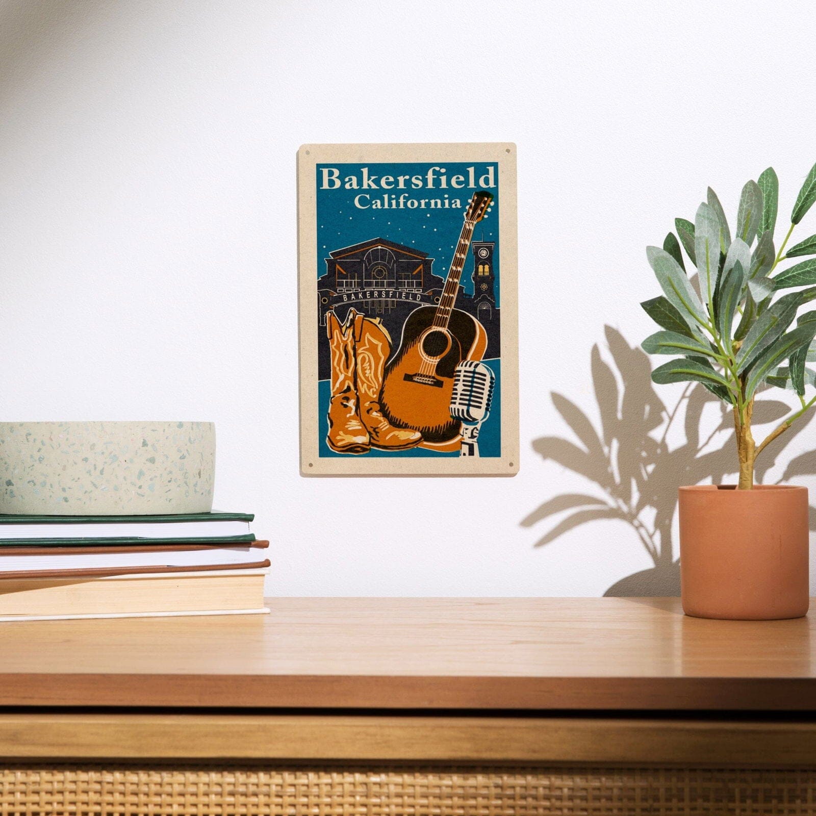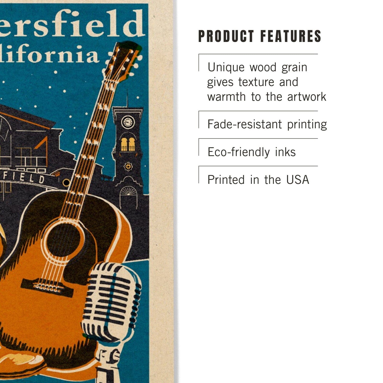 Bakersfield, California, Woodblock, Lantern Press Artwork, Wood Signs and Postcards