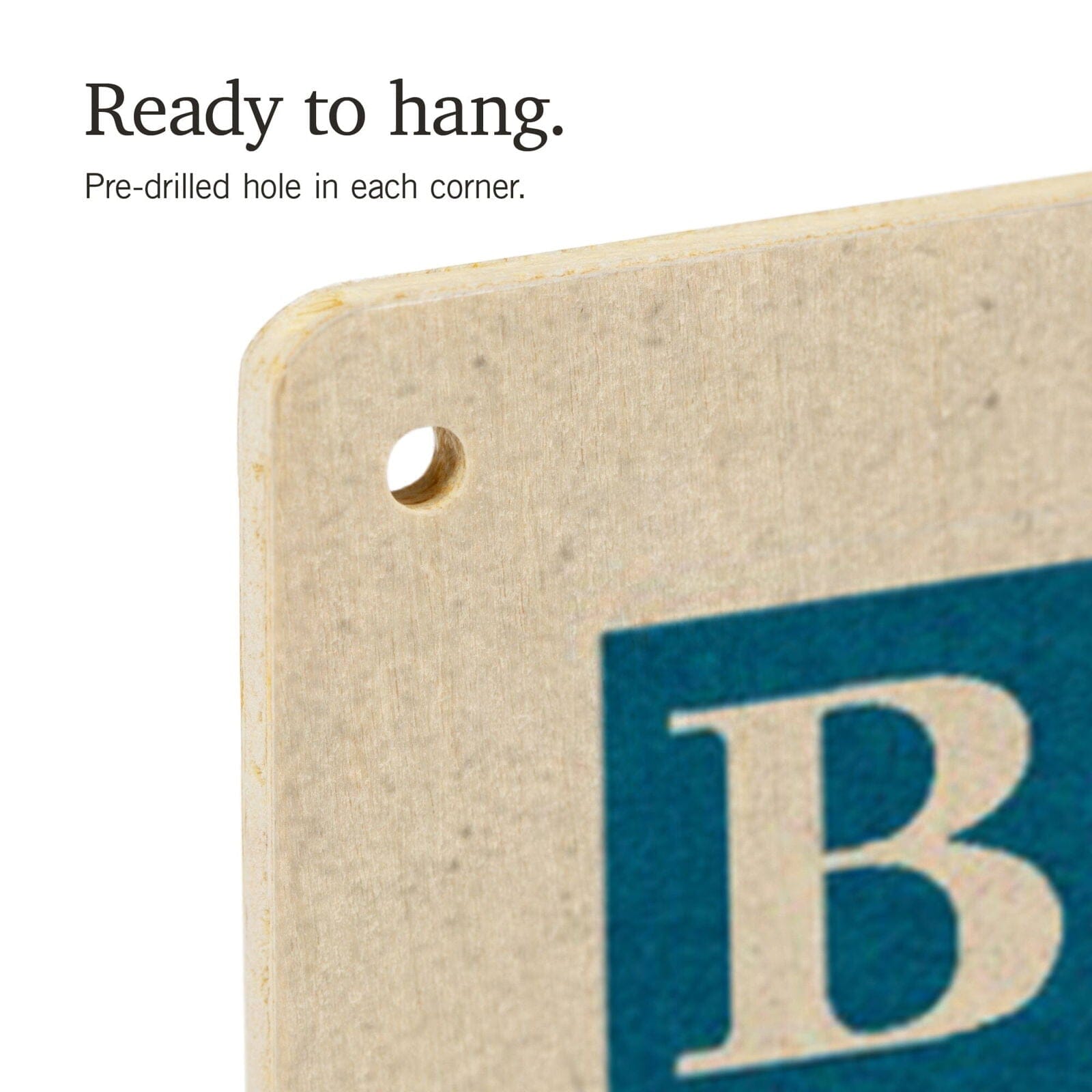 • Hole in each corner, ready to hang