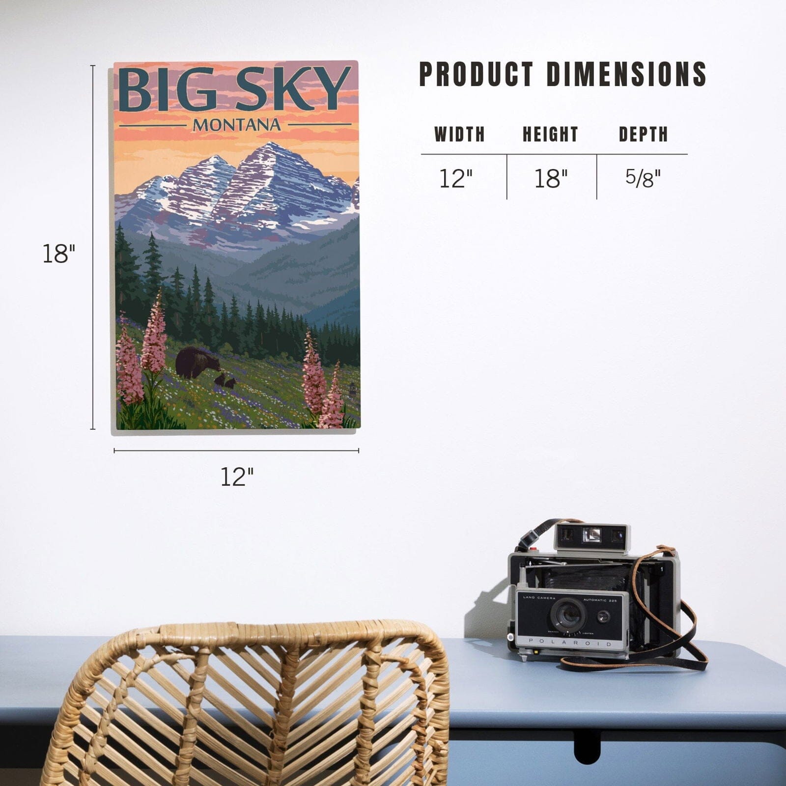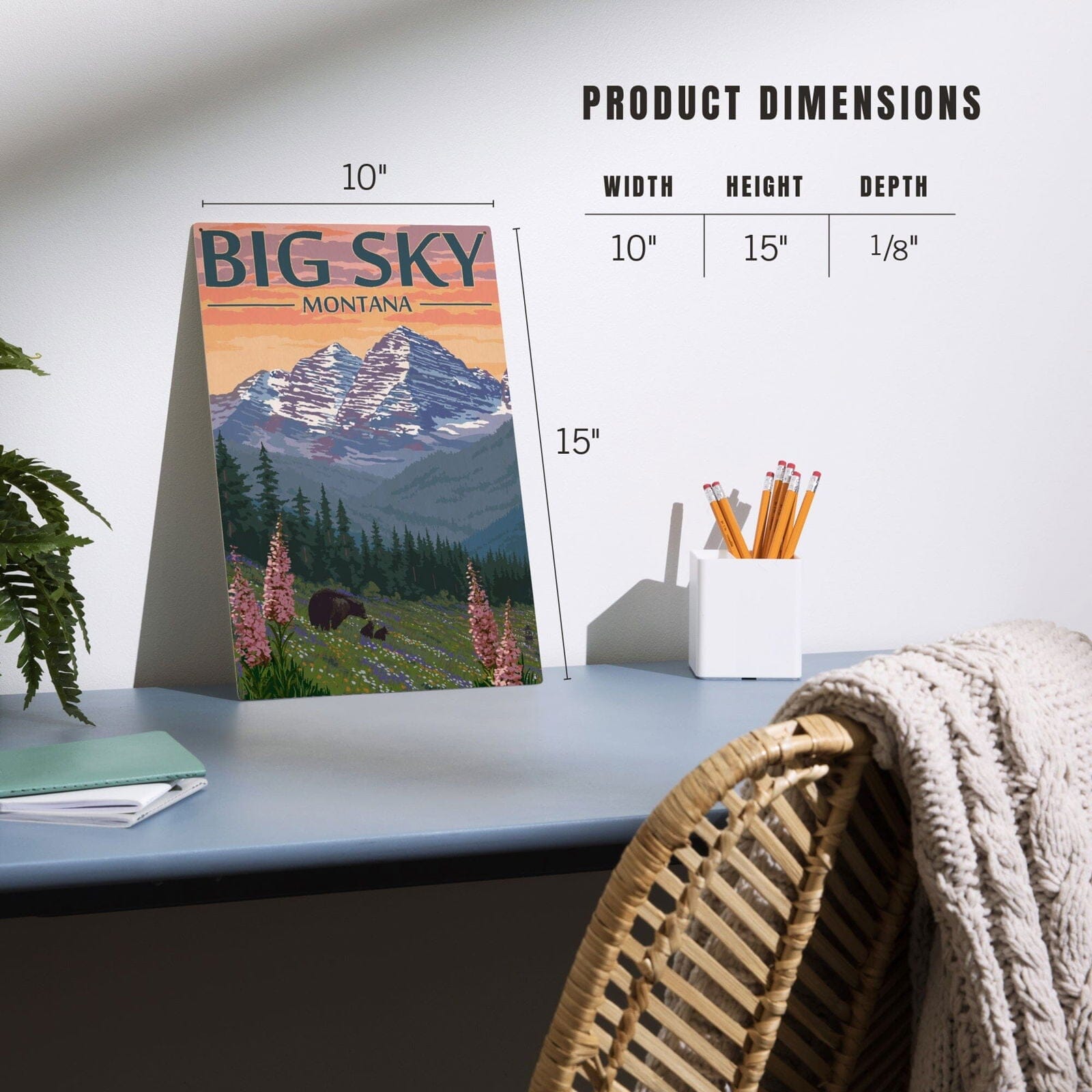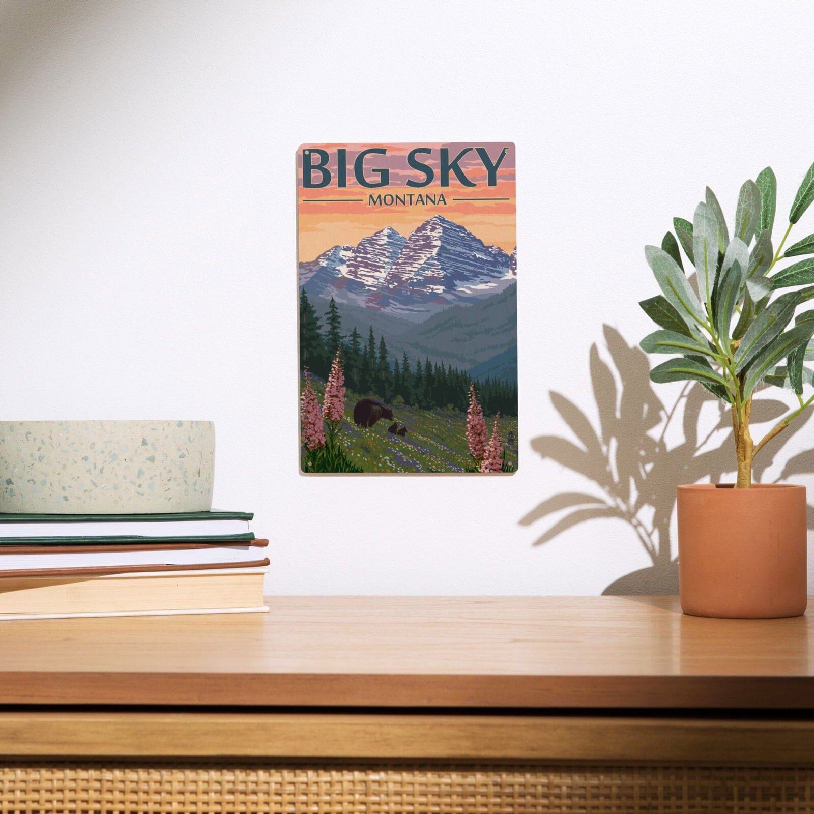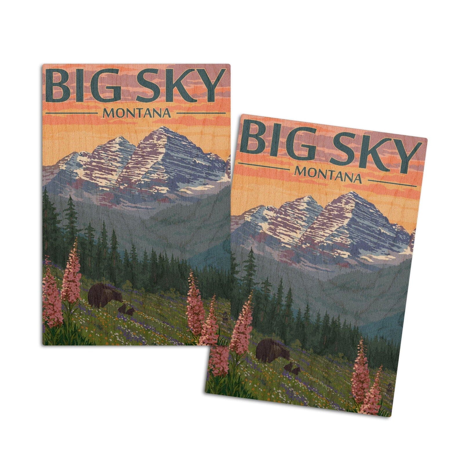 Big Sky, Montana, Bear & Spring Flowers, Lantern Press Artwork, Wood Signs and Postcards