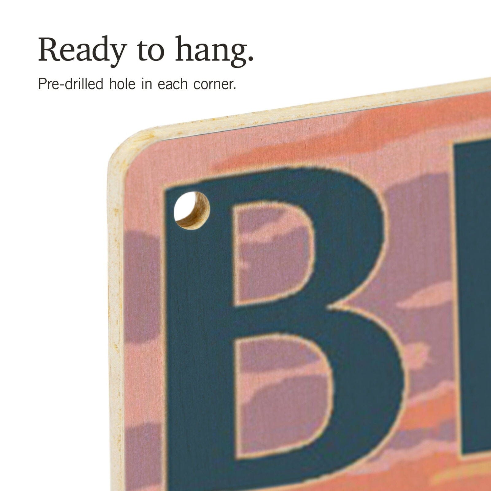 Big Sky, Montana, Bear & Spring Flowers, Lantern Press Artwork, Wood Signs and Postcards Wood Lantern Press