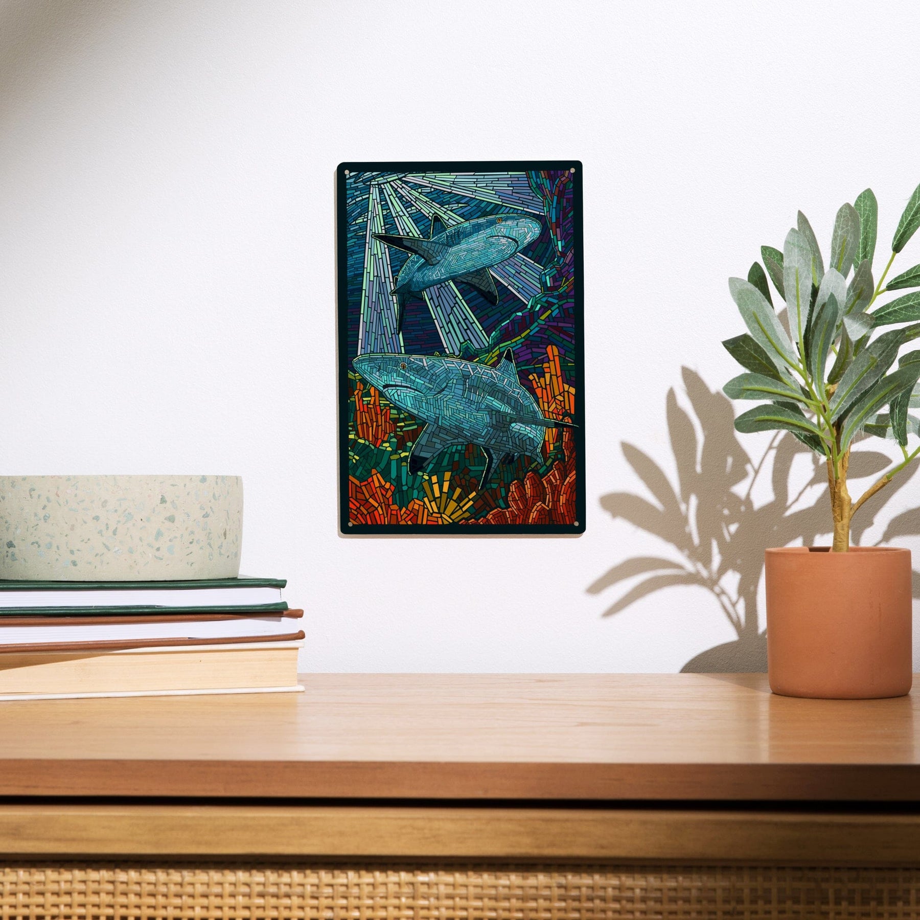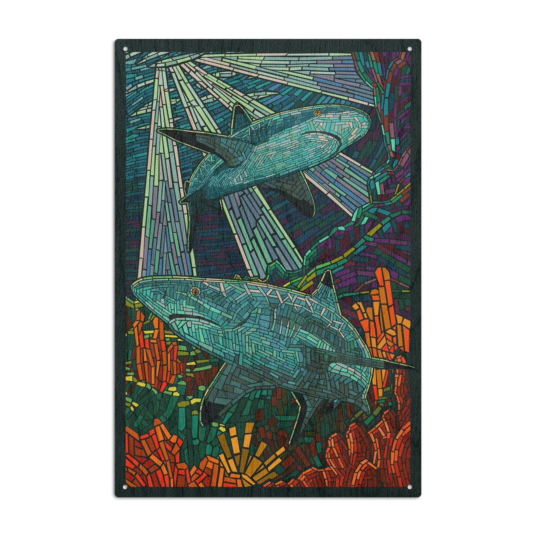 Black Tip Reef Shark, Paper Mosaic, Lantern Press Poster, Wood Signs and Postcards