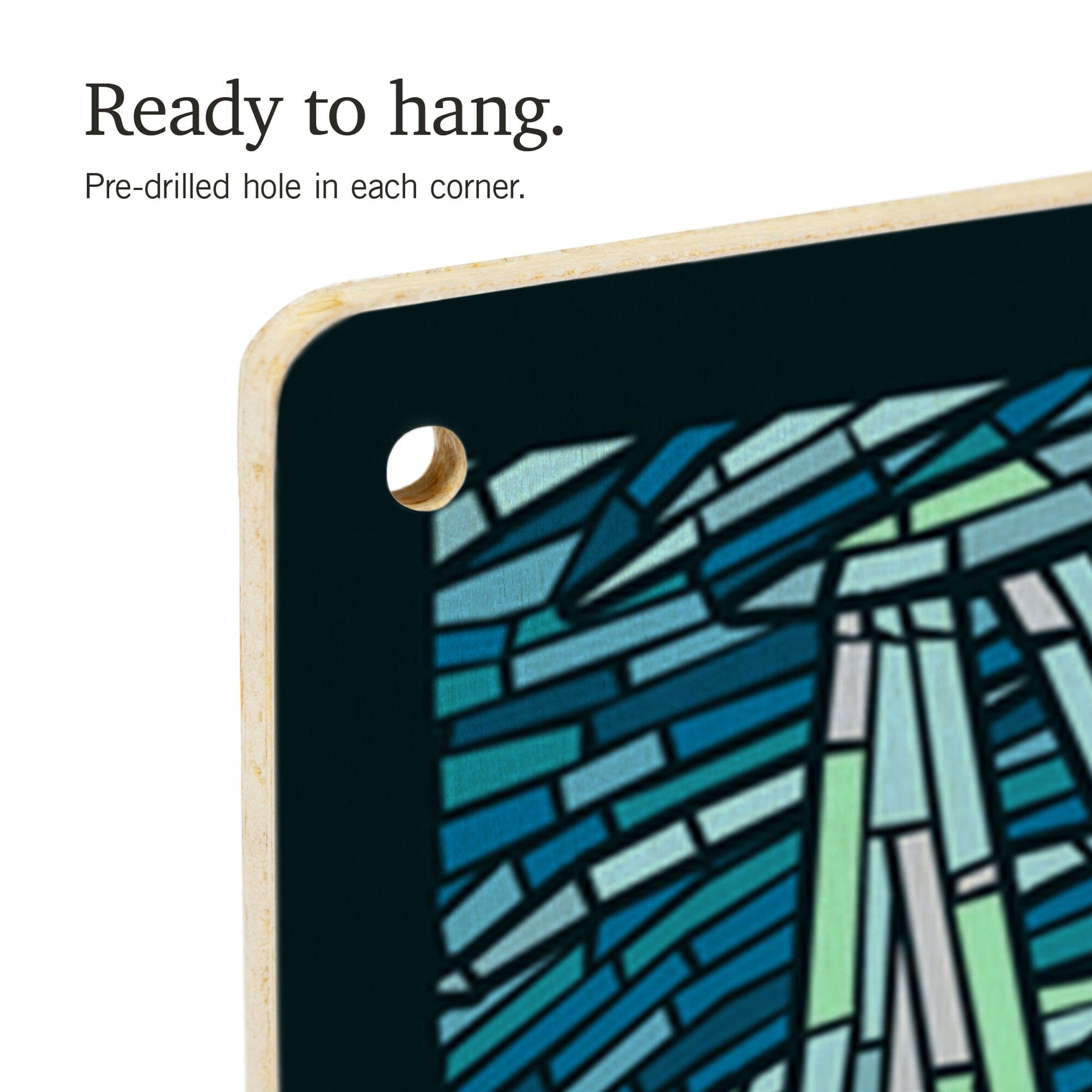 • Hole in each corner, ready to hang
