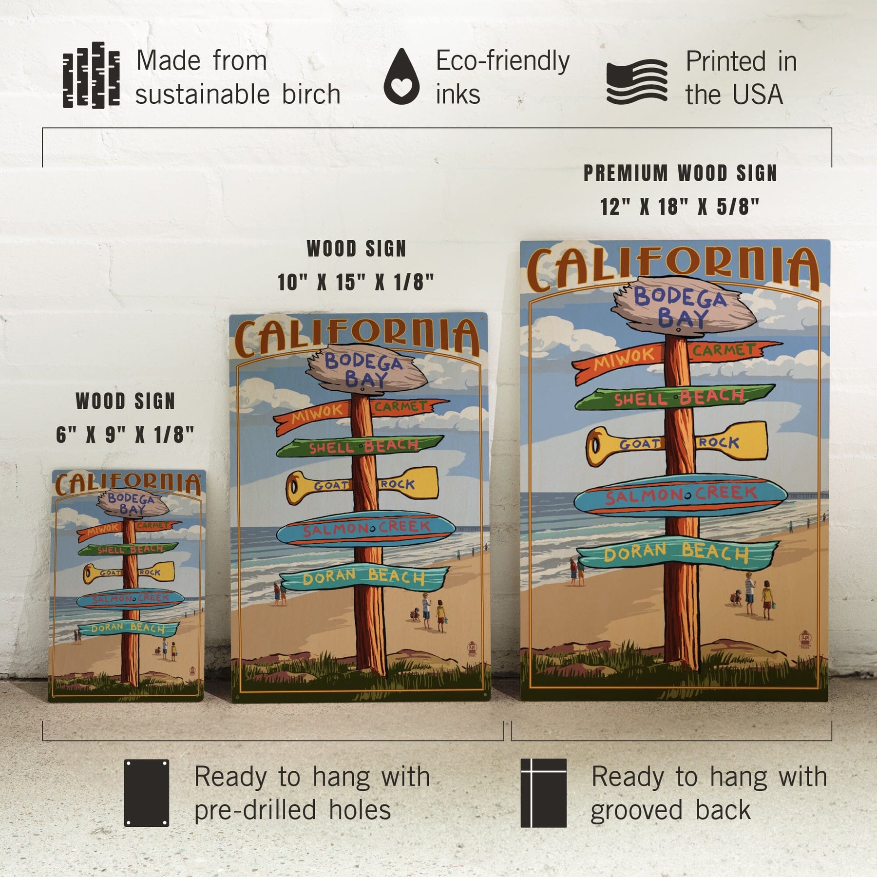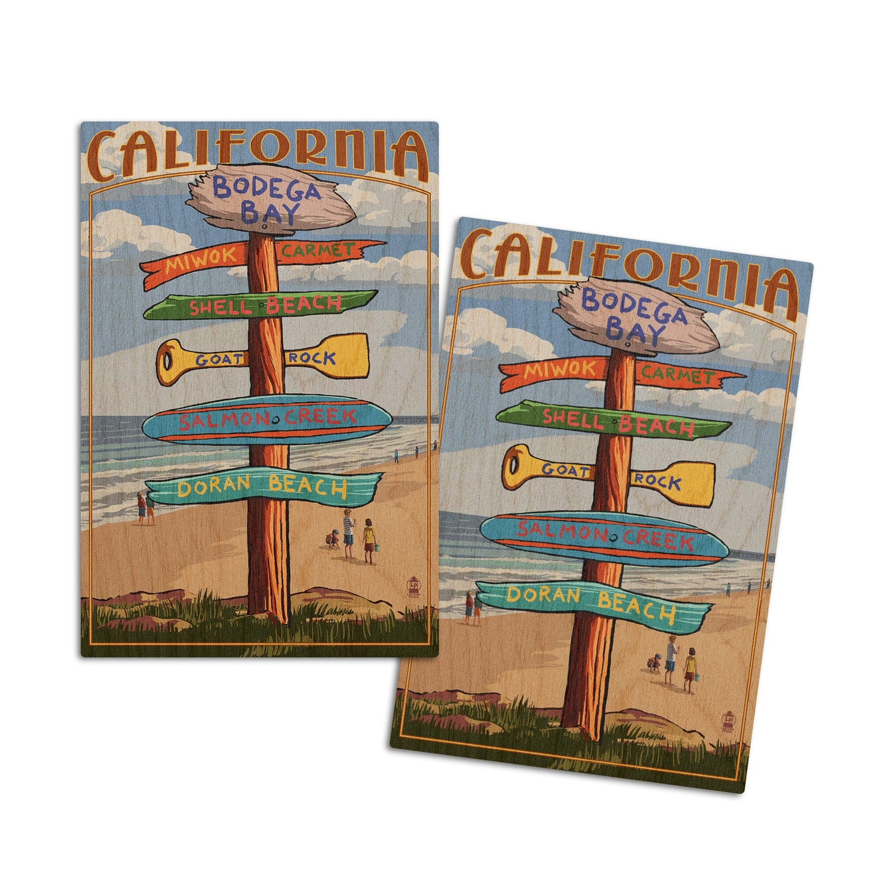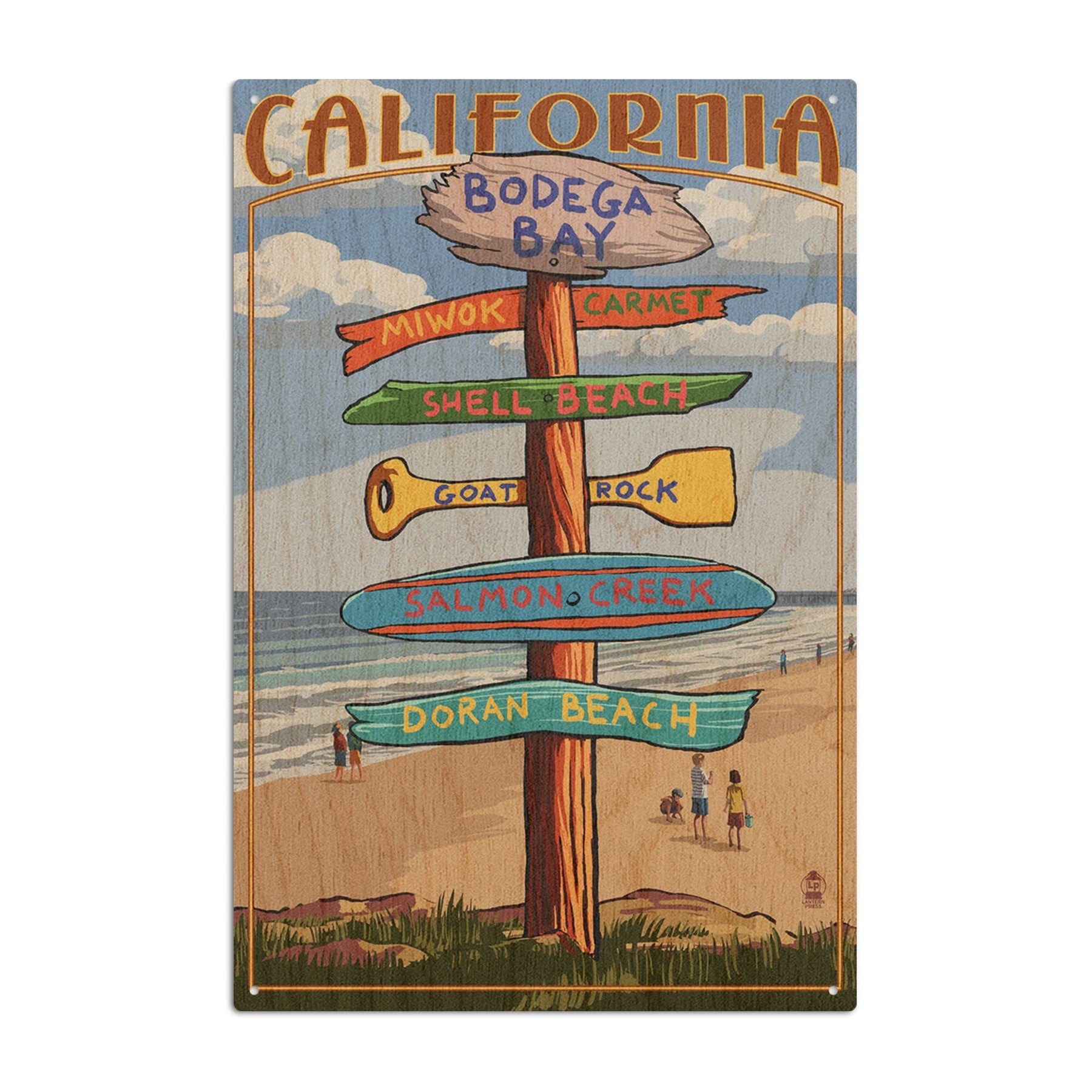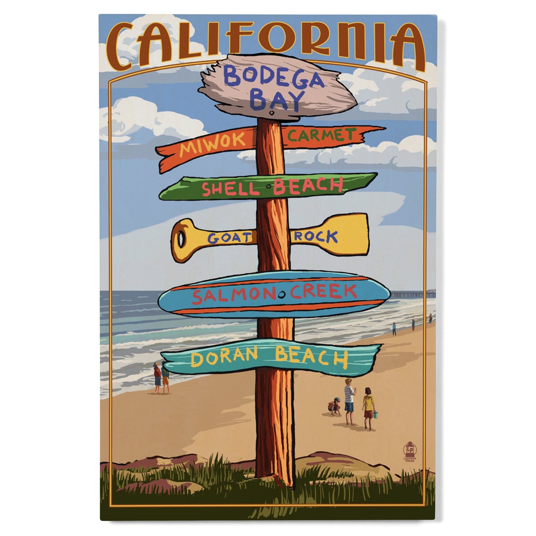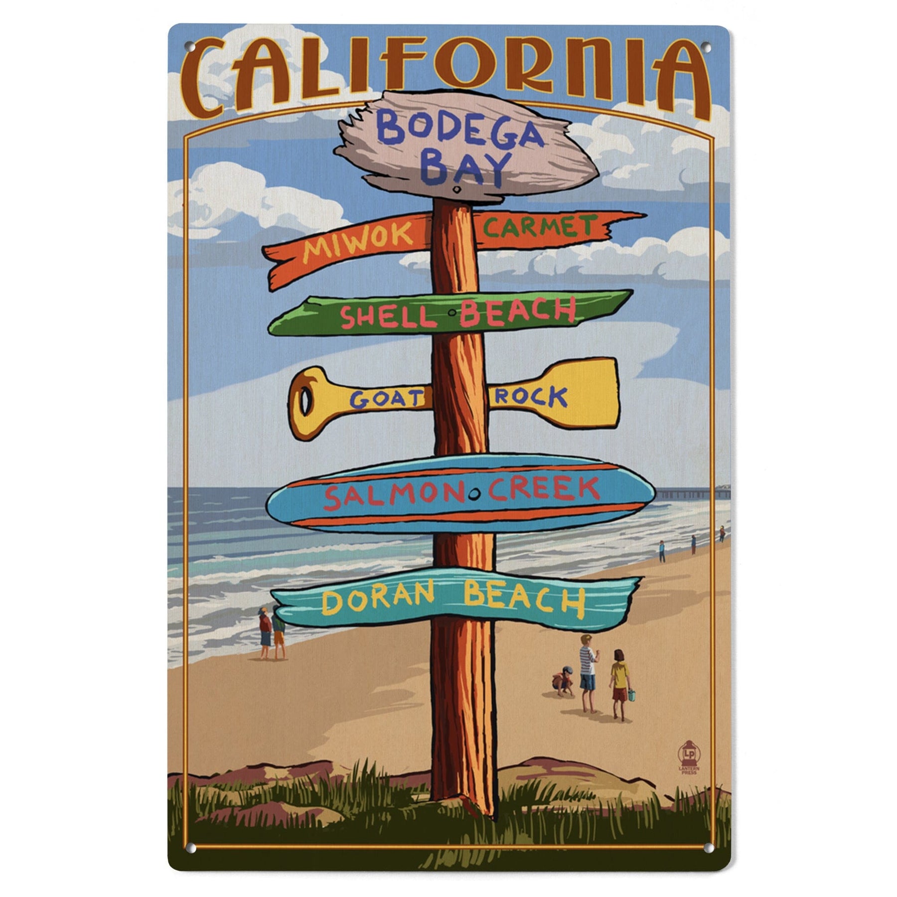Bodega Bay, California, Destinations Sign, Lantern Press Artwork, Wood Signs and Postcards