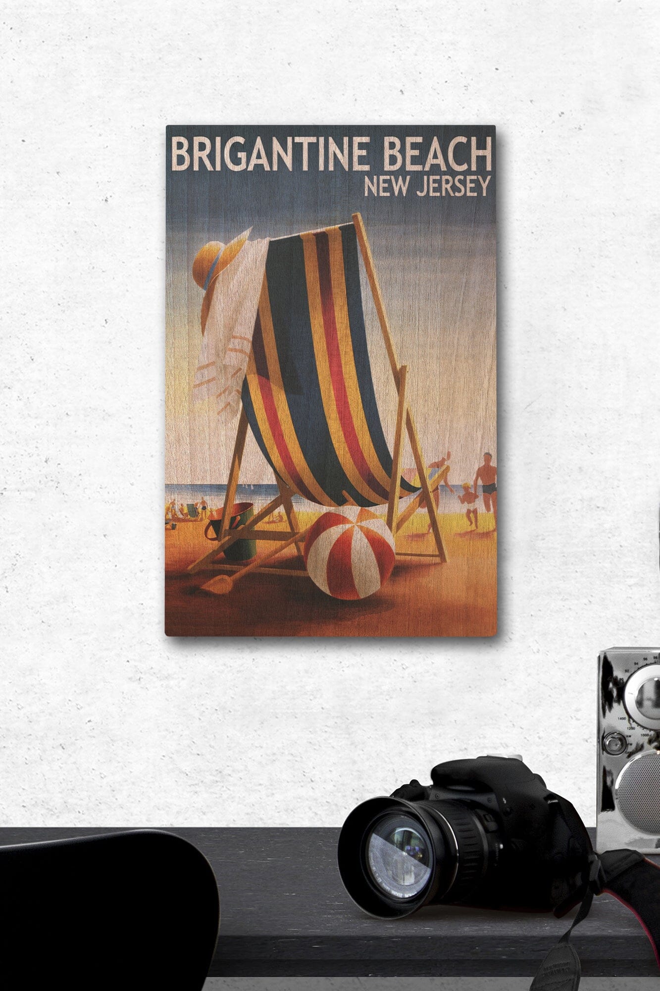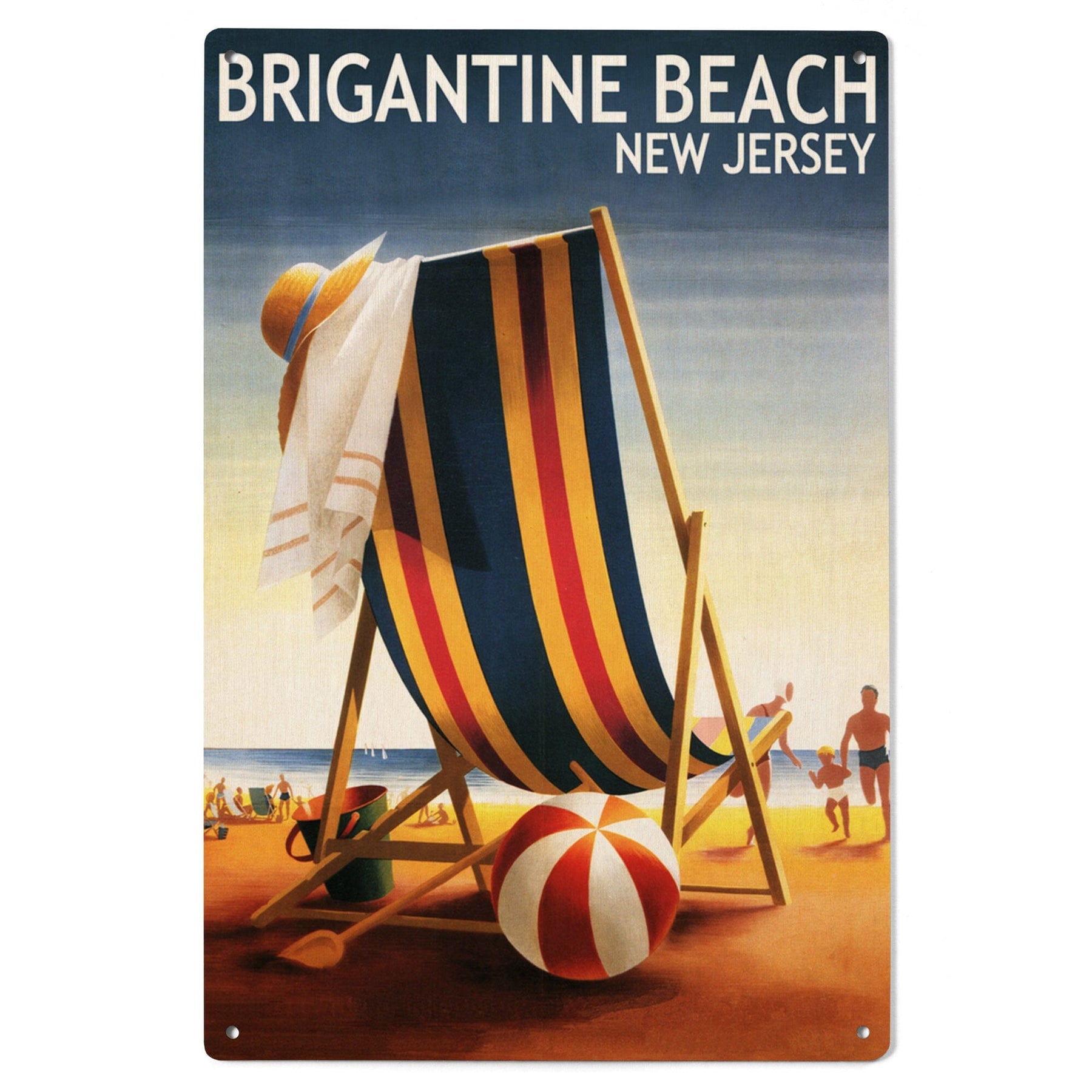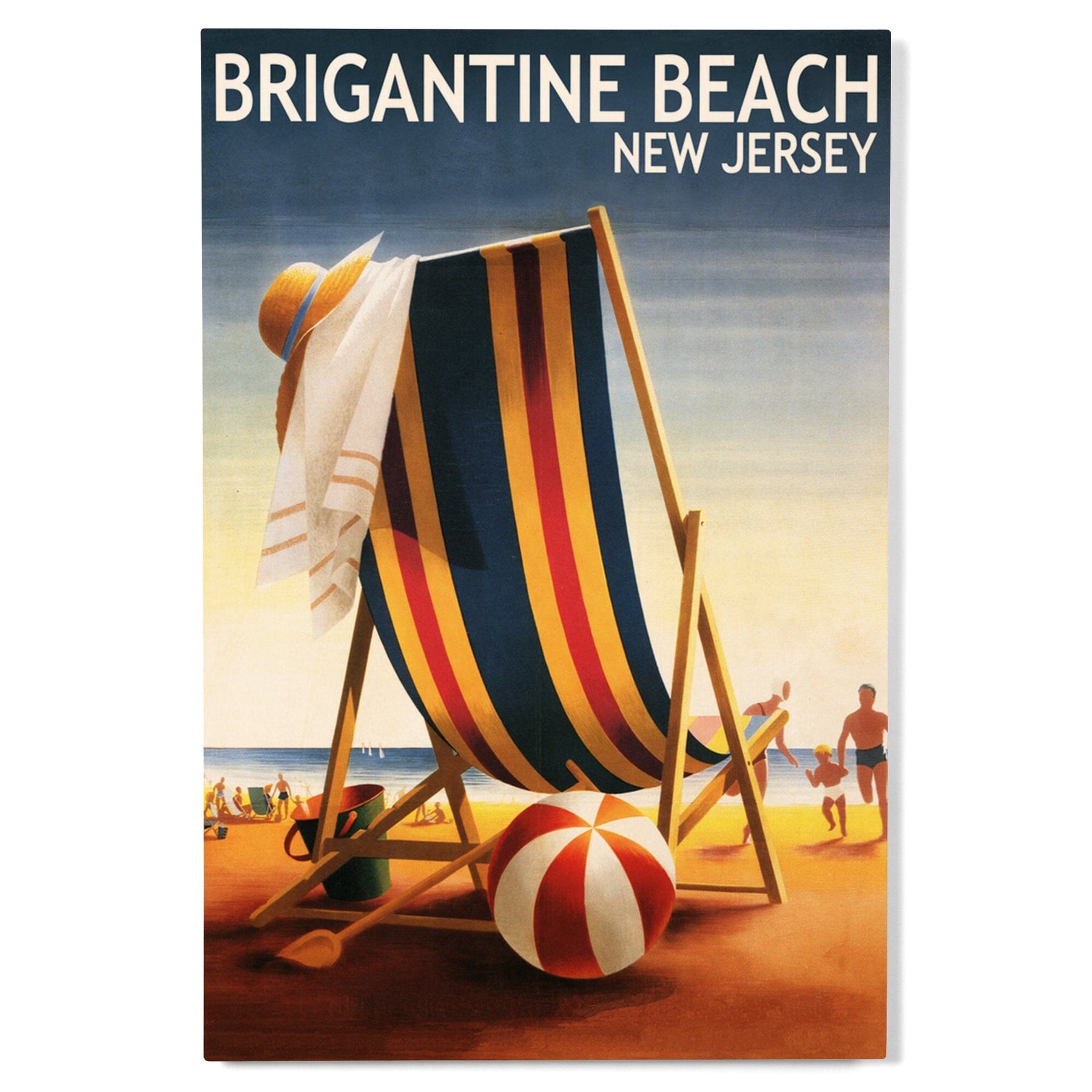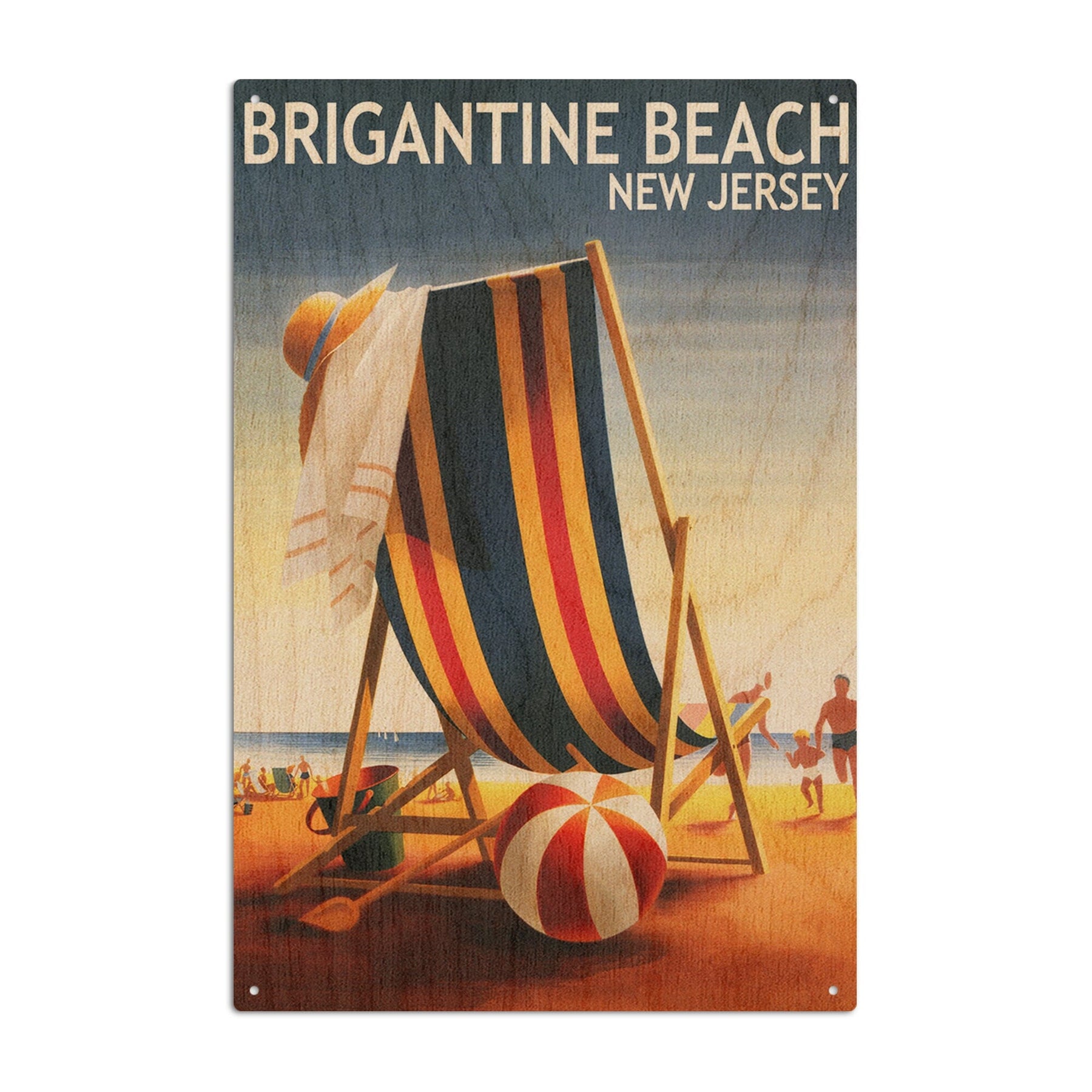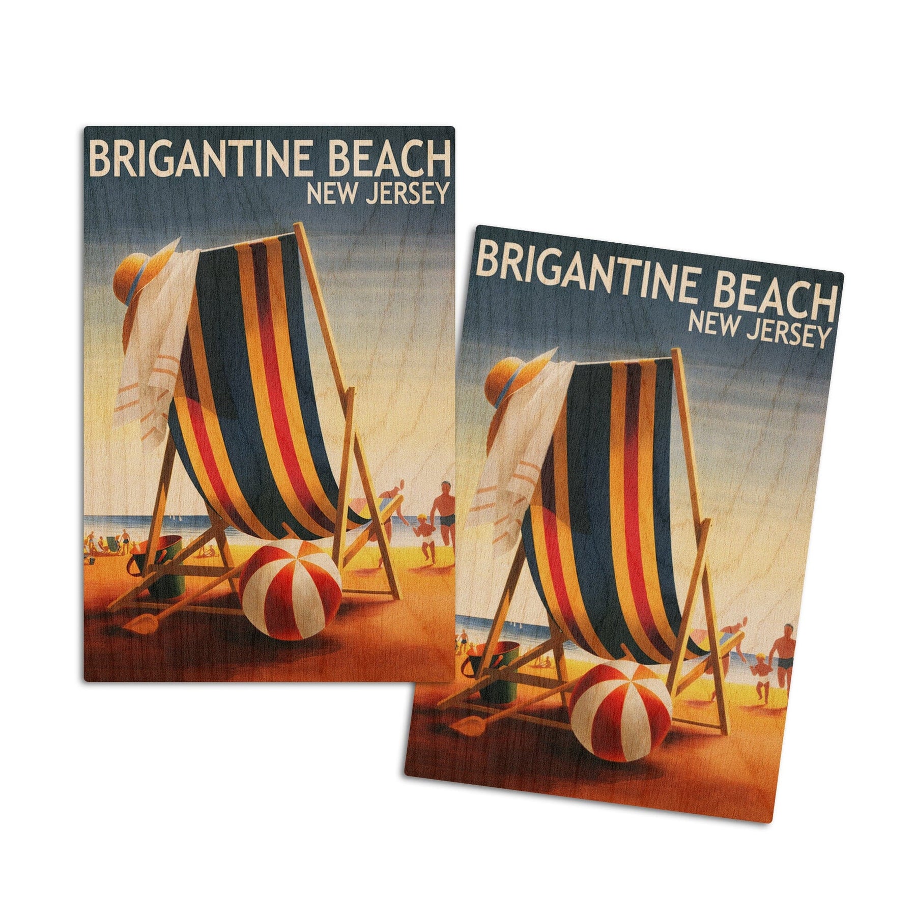 Brigantine Beach, New Jersey, Beach Chair and Ball, Lantern Press Poster, Wood Signs and Postcards