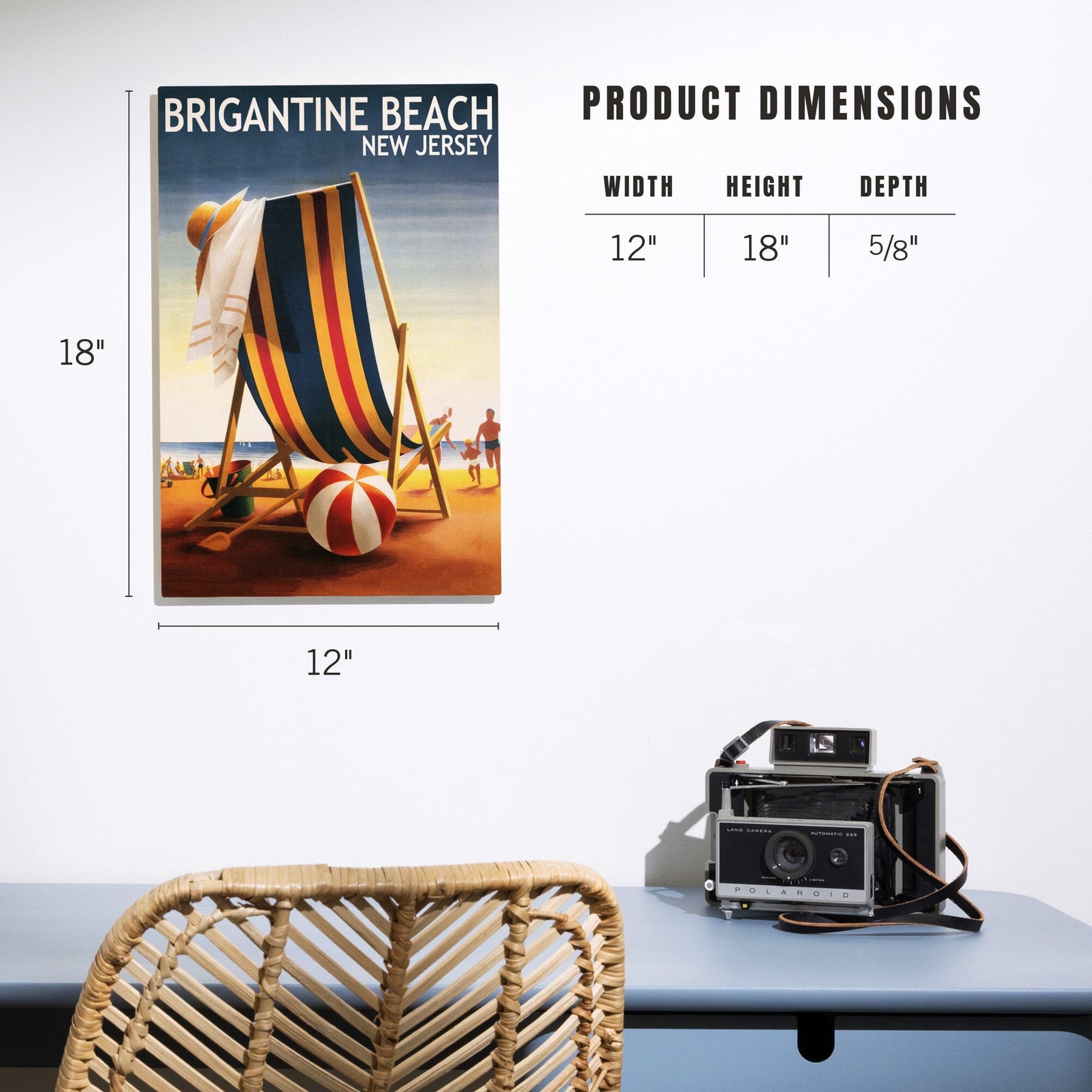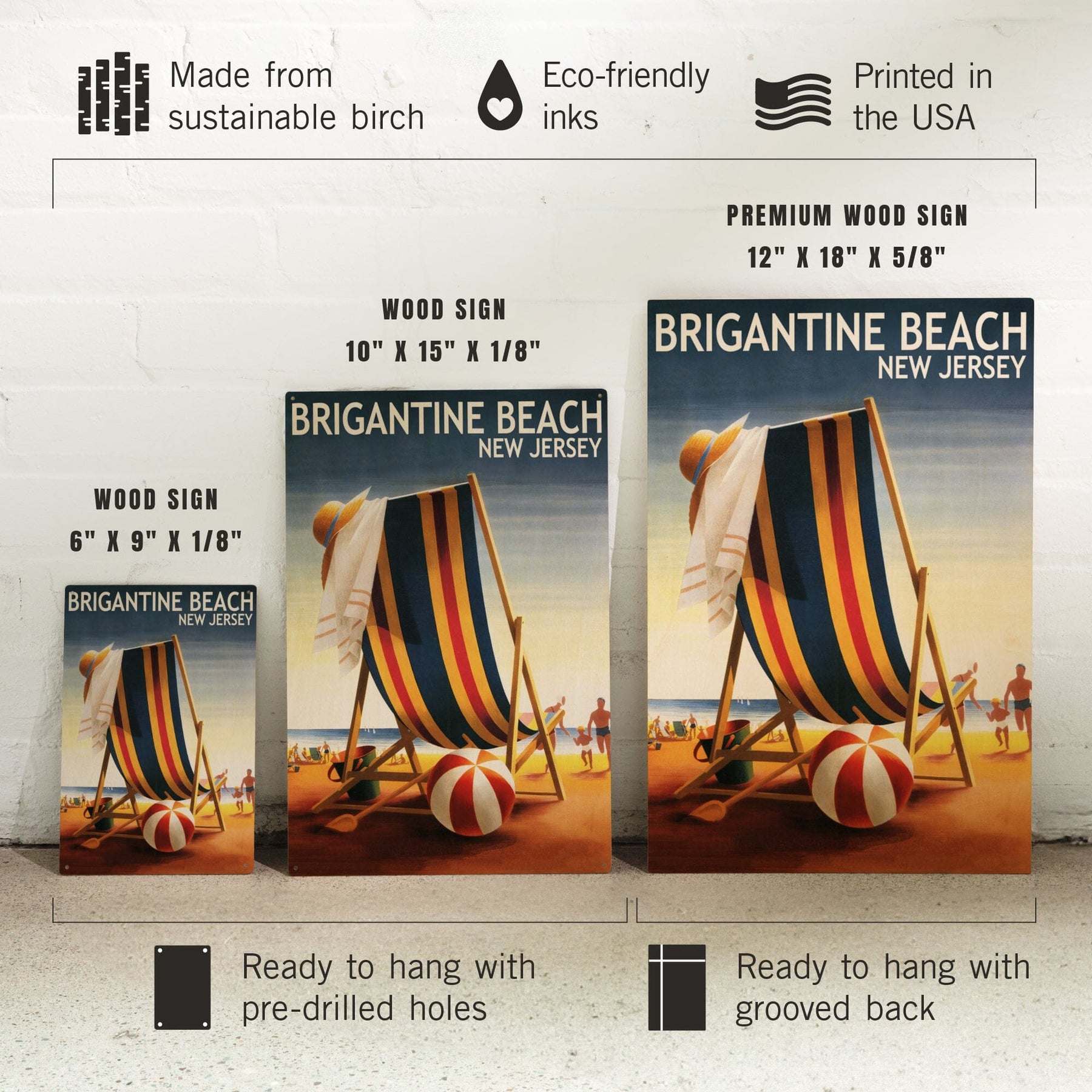 Brigantine Beach, New Jersey, Beach Chair and Ball, Lantern Press Poster, Wood Signs and Postcards - Lantern Press