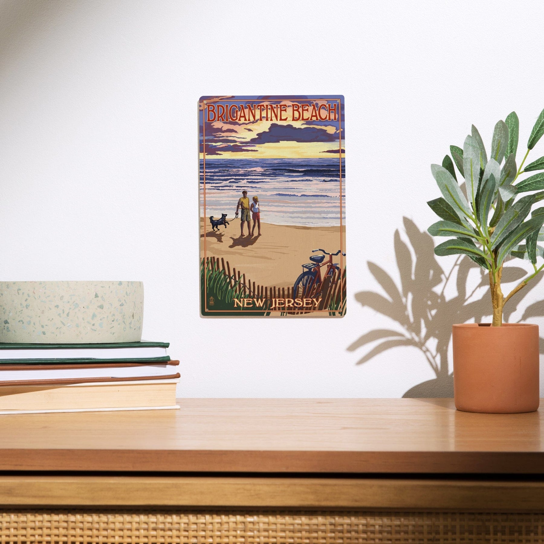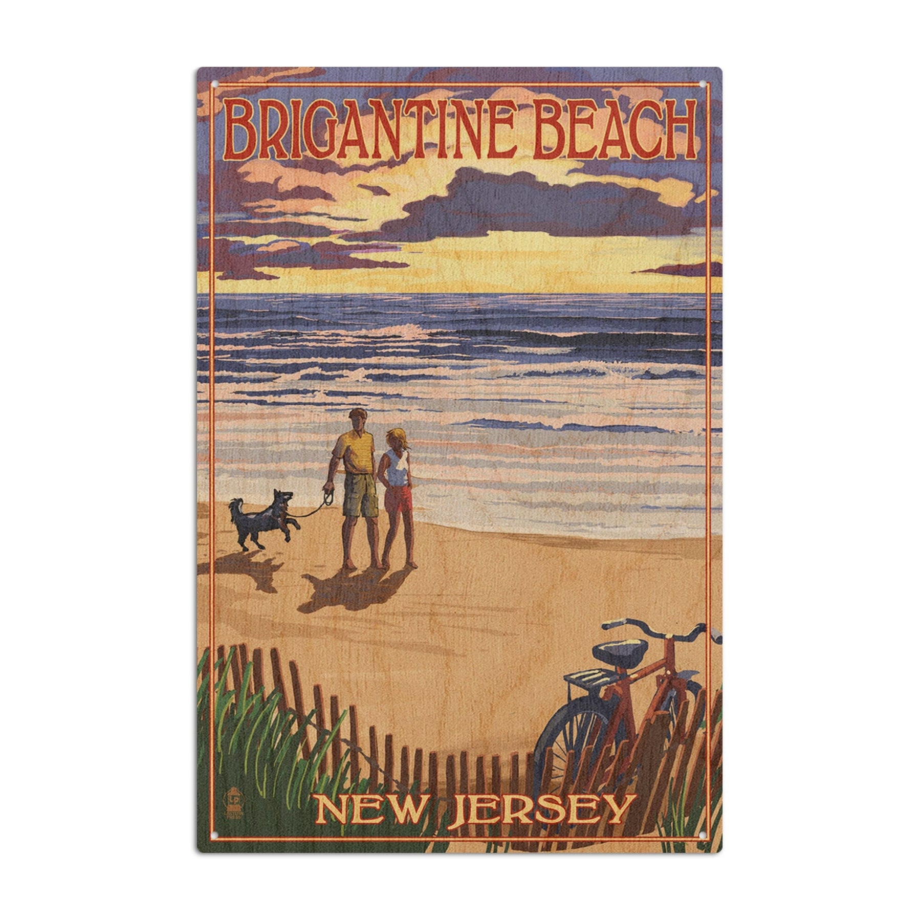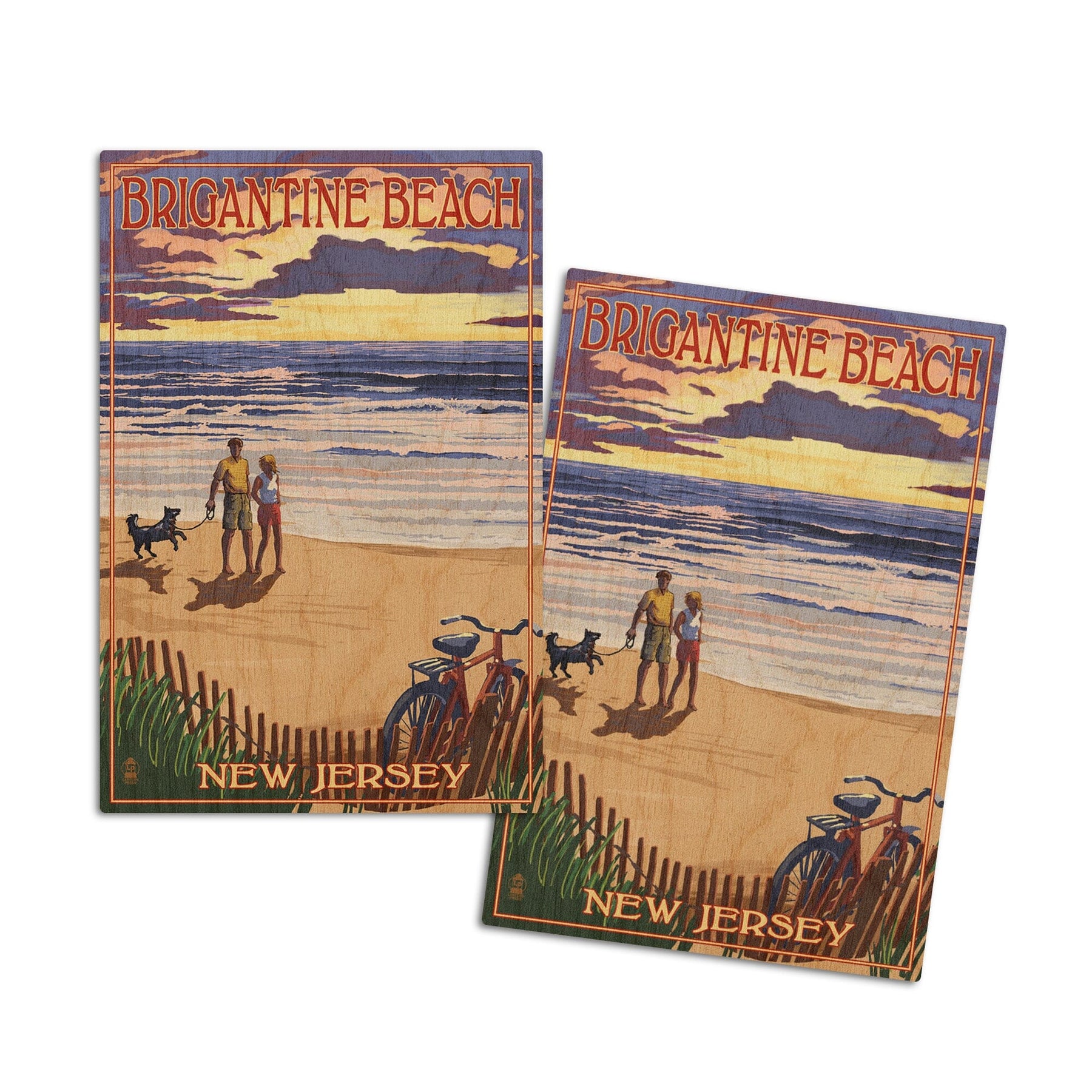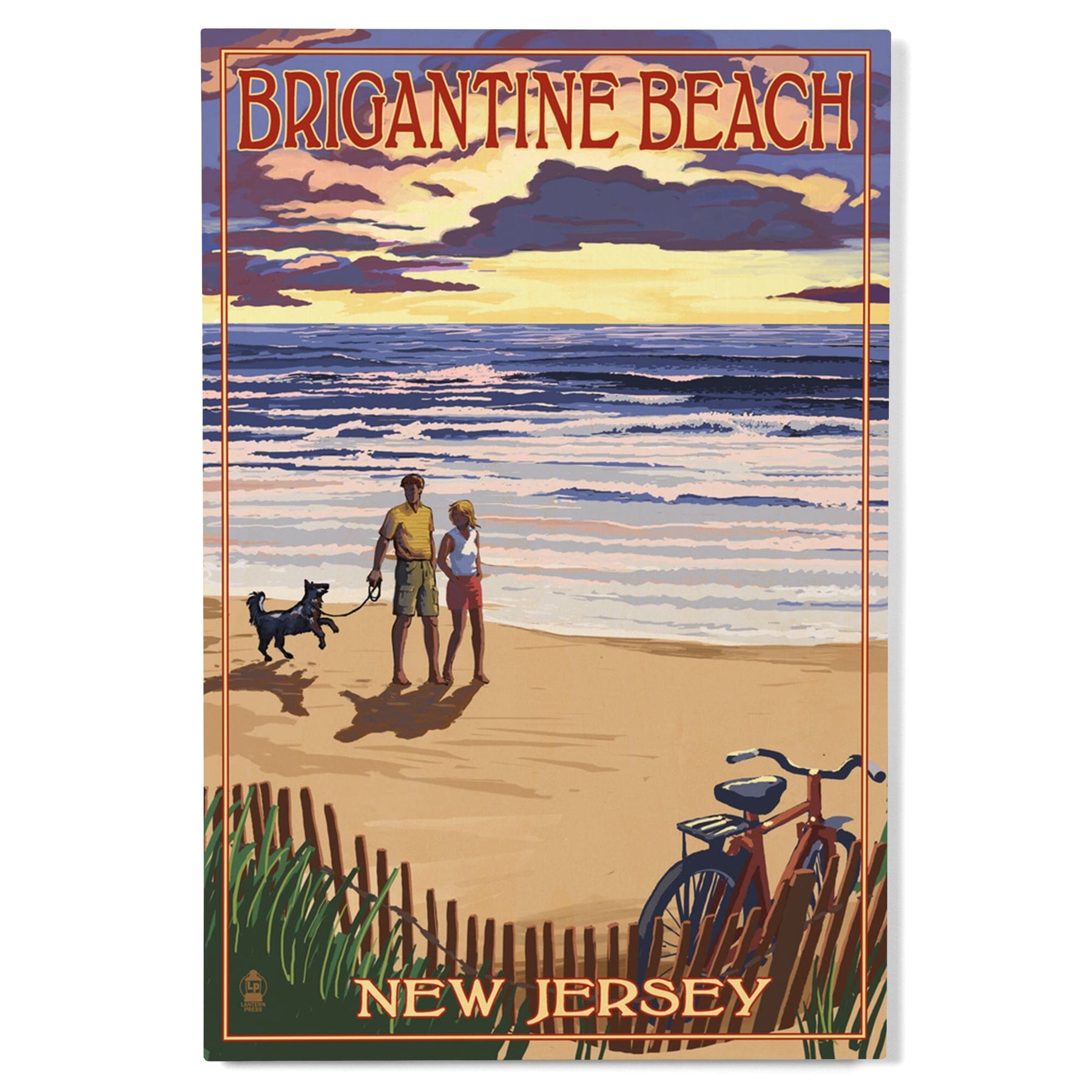 Brigantine Beach, New Jersey, Beach & Sunset, Lantern Press Artwork, Wood Signs and Postcards