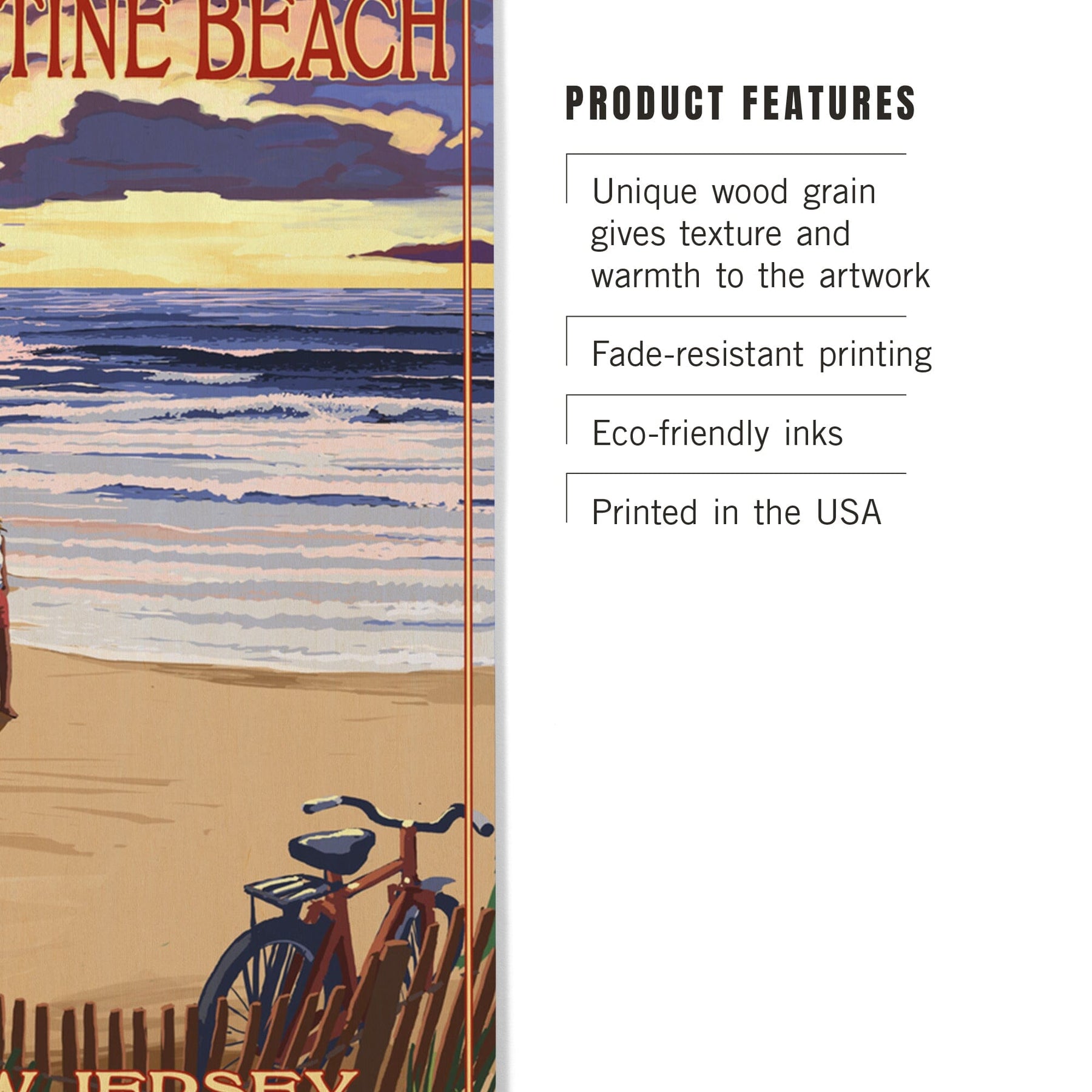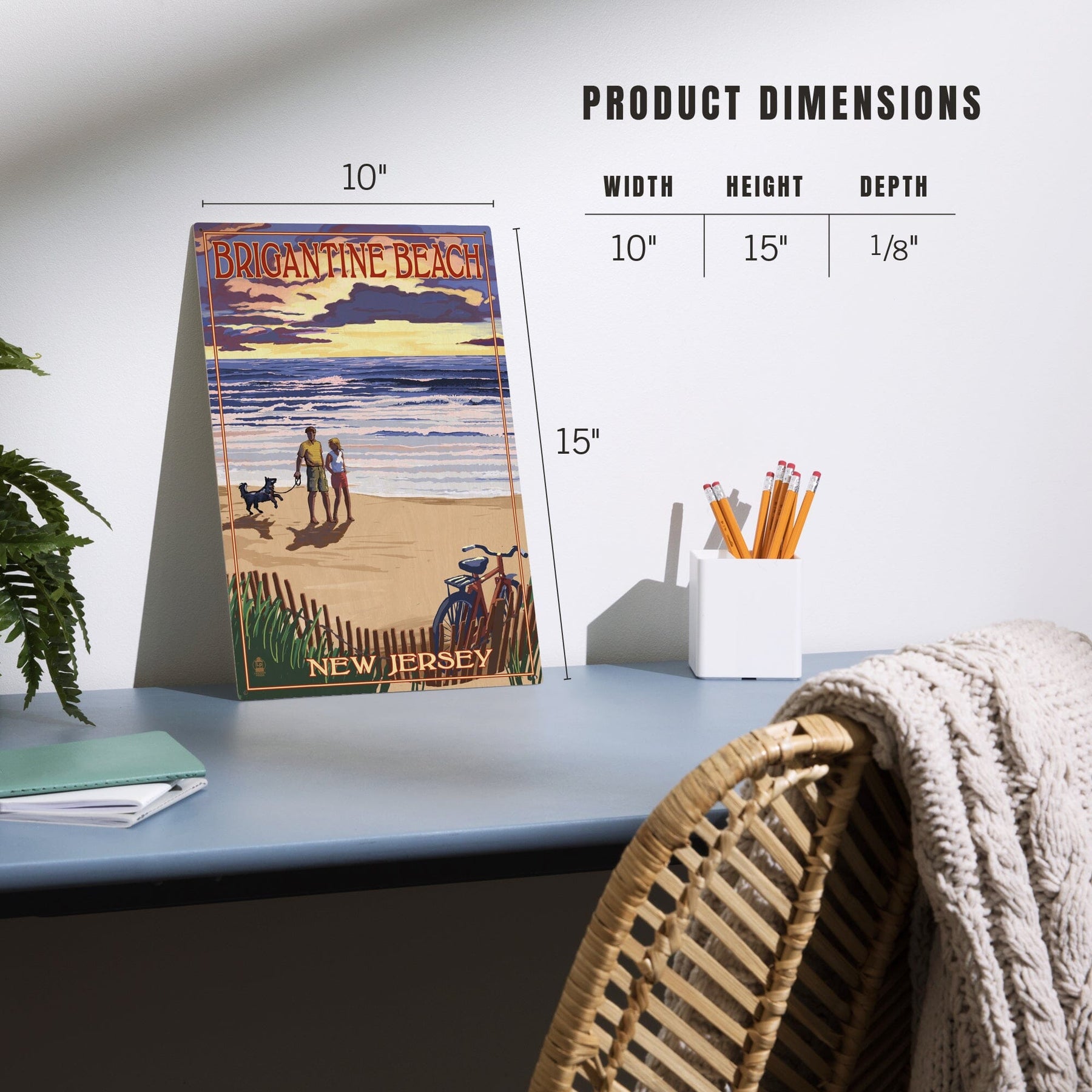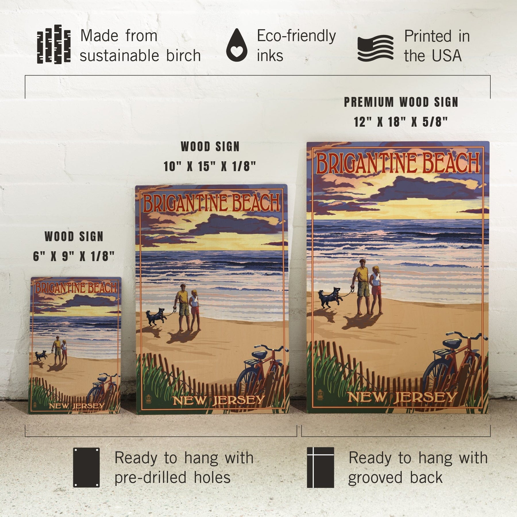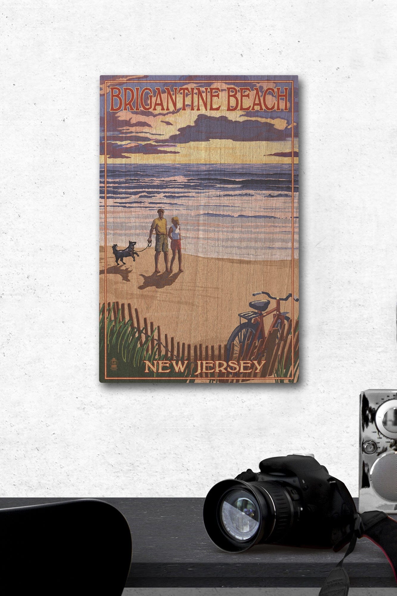 Brigantine Beach, New Jersey, Beach & Sunset, Lantern Press Artwork, Wood Signs and Postcards