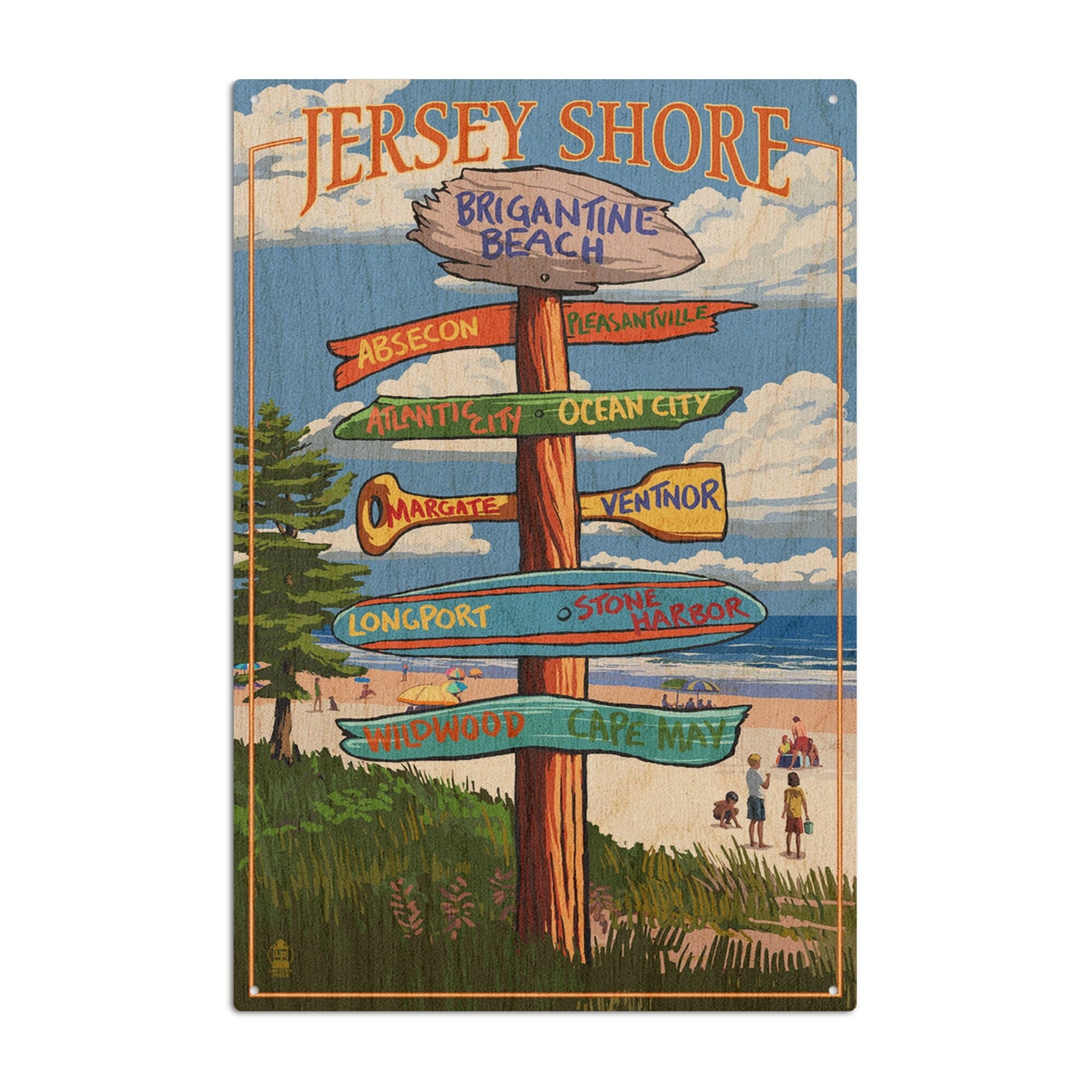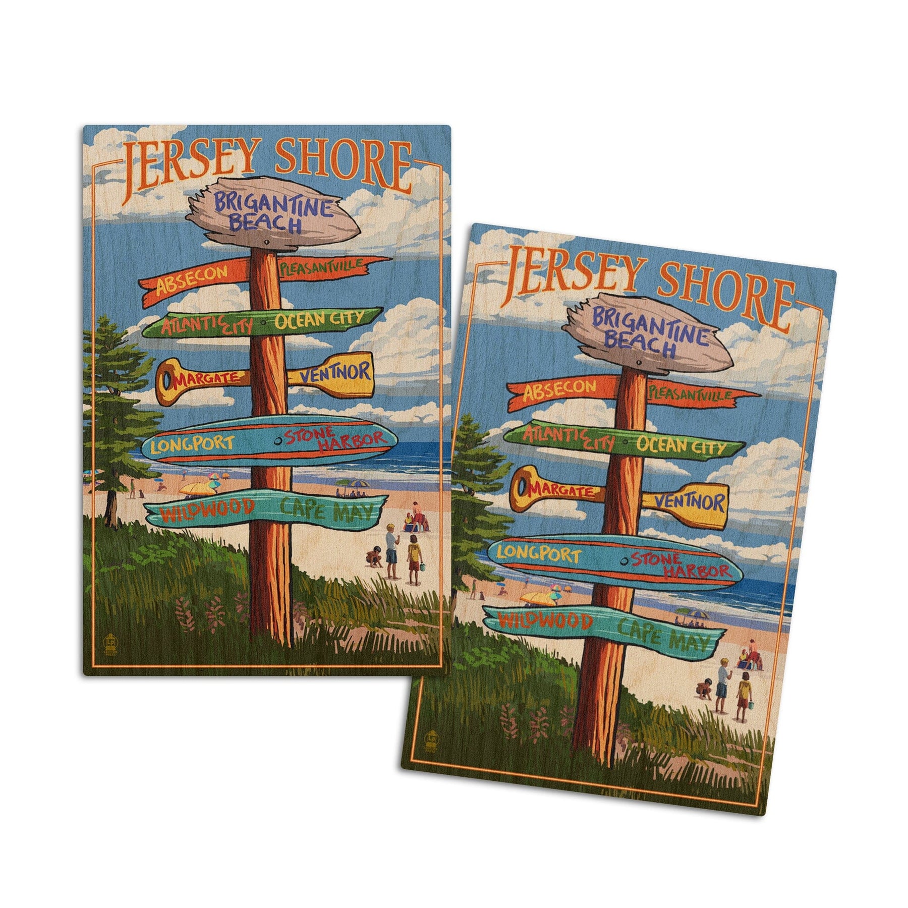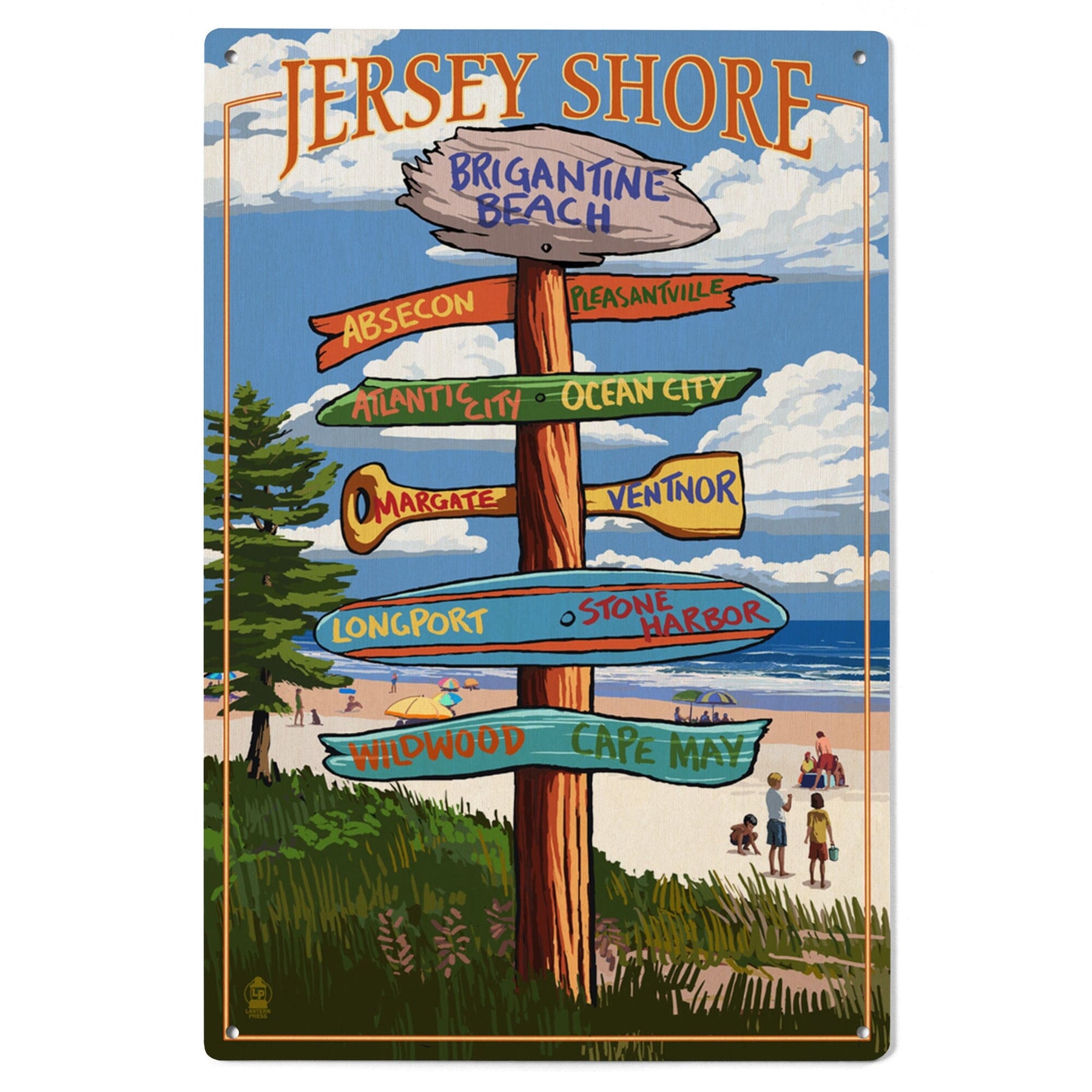 Brigantine Beach, New Jersey, Destinations Signpost, Lantern Press Artwork, Wood Signs and Postcards