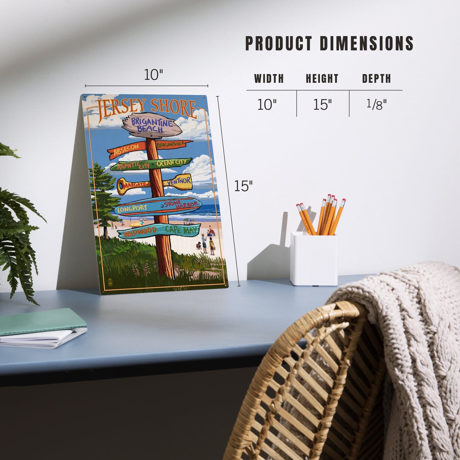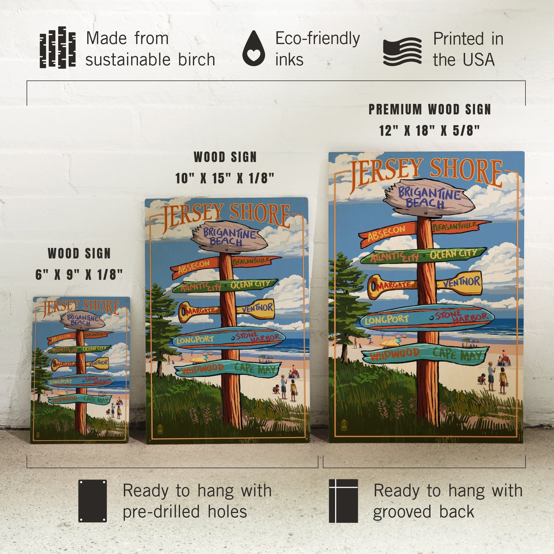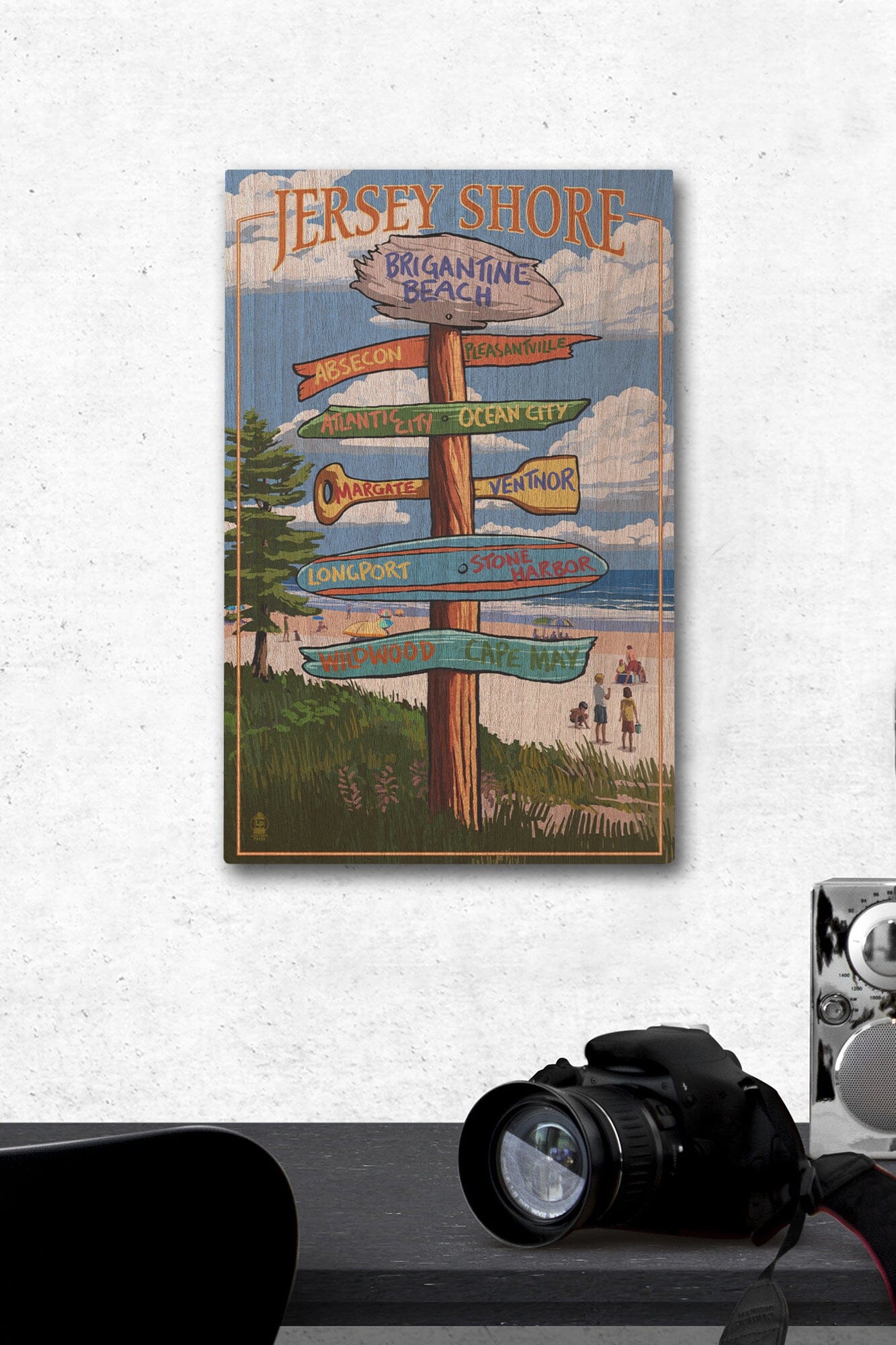 Brigantine Beach, New Jersey, Destinations Signpost, Lantern Press Artwork, Wood Signs and Postcards