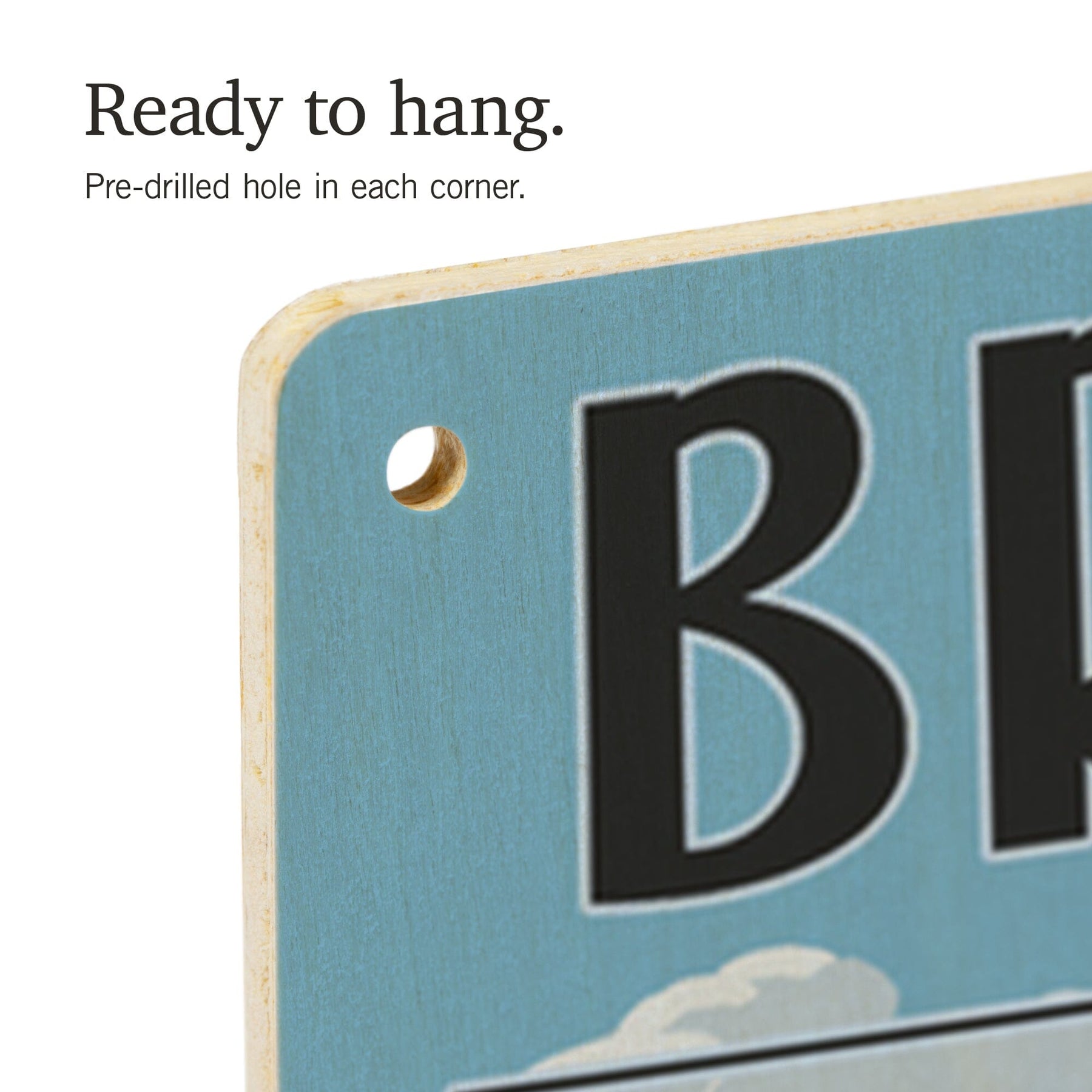 • Hole in each corner, ready to hang