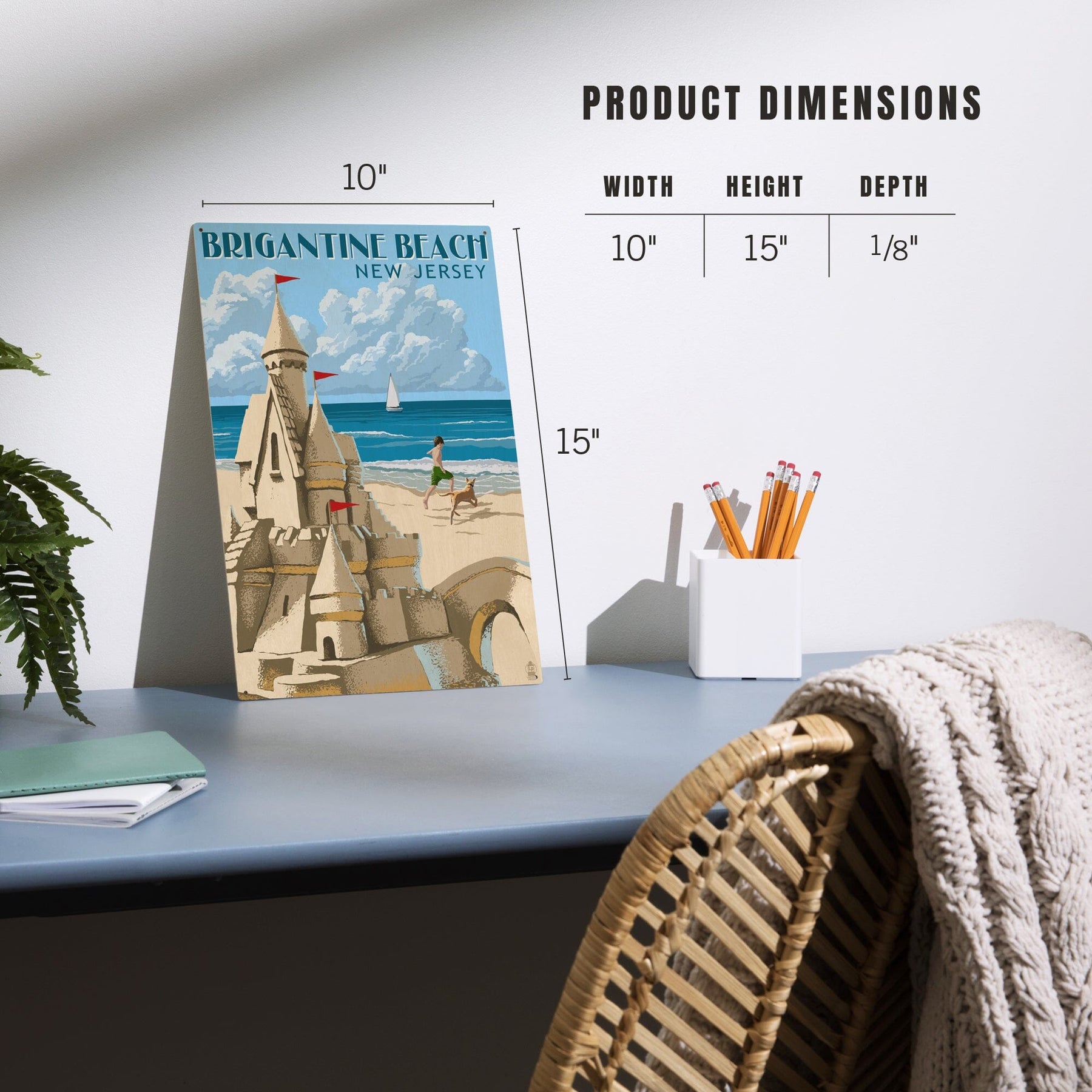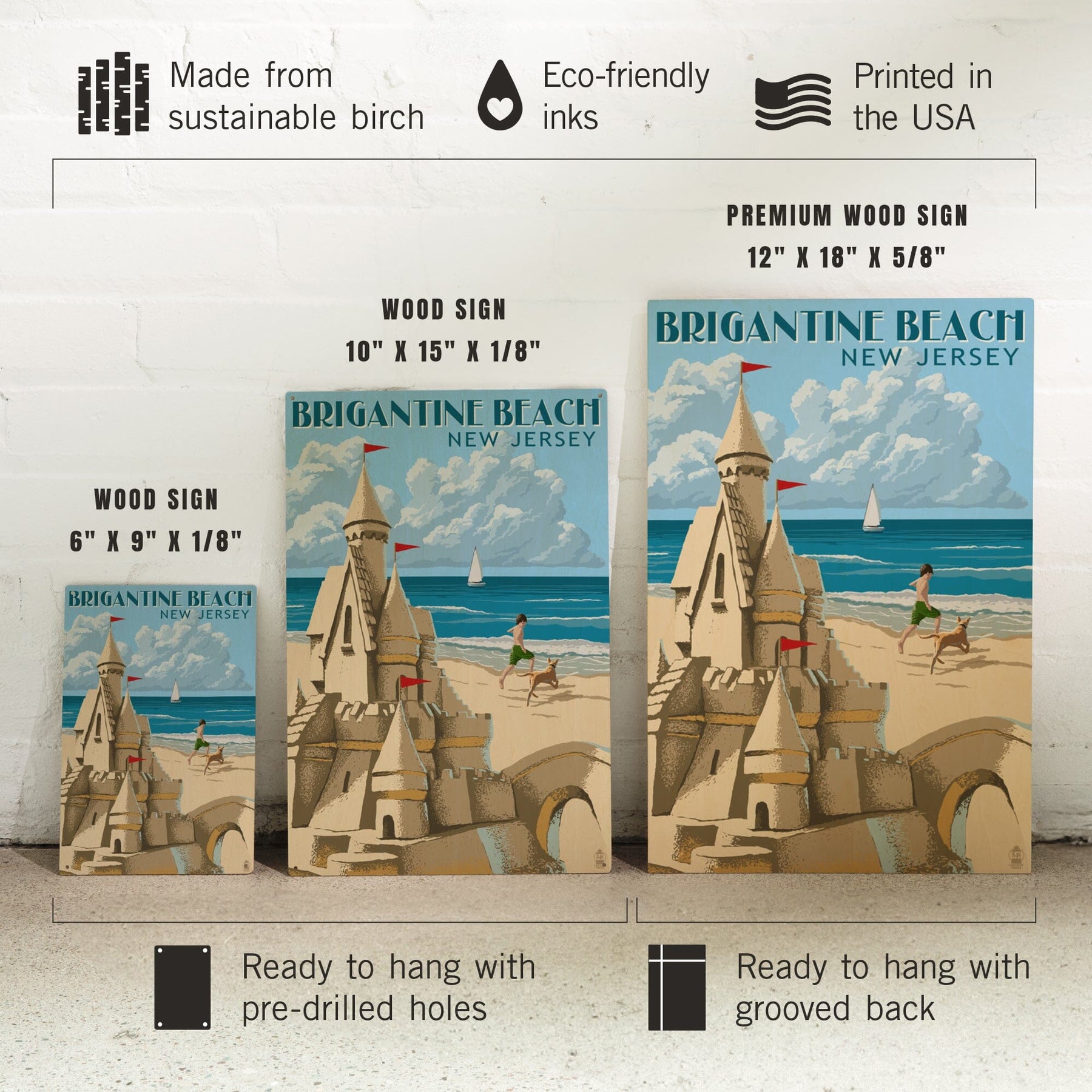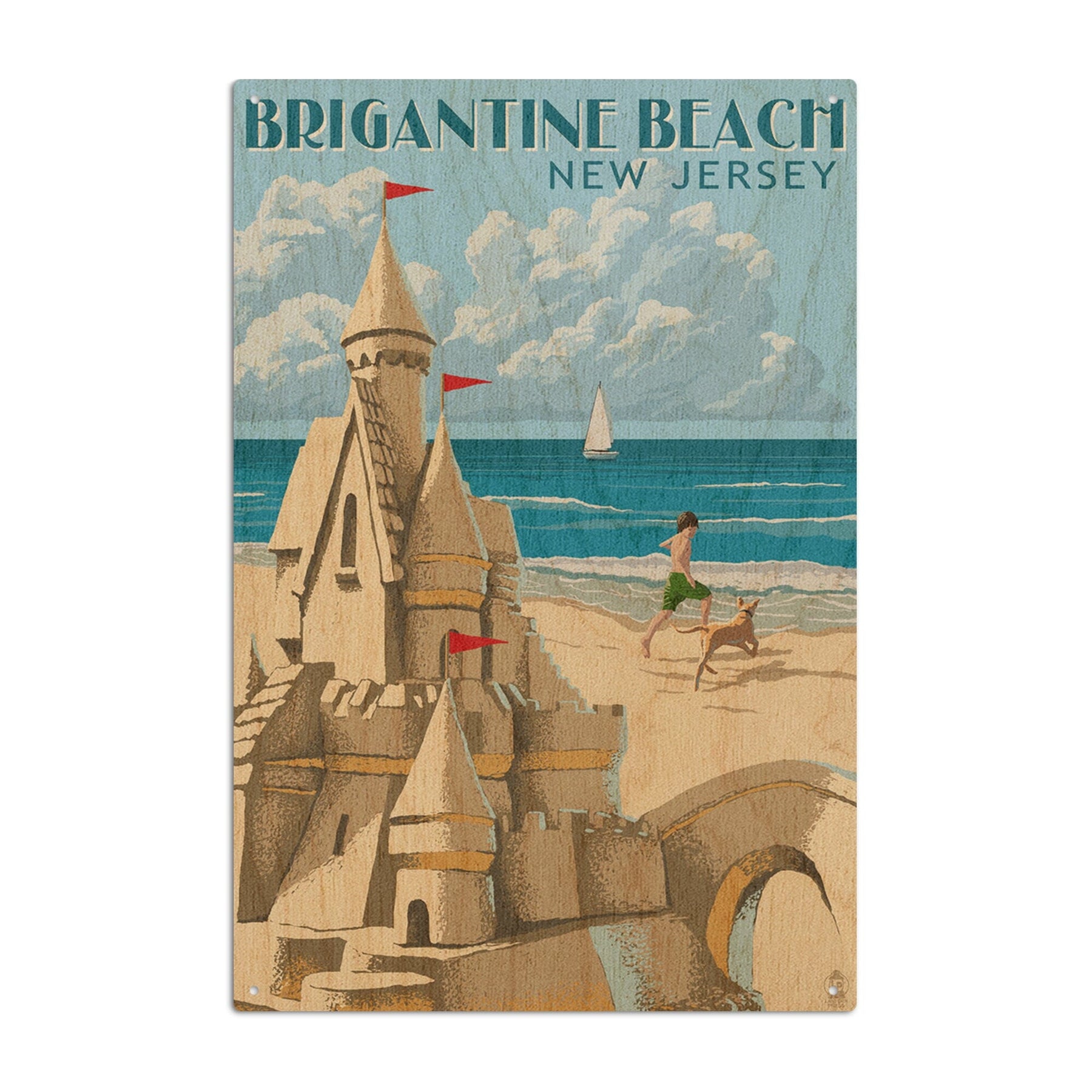 Brigantine Beach, New Jersey, Sandcastle, Lantern Press Artwork, Wood Signs and Postcards