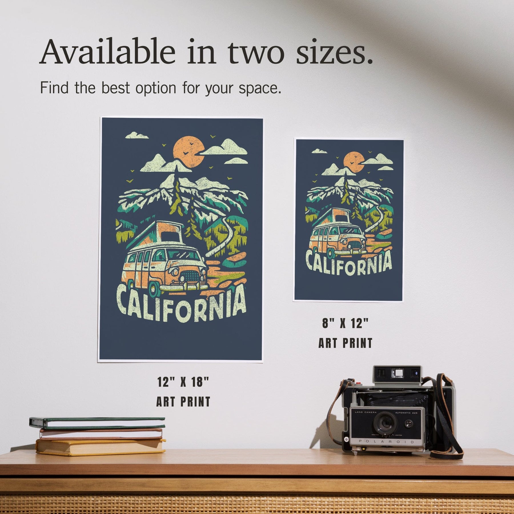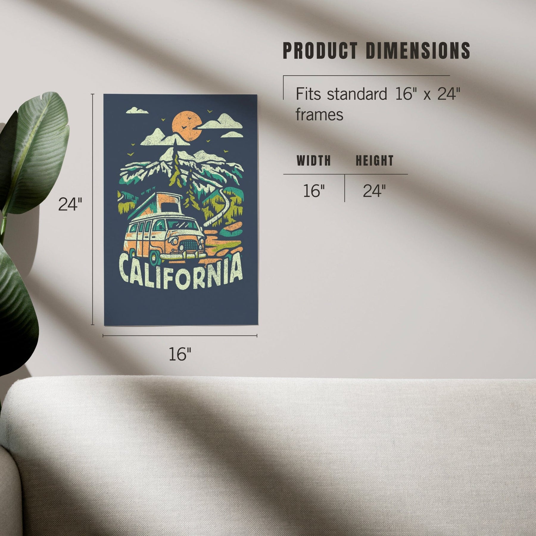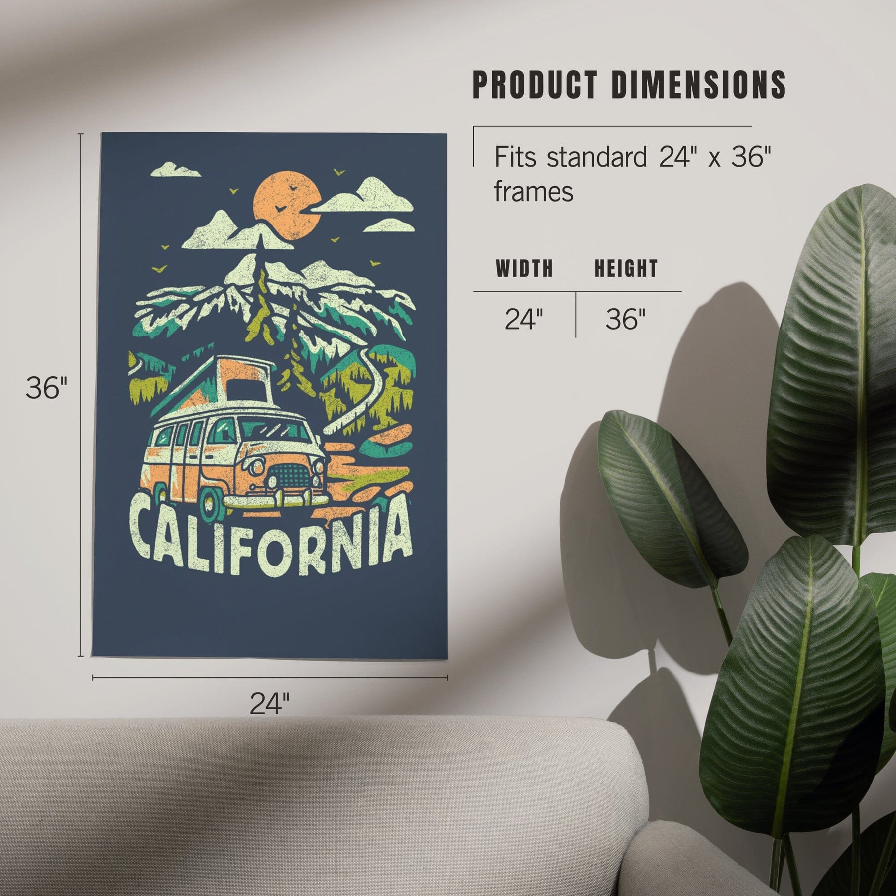 California, Distressed, Camper Van in the Mountains, Art & Giclee Prints Art Lantern Press