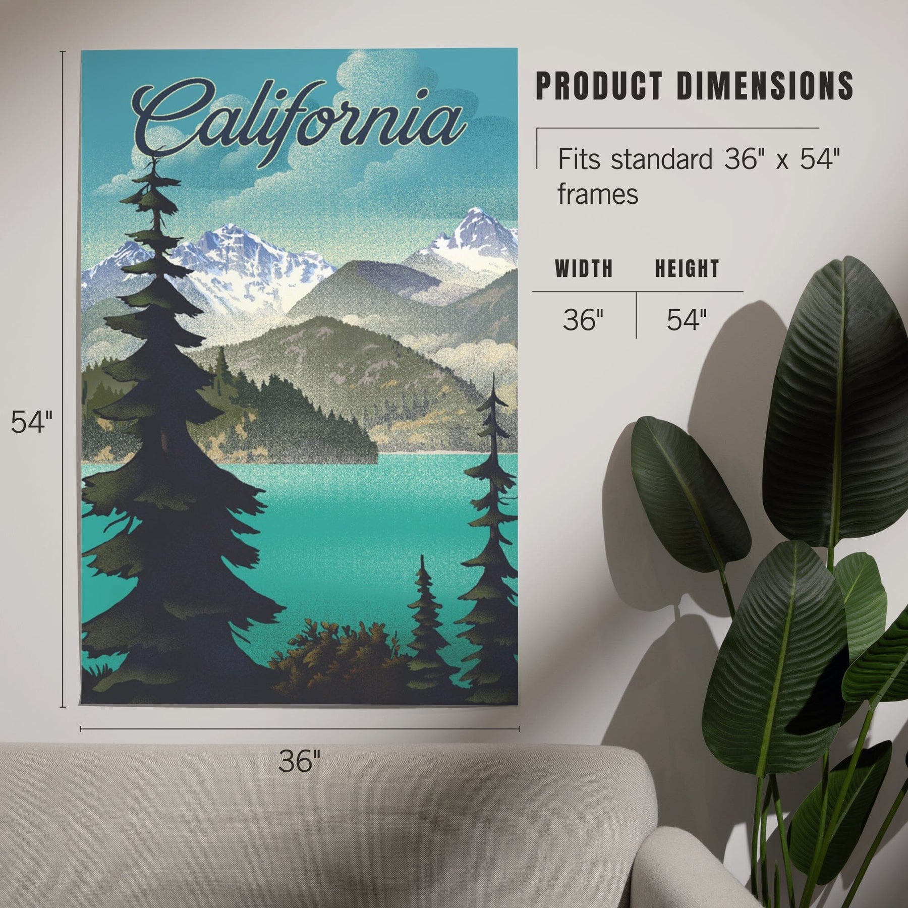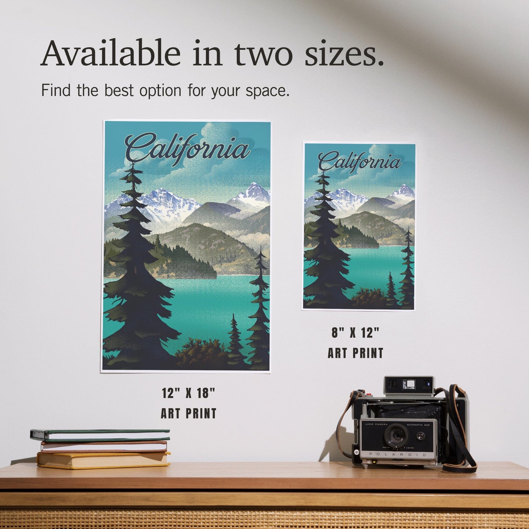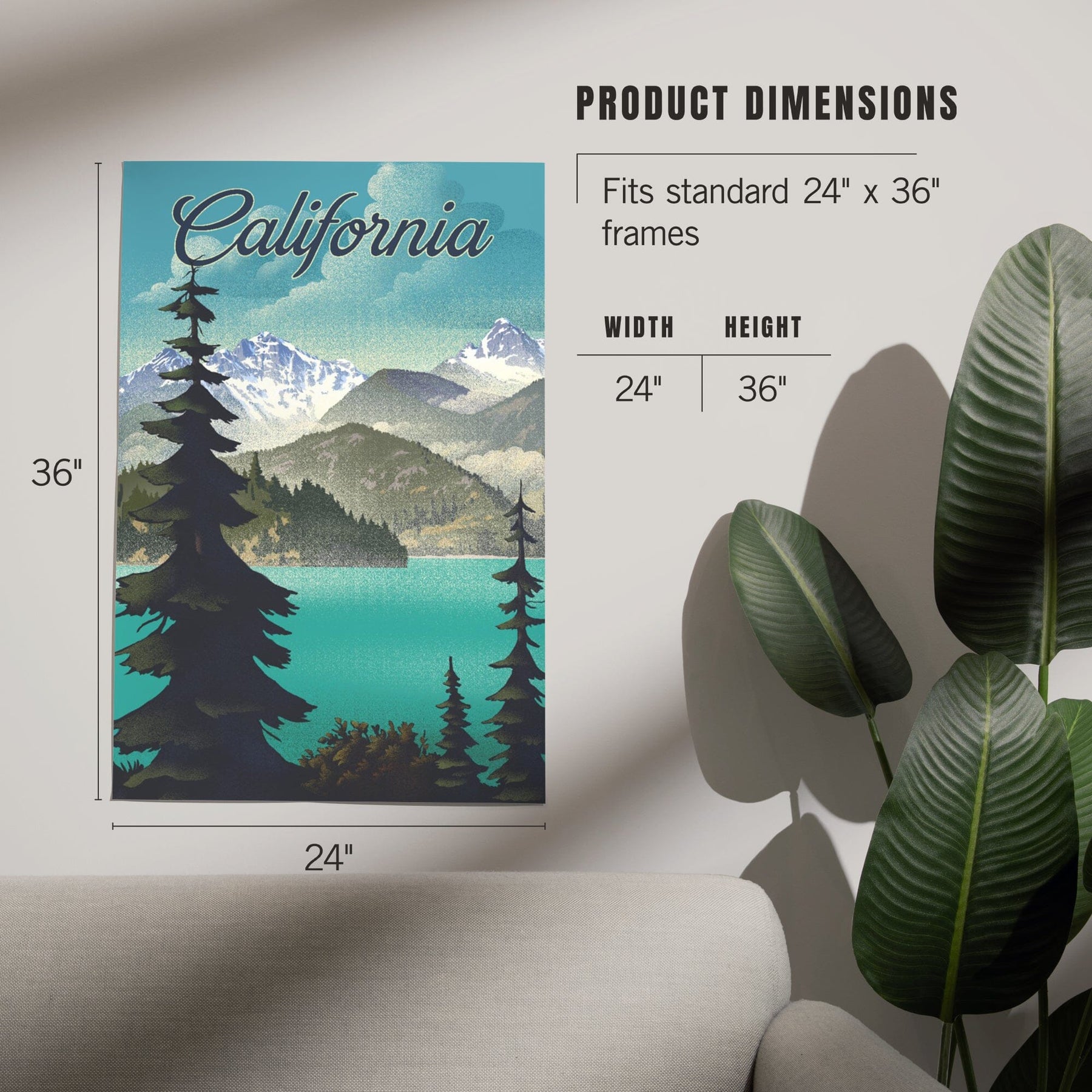 California, Lithograph, Lake and Mountains Scene, Art & Giclee Prints Art Lantern Press