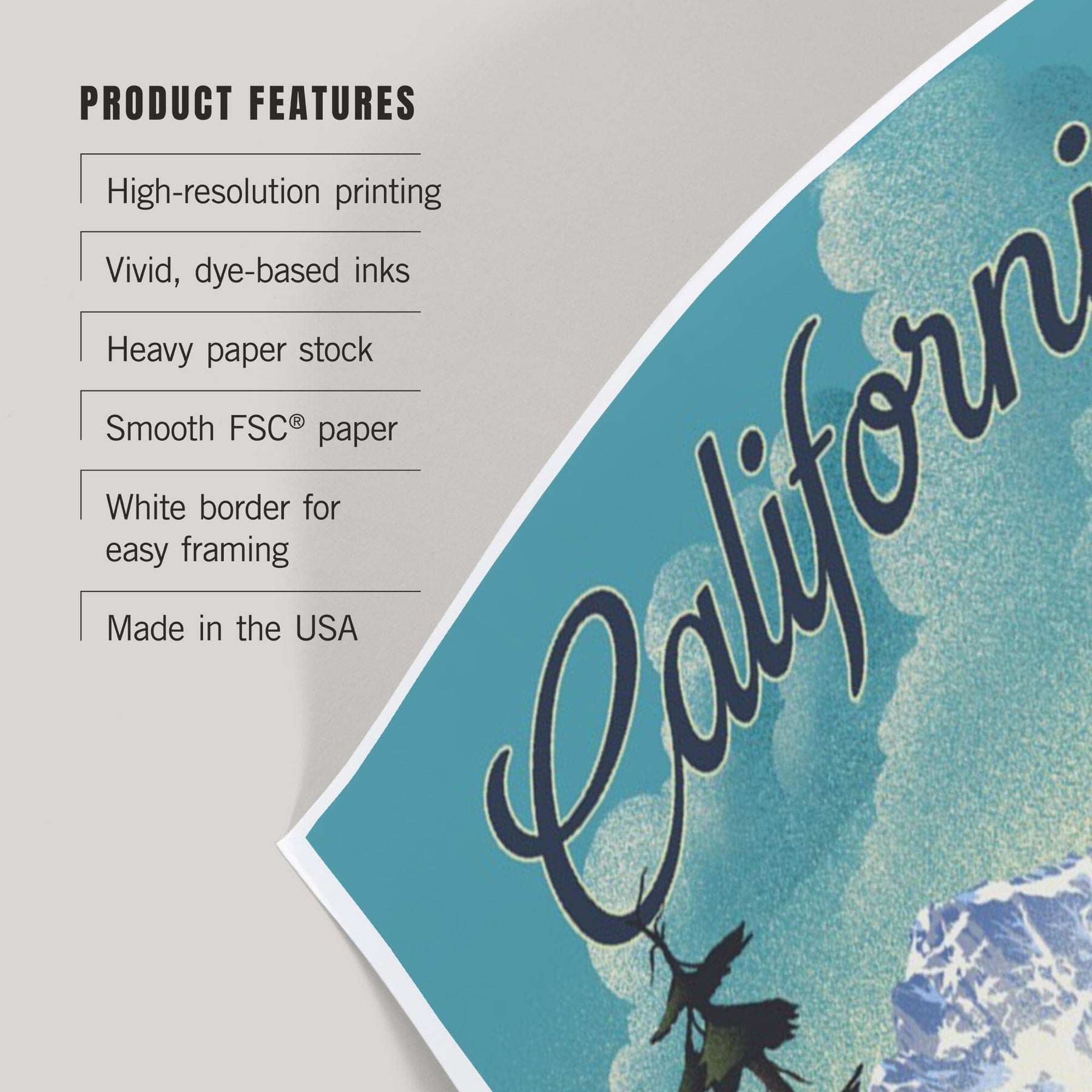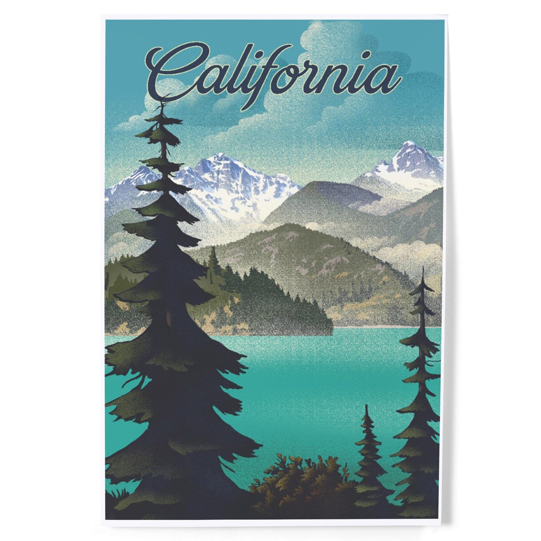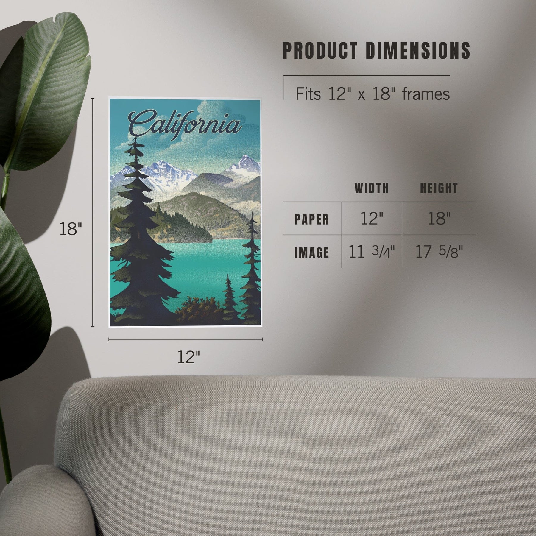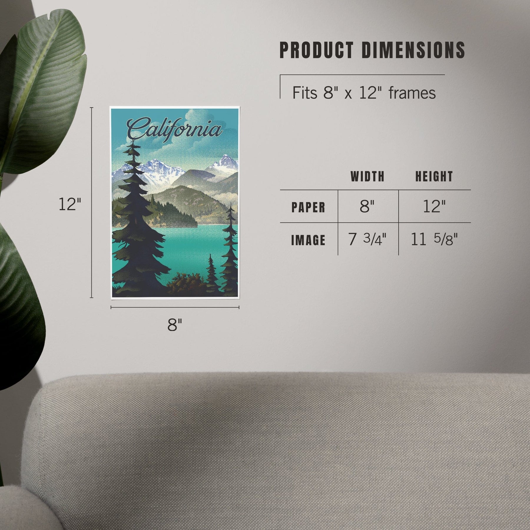 California, Lithograph, Lake and Mountains Scene, Art & Giclee Prints Art Lantern Press