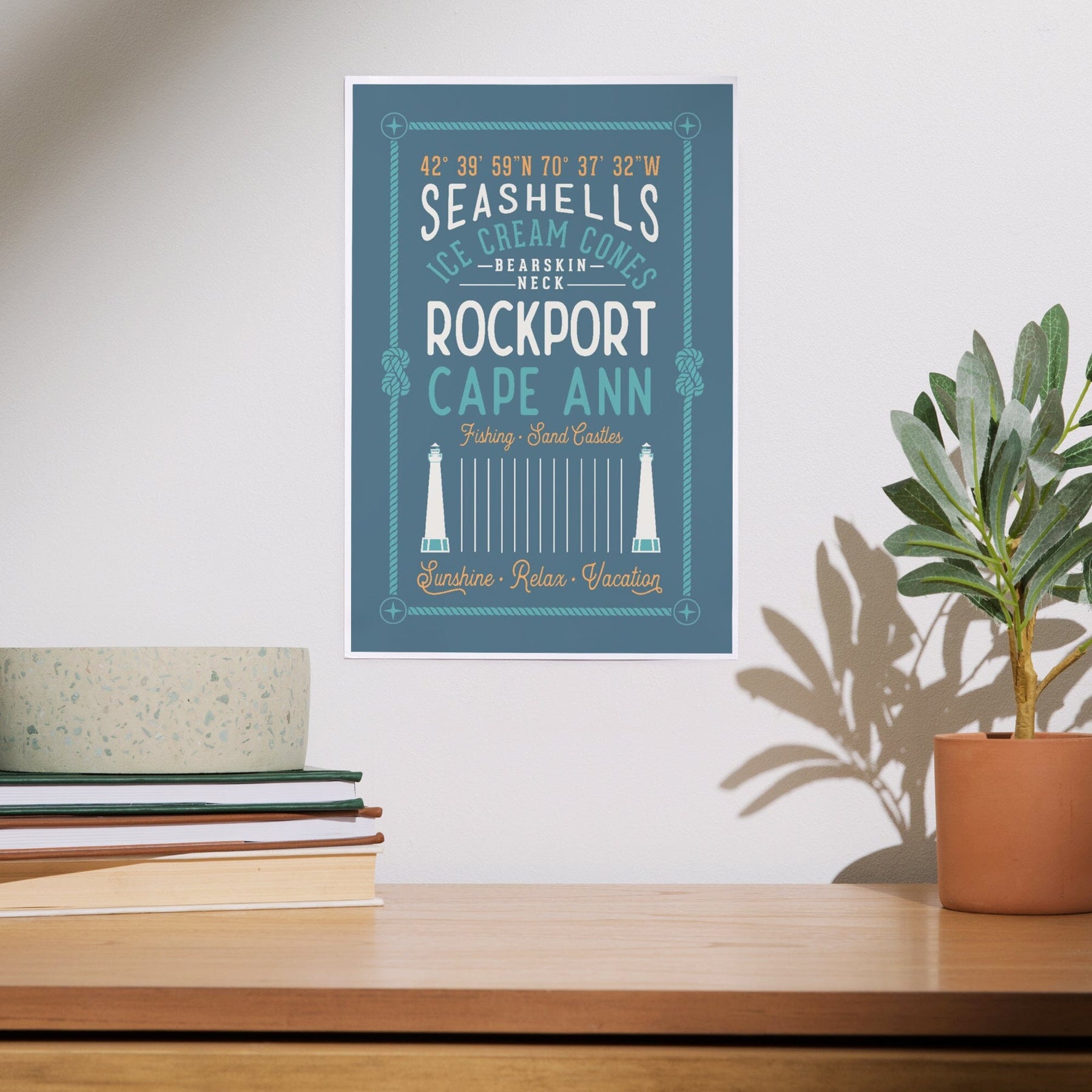 Cape Ann, Massachusetts, Typography, Blue, Art & Giclee Prints - Lantern Press