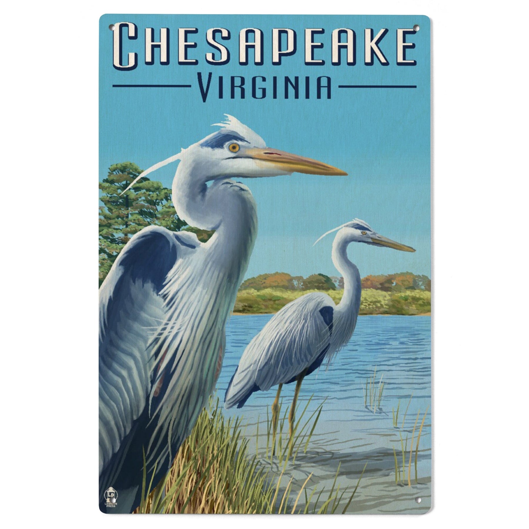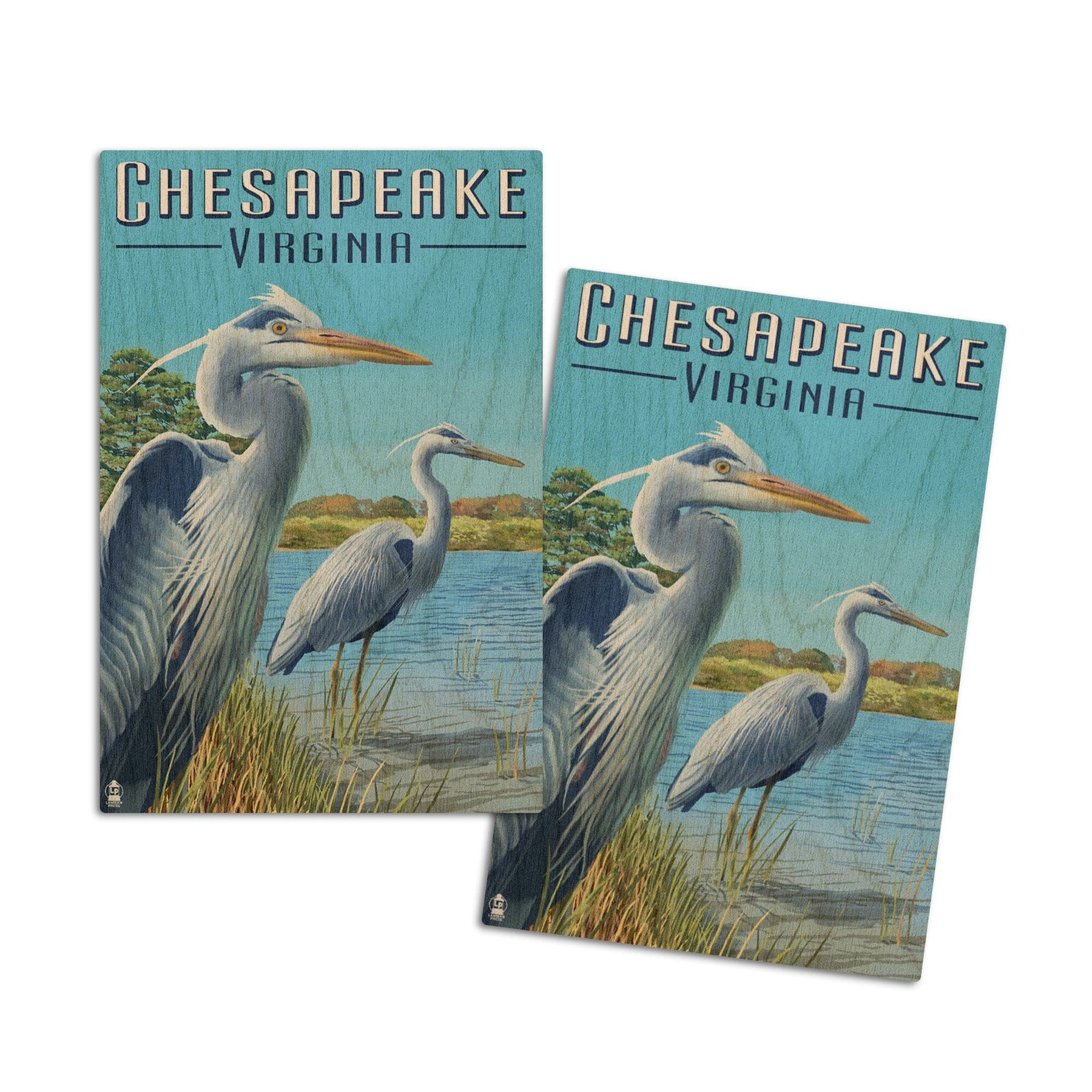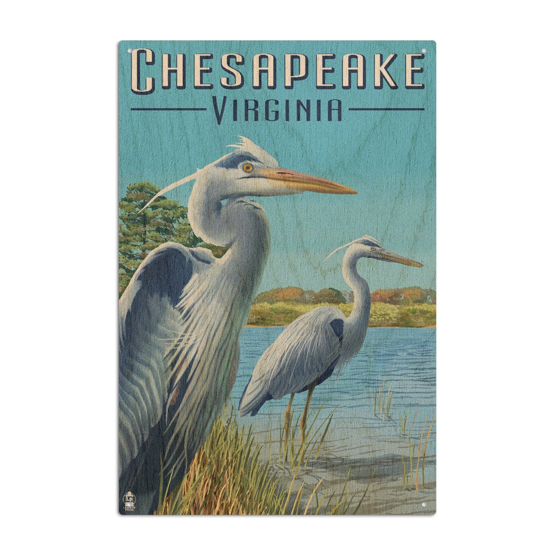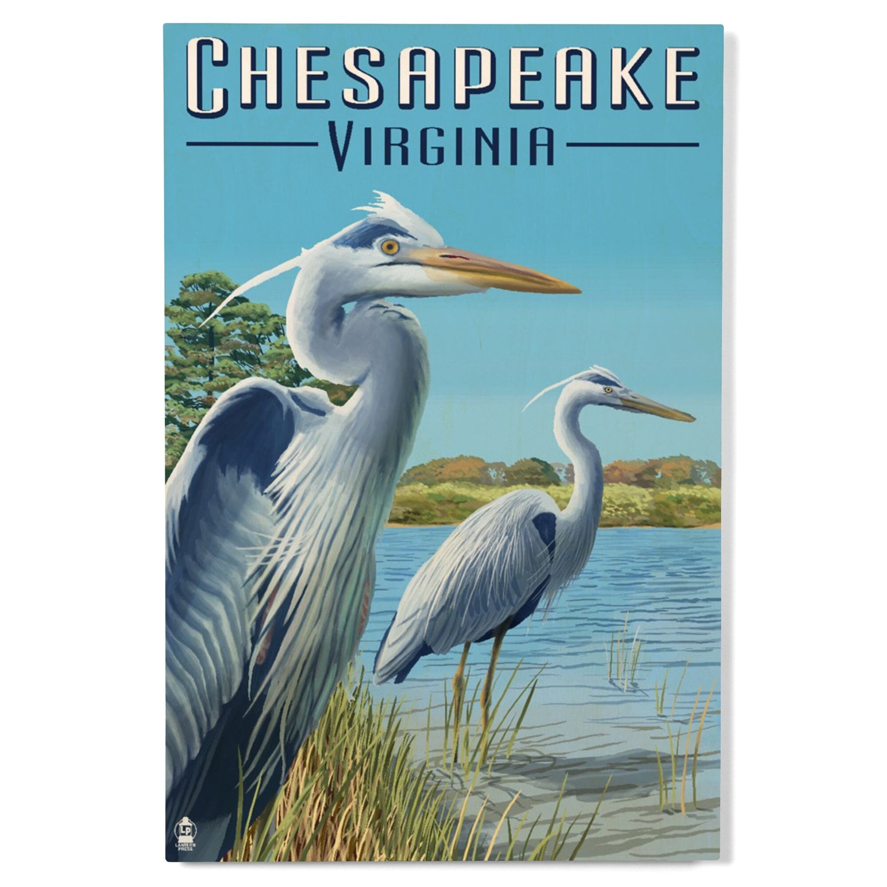 Chesapeake, Virginia, Blue Herons, Lantern Press Artwork, Wood Signs and Postcards