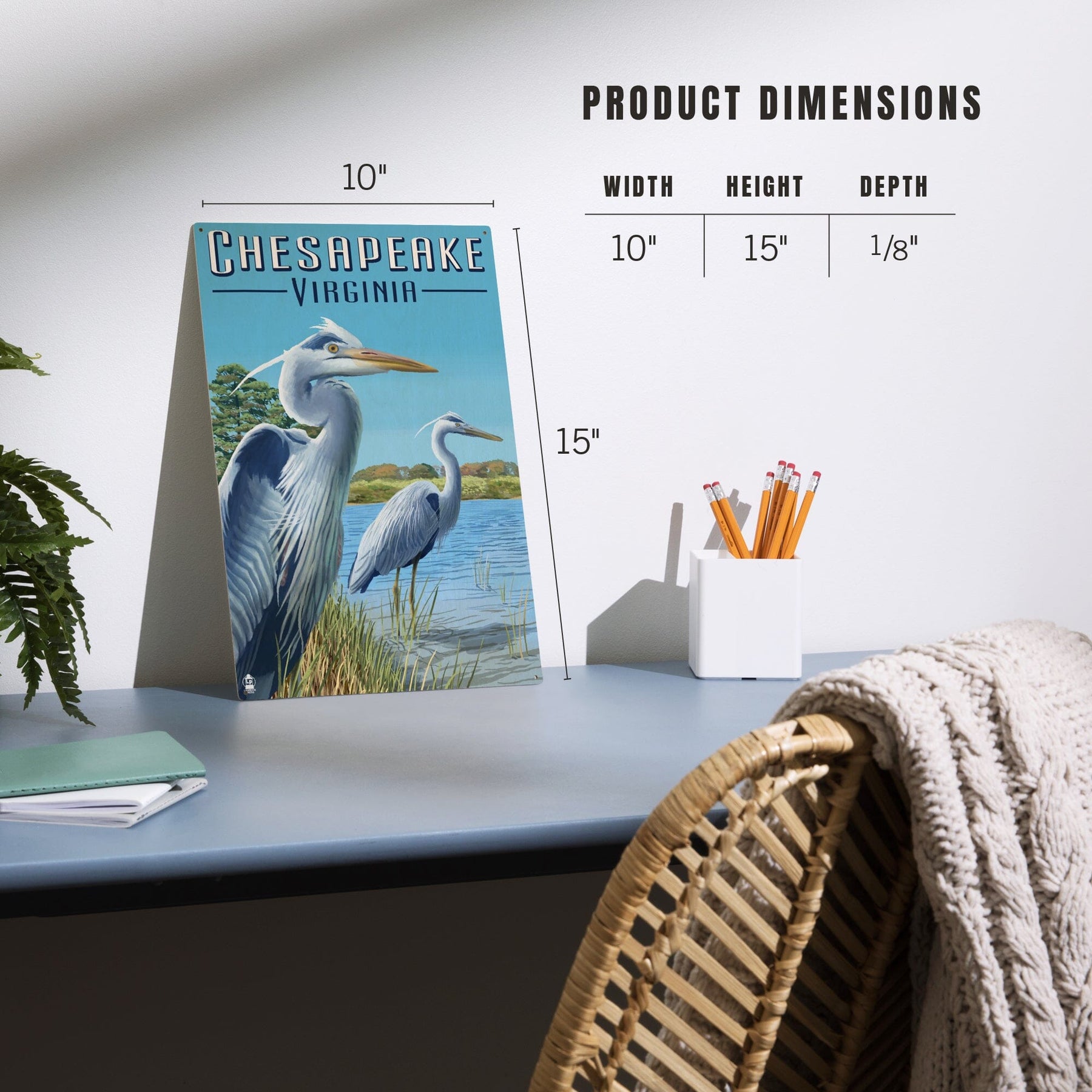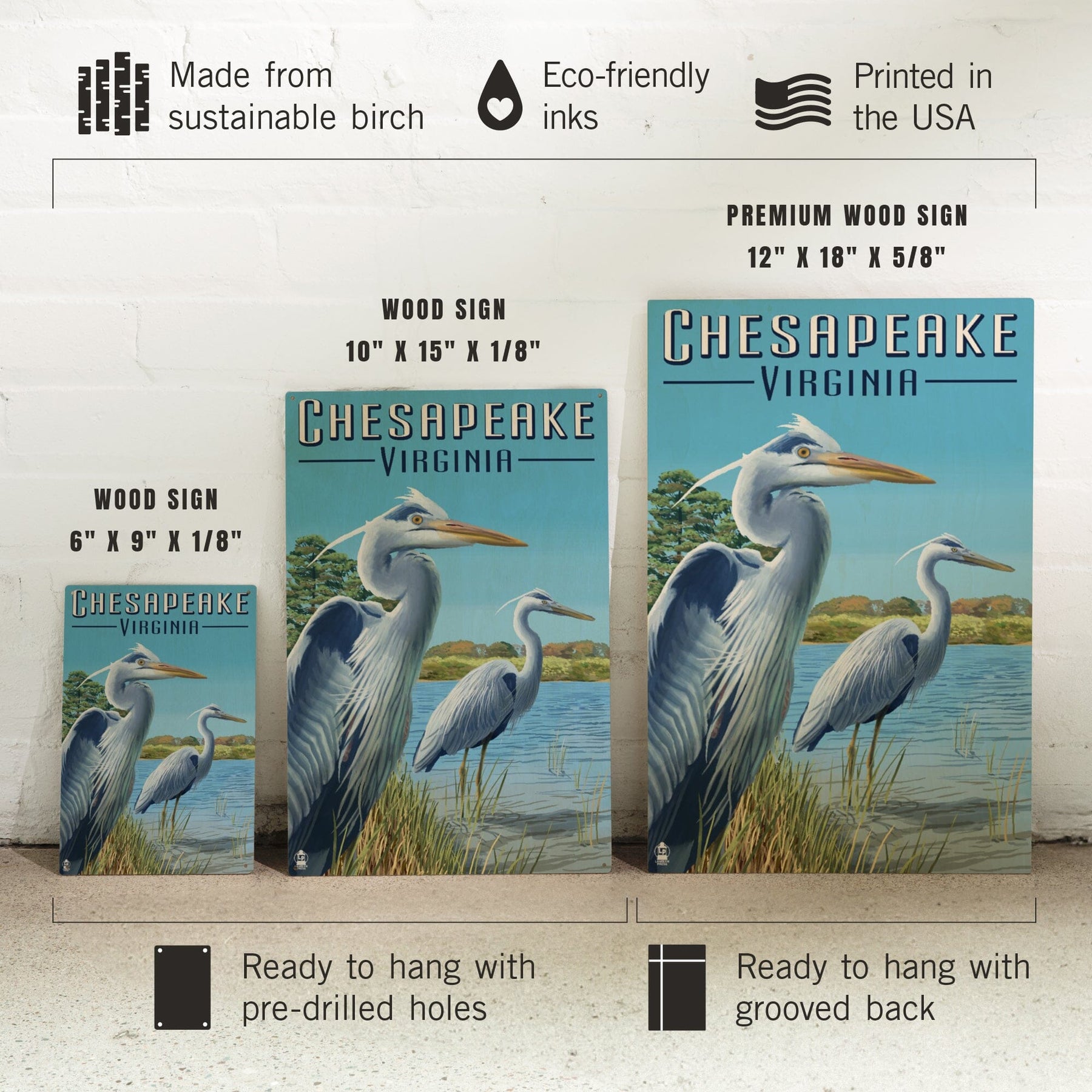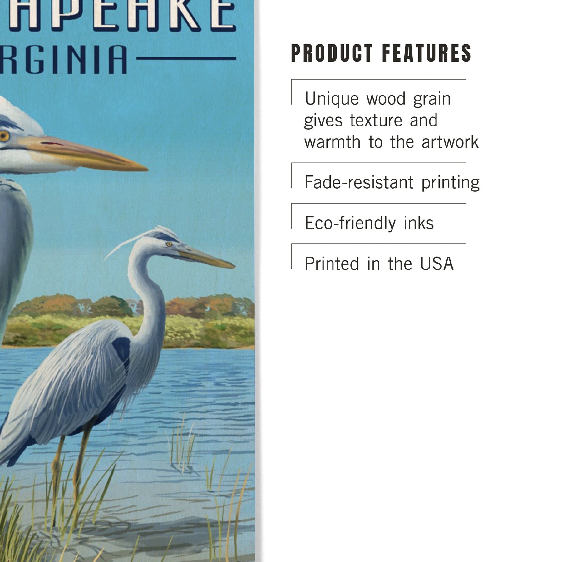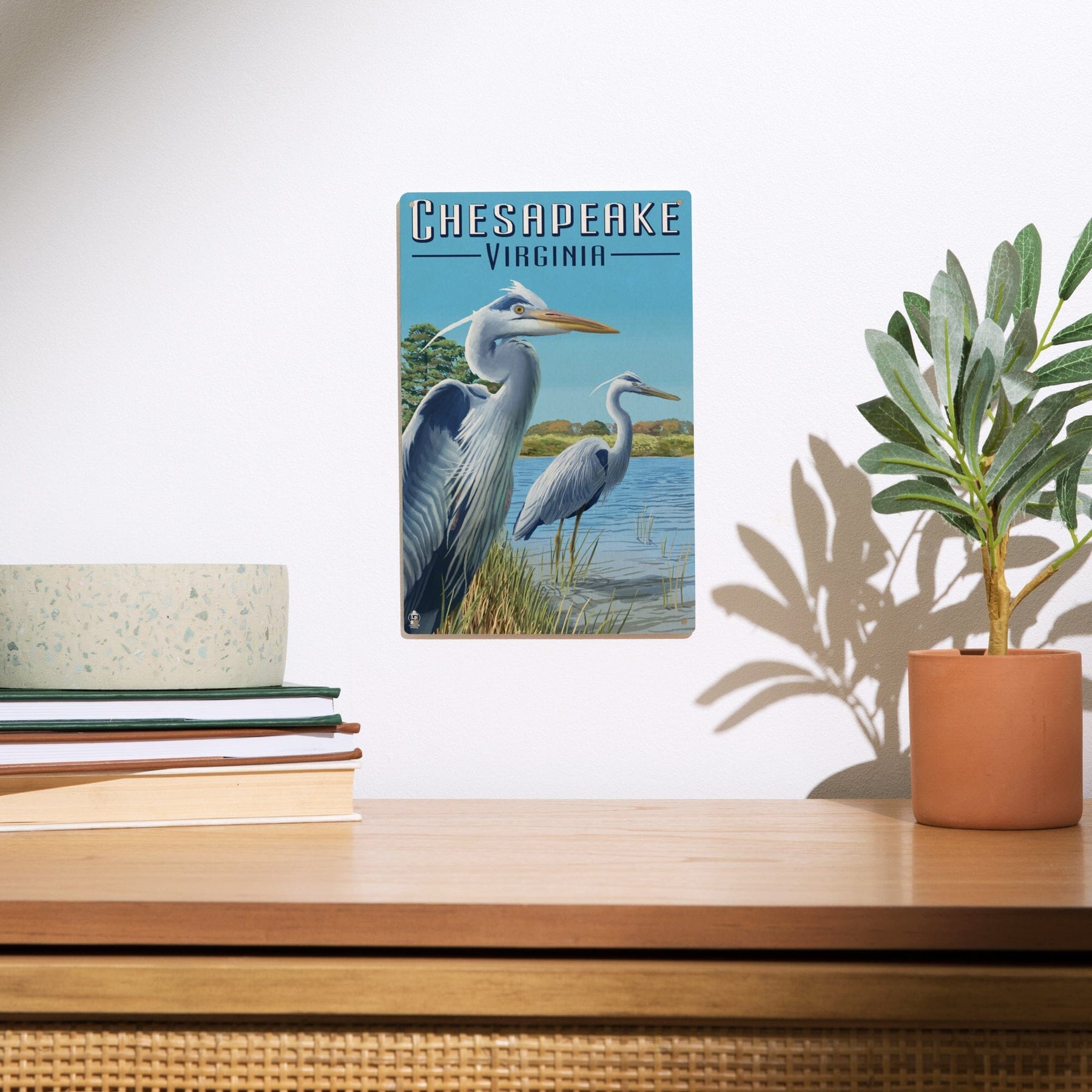 Chesapeake, Virginia, Blue Herons, Lantern Press Artwork, Wood Signs and Postcards
