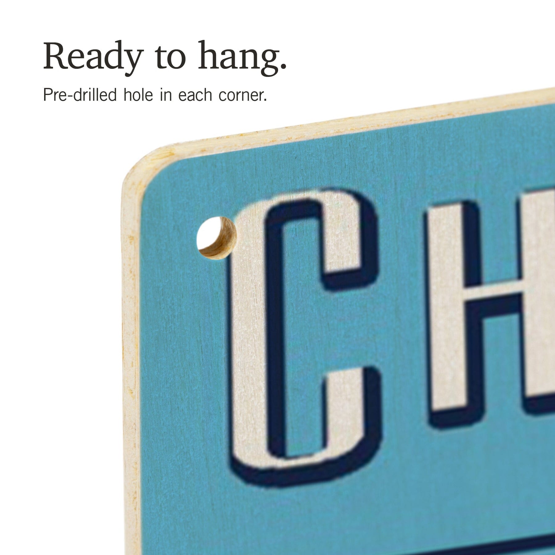 • Hole in each corner, ready to hang