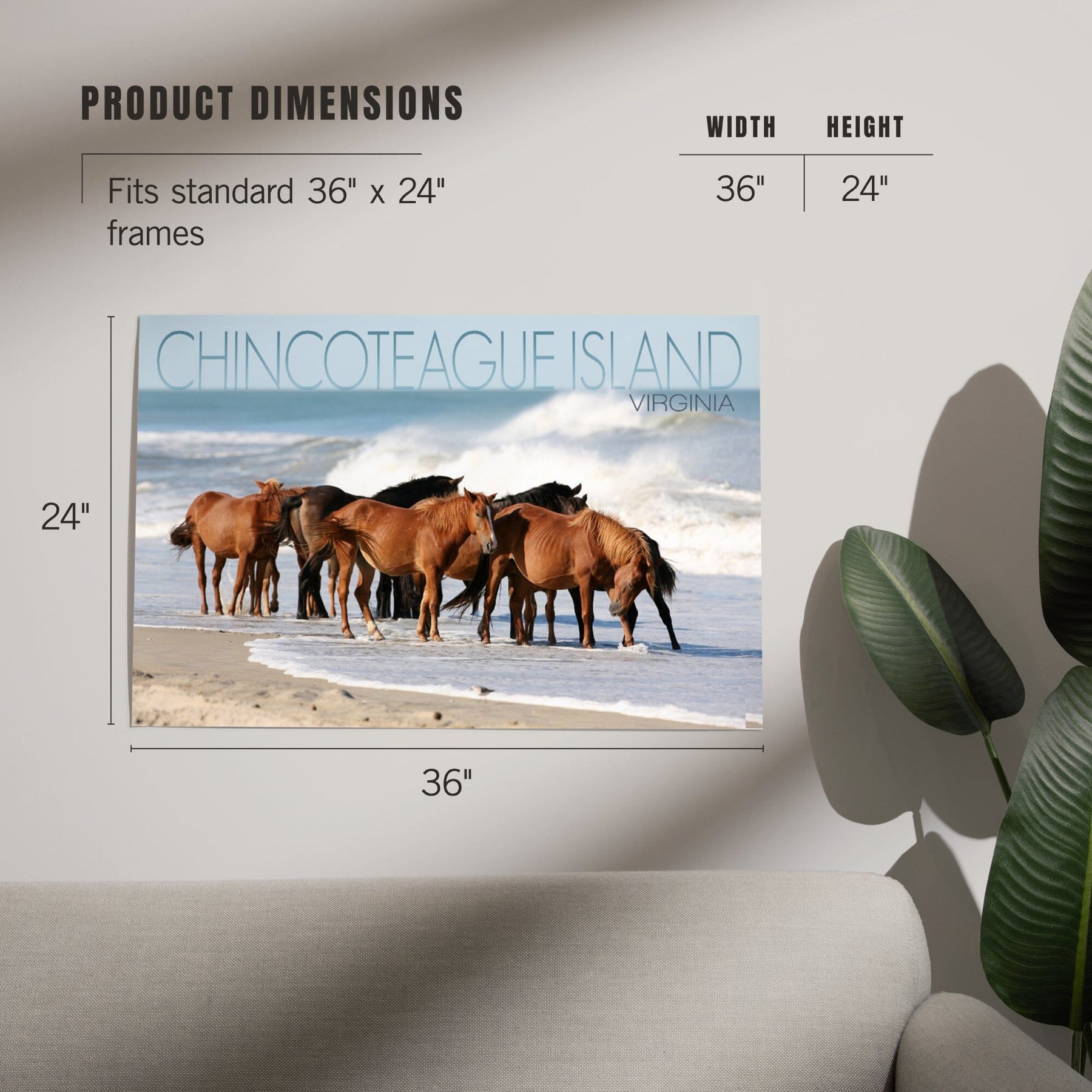Chincoteague Island, Virginia, Horses on Beach, Art & Giclee Prints - Lantern Press