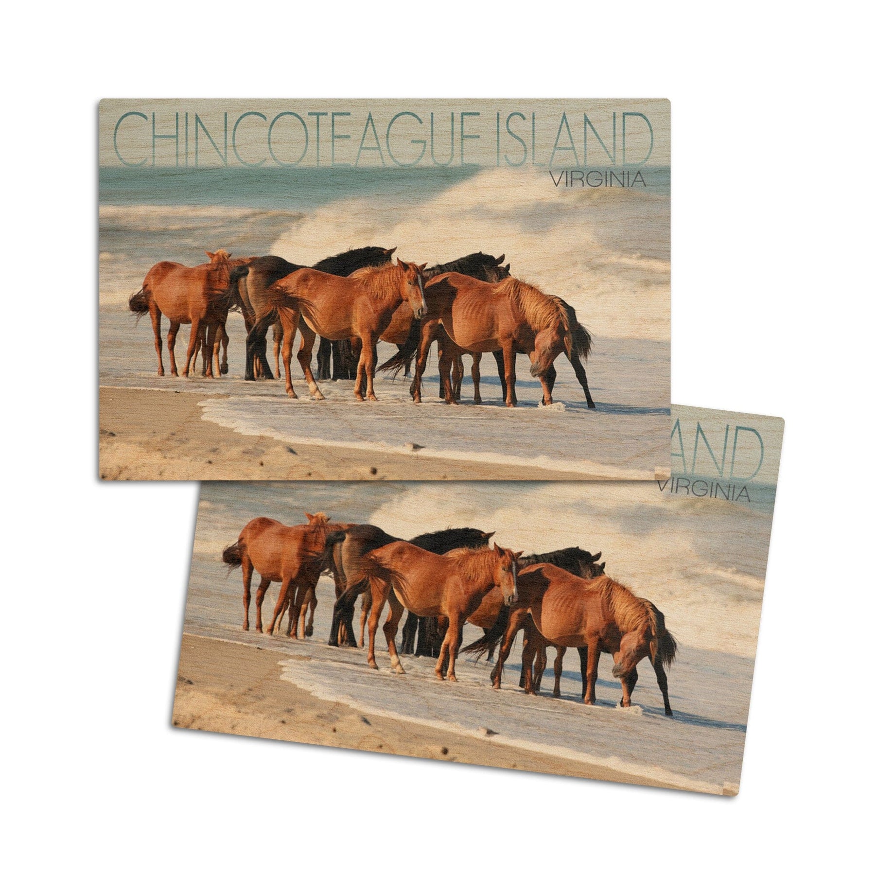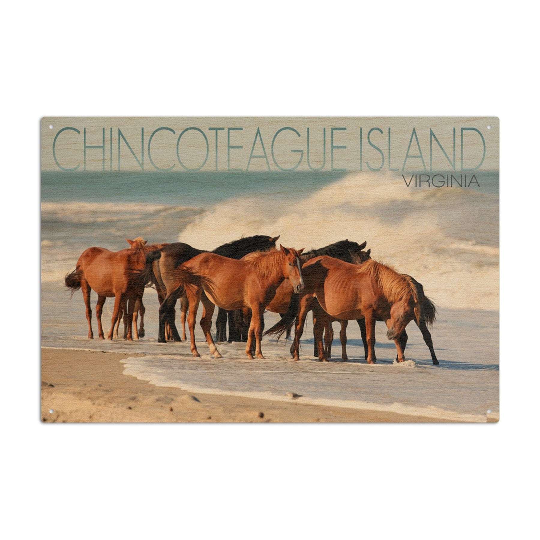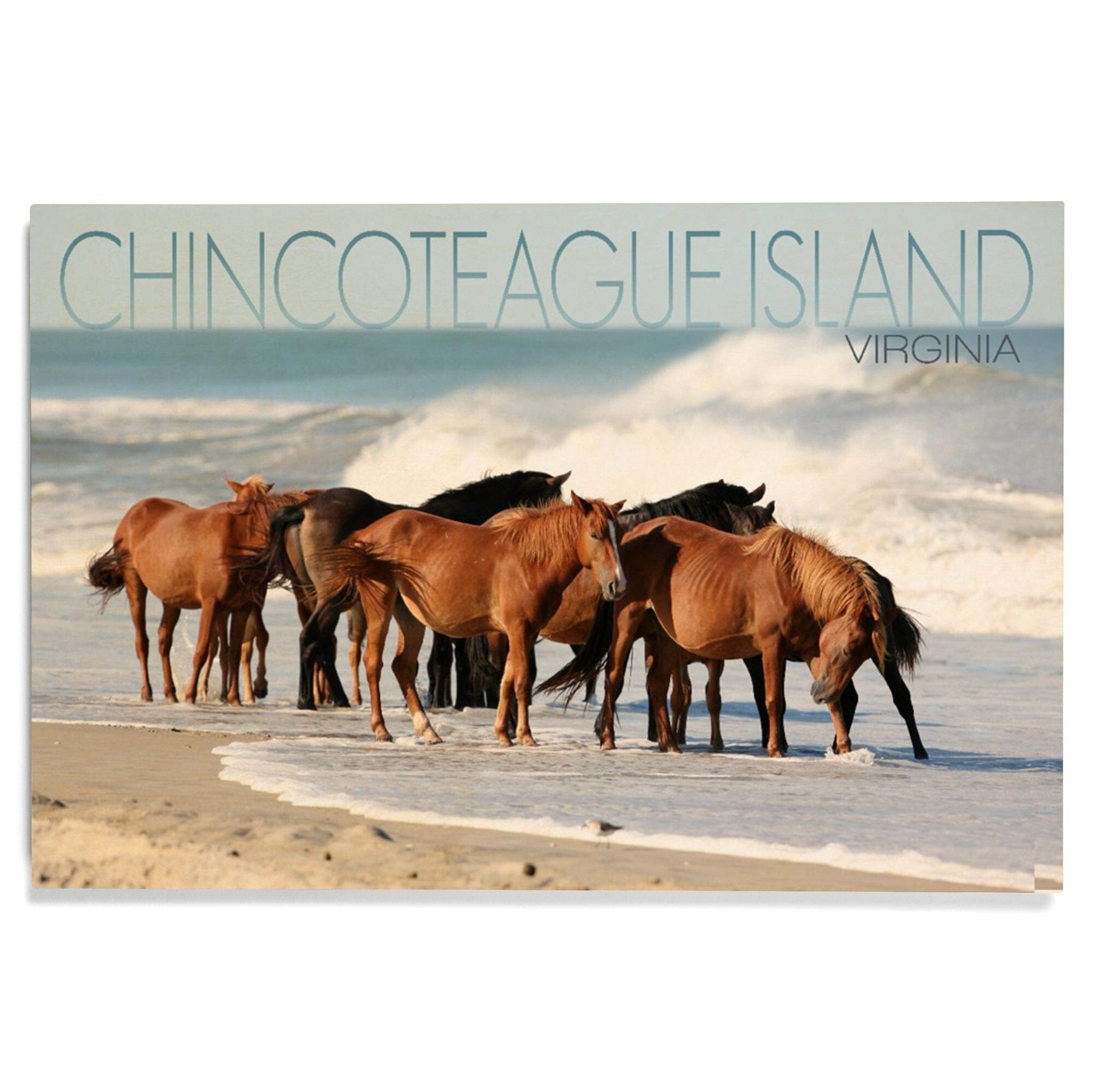 Chincoteague Island, Virginia, Horses on Beach, Lantern Press Photography, Wood Signs and Postcards - Lantern Press
