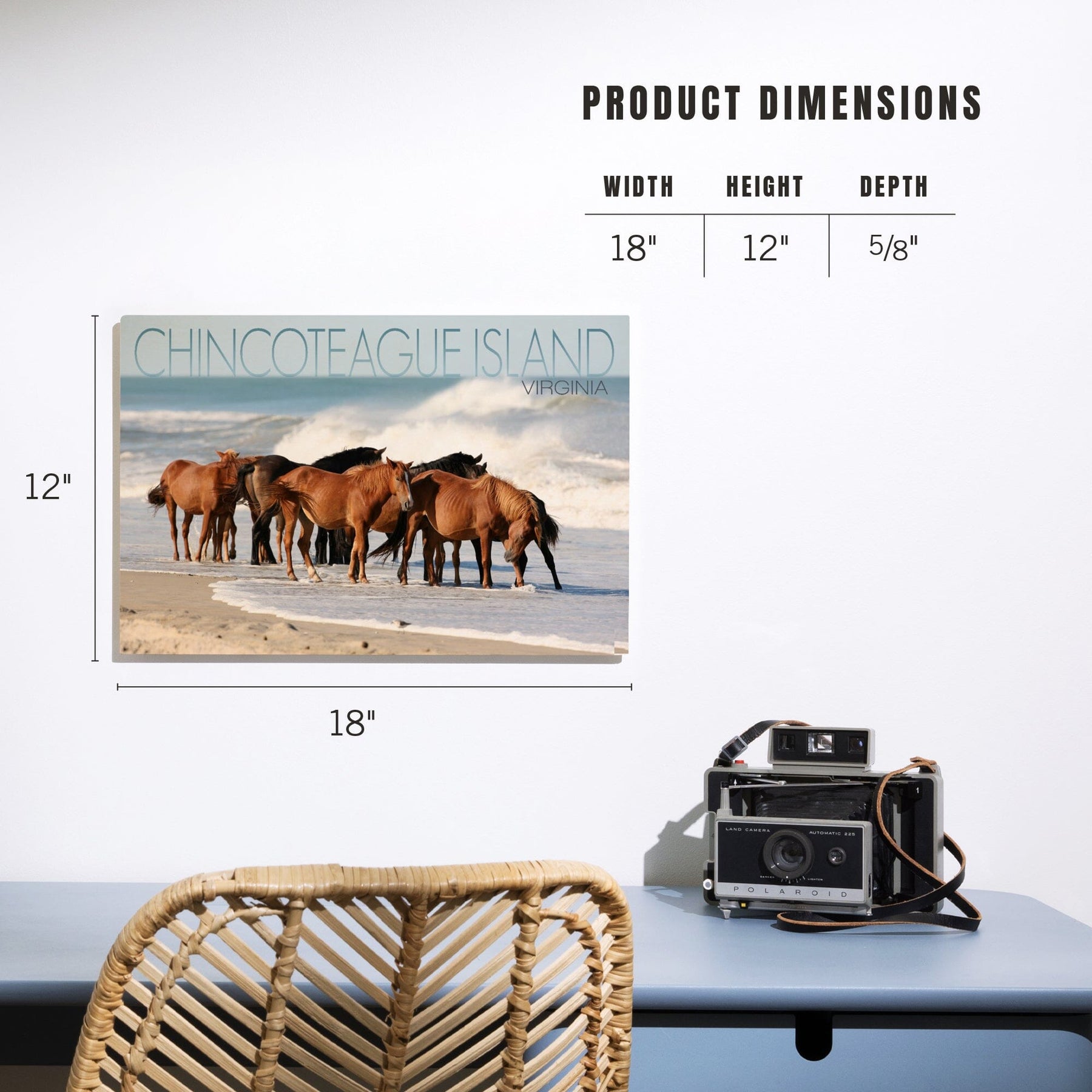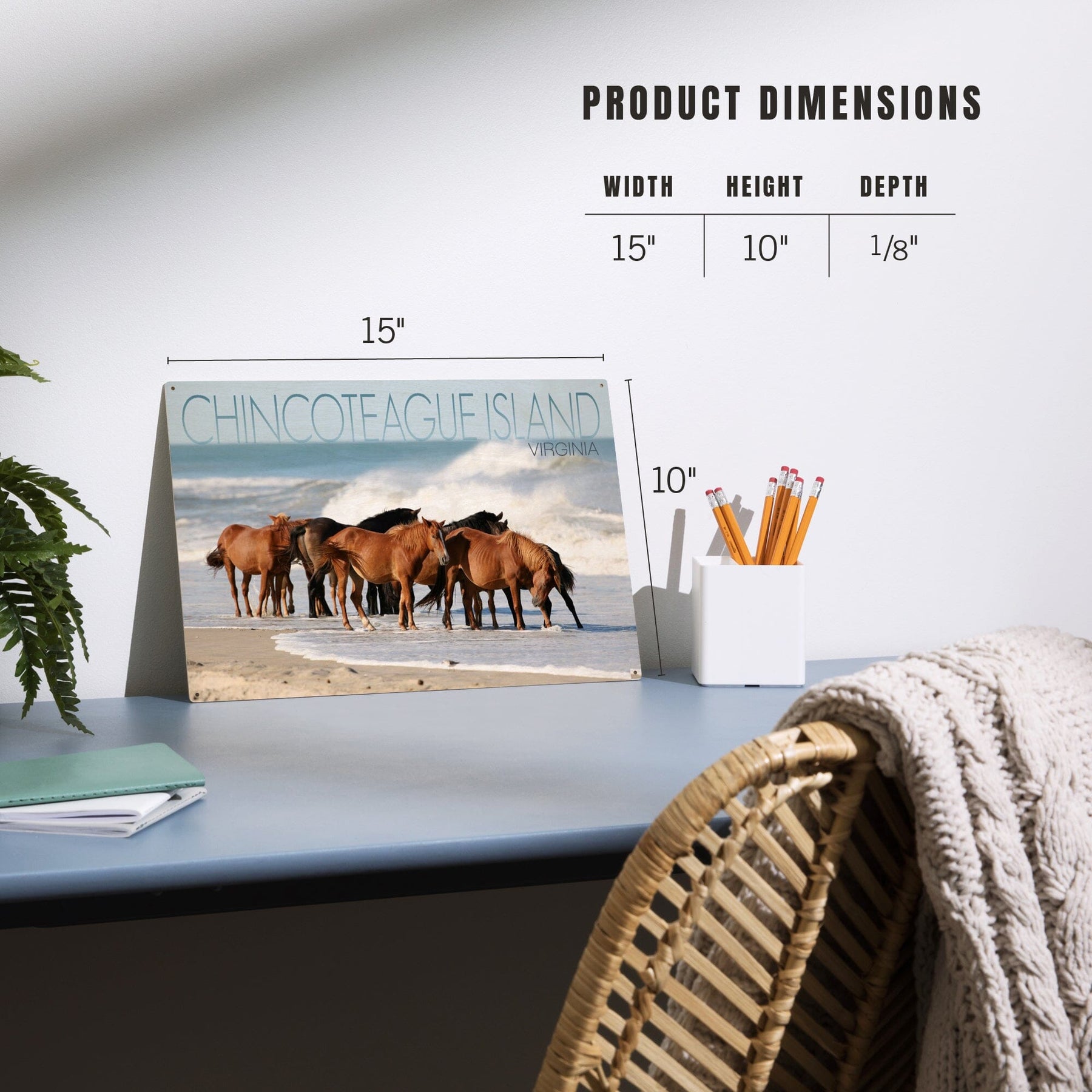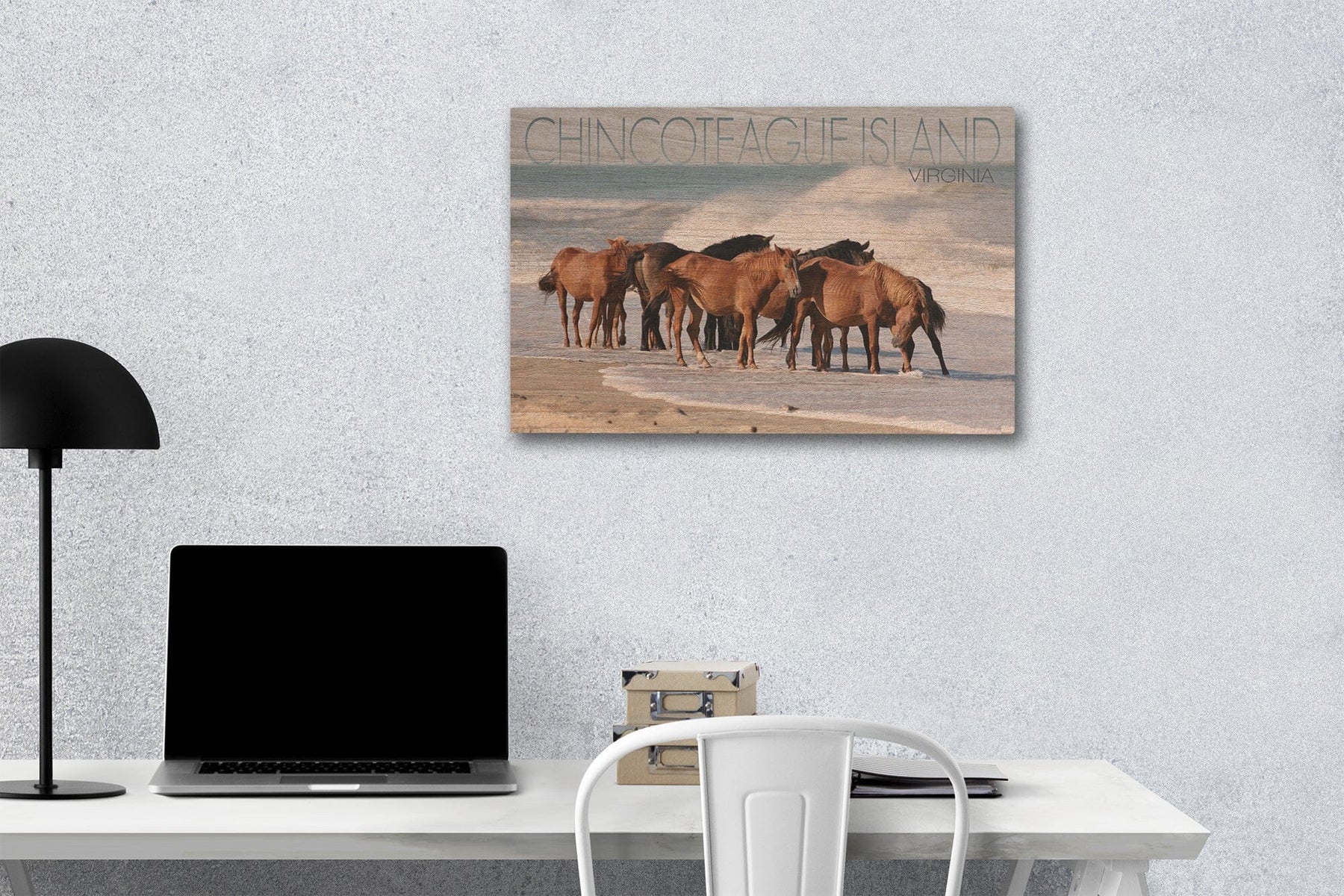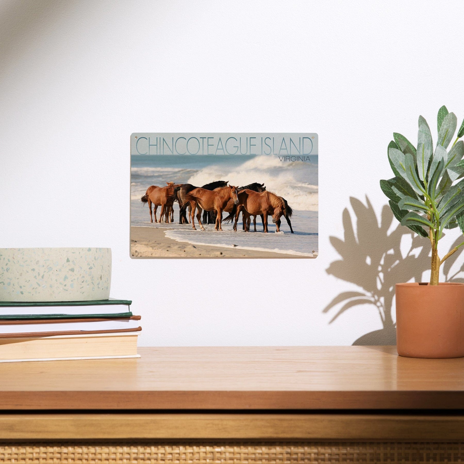 Chincoteague Island, Virginia, Horses on Beach, Lantern Press Photography, Wood Signs and Postcards - Lantern Press