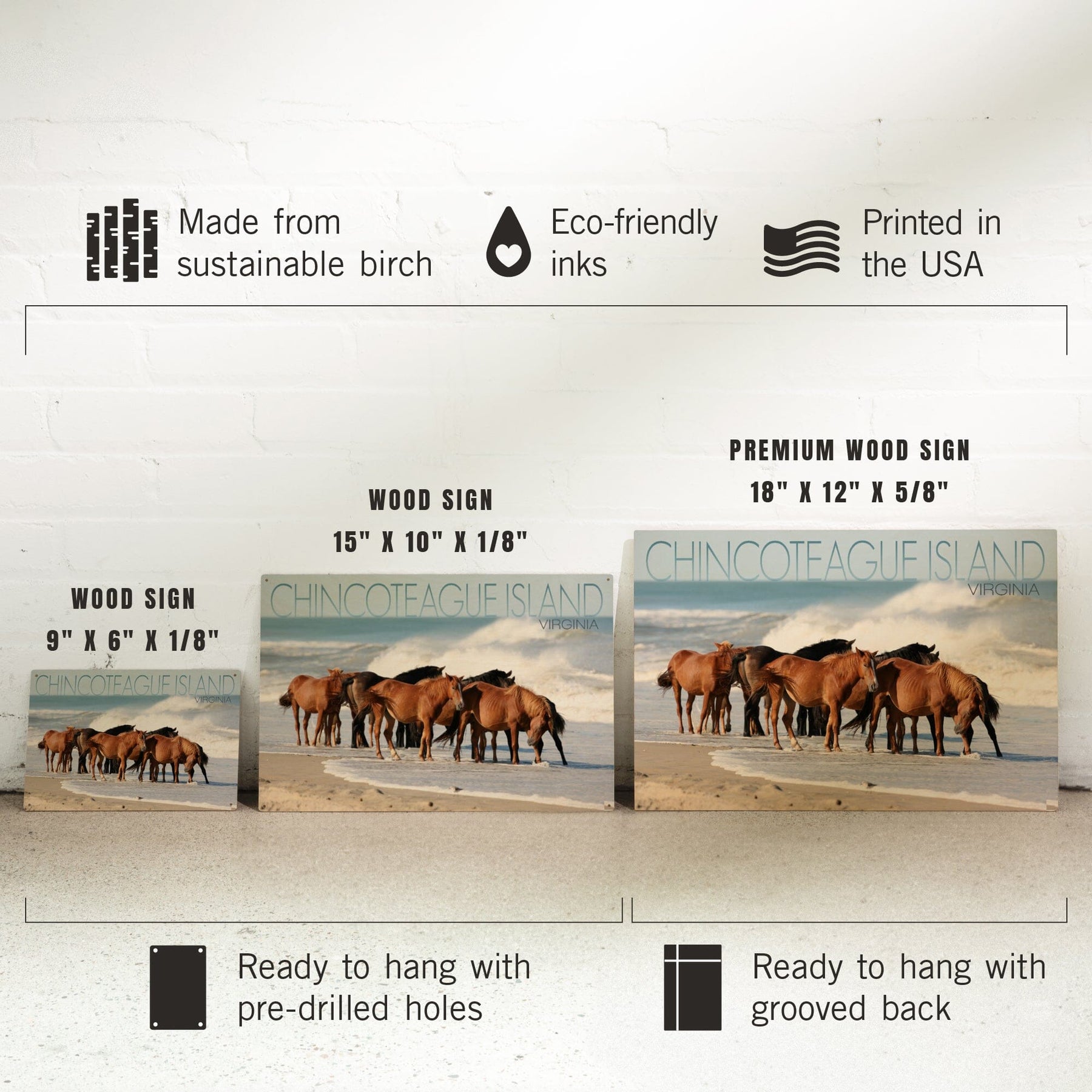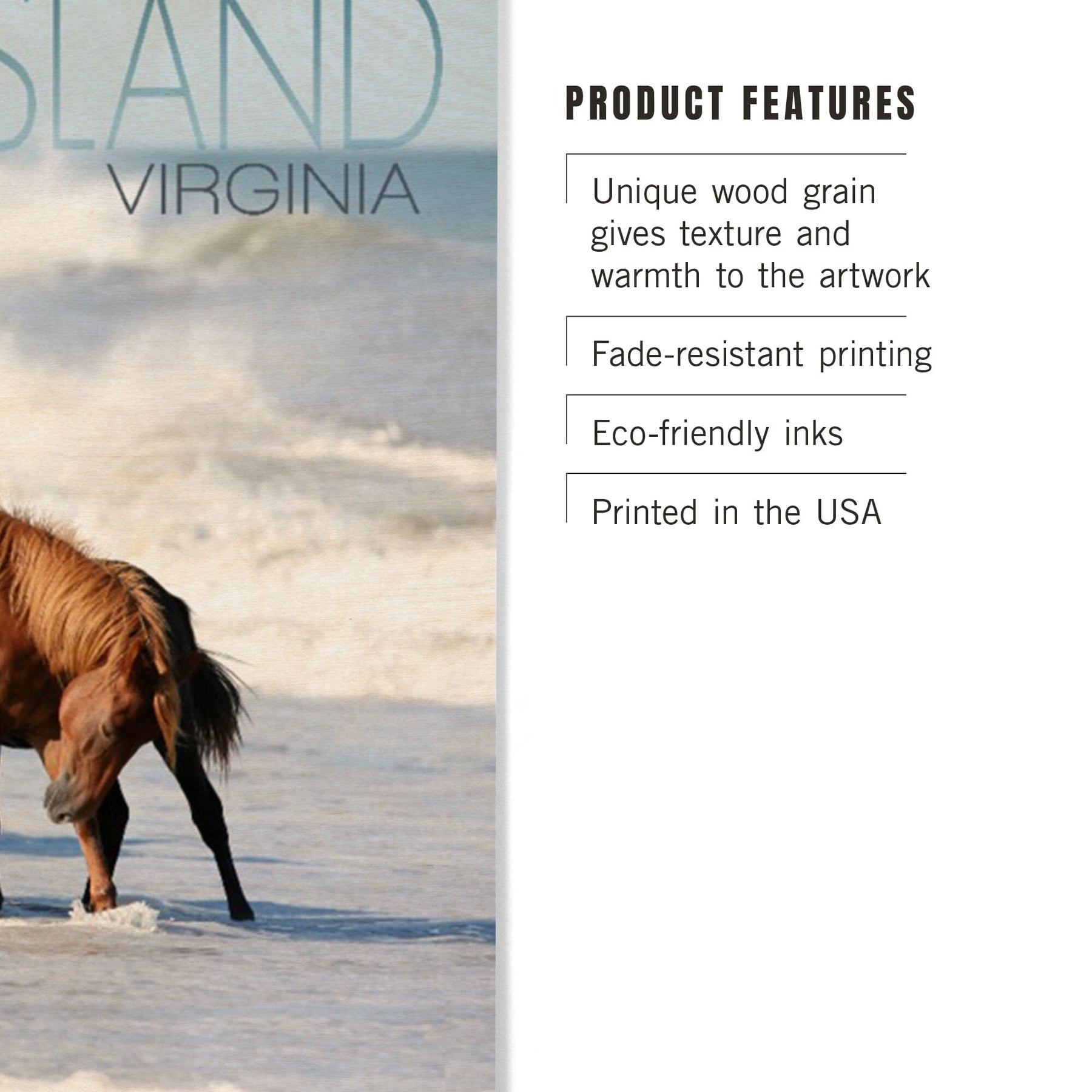 Chincoteague Island, Virginia, Horses on Beach, Lantern Press Photography, Wood Signs and Postcards