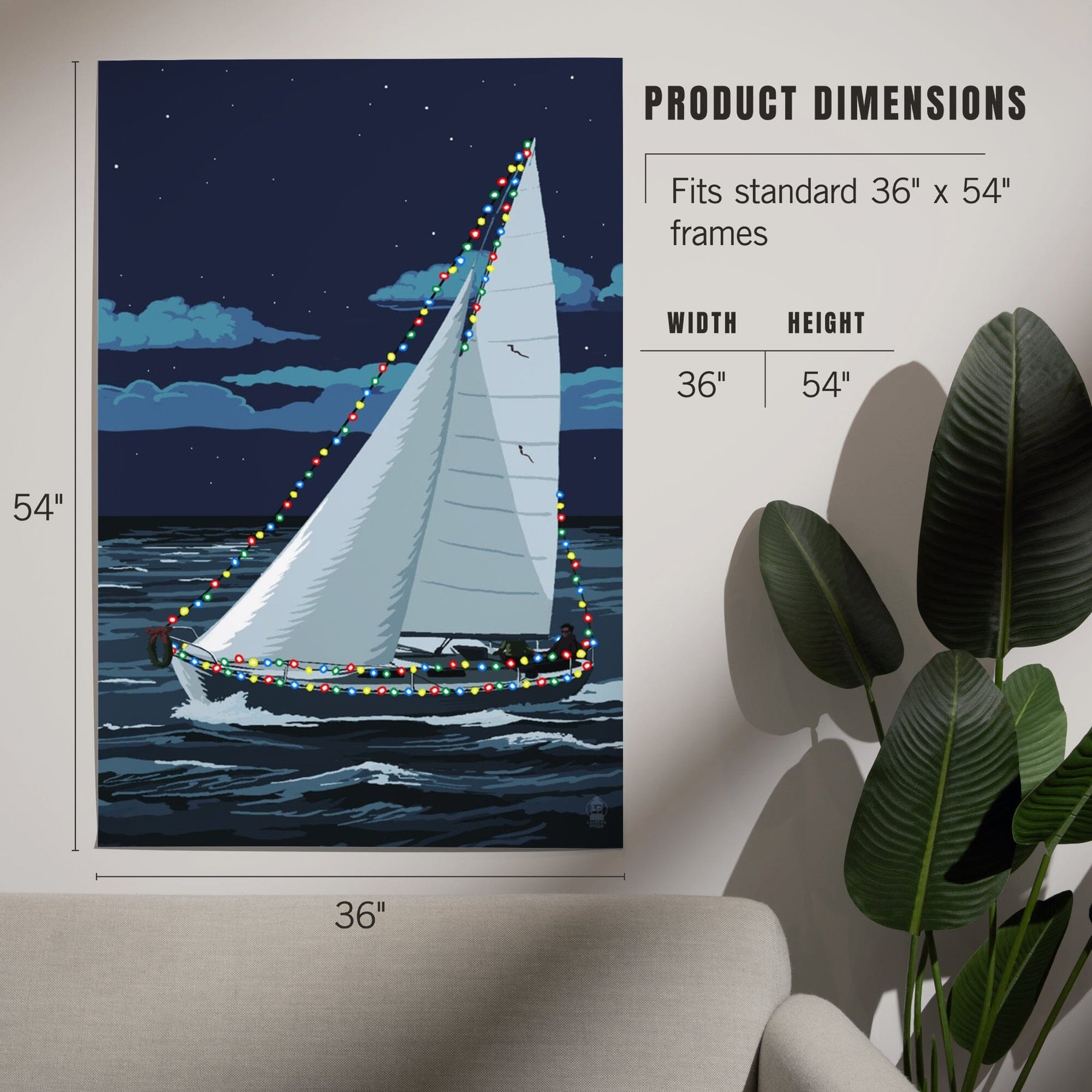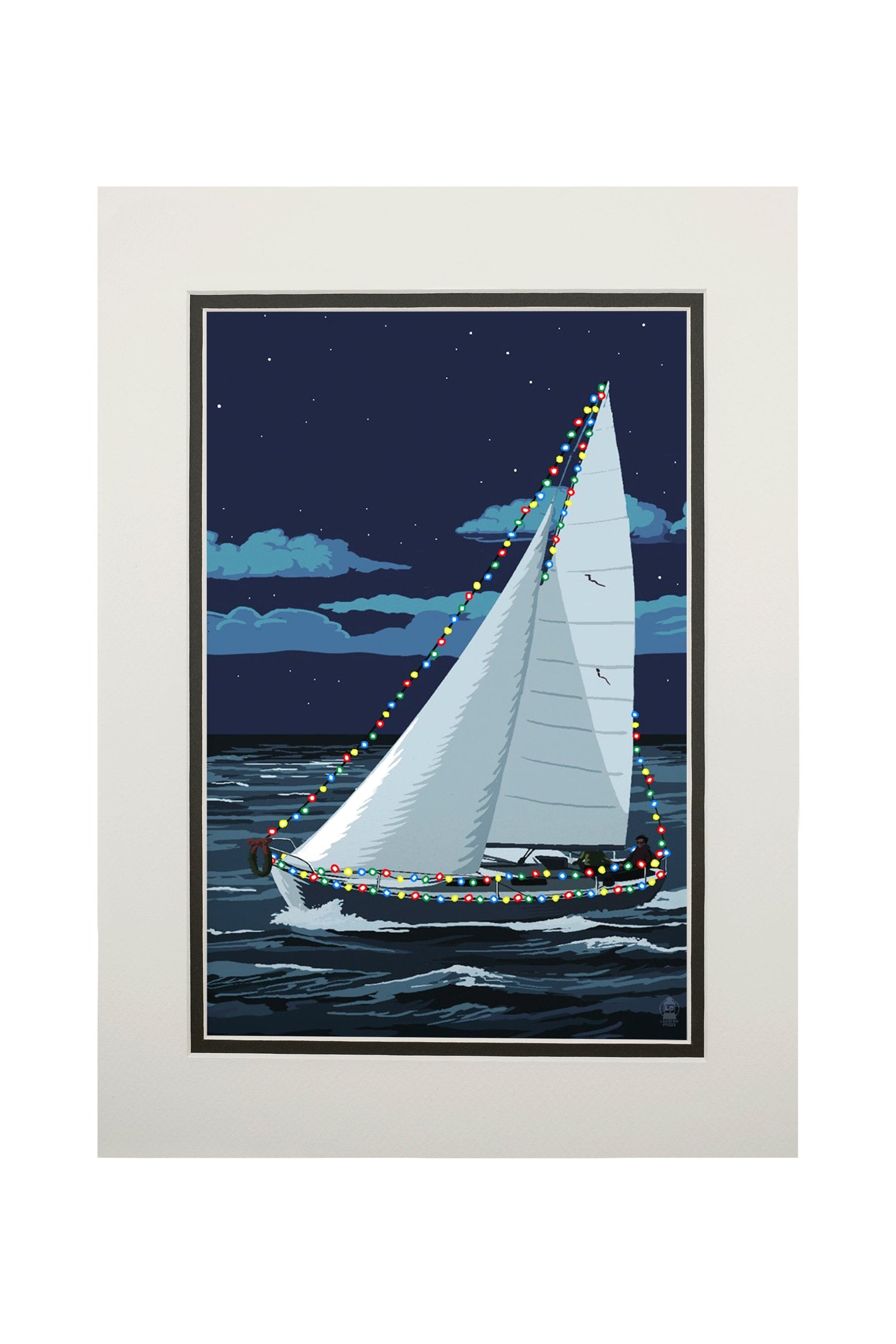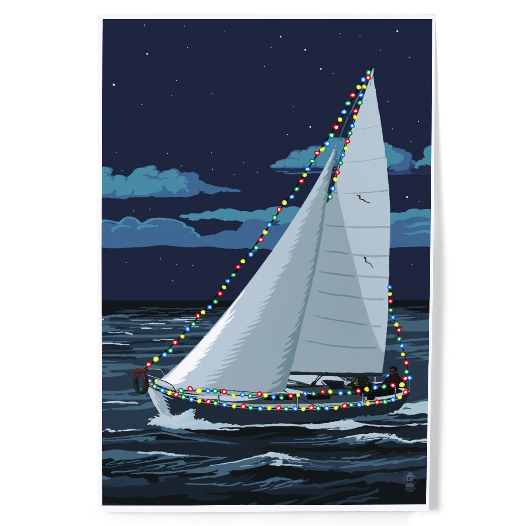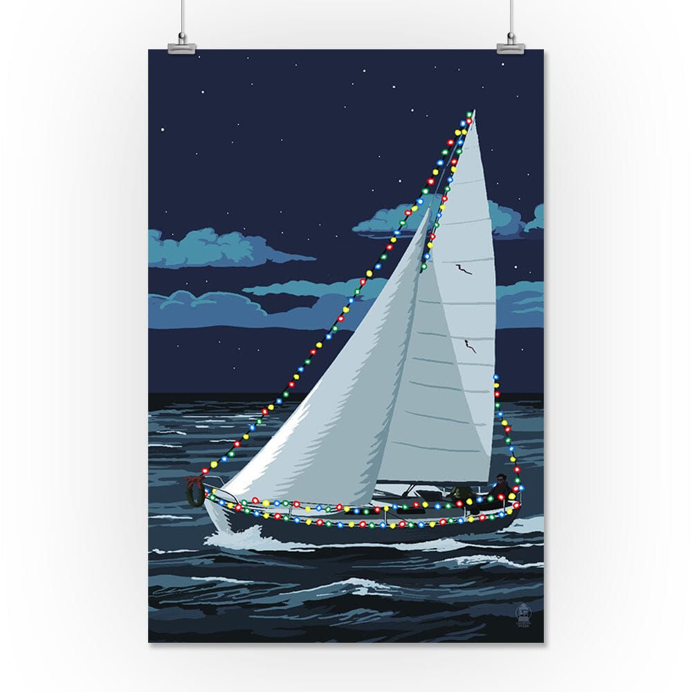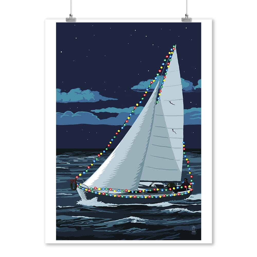 Christmas Lights Sailboat, Art & Giclee Prints Art Lantern Press