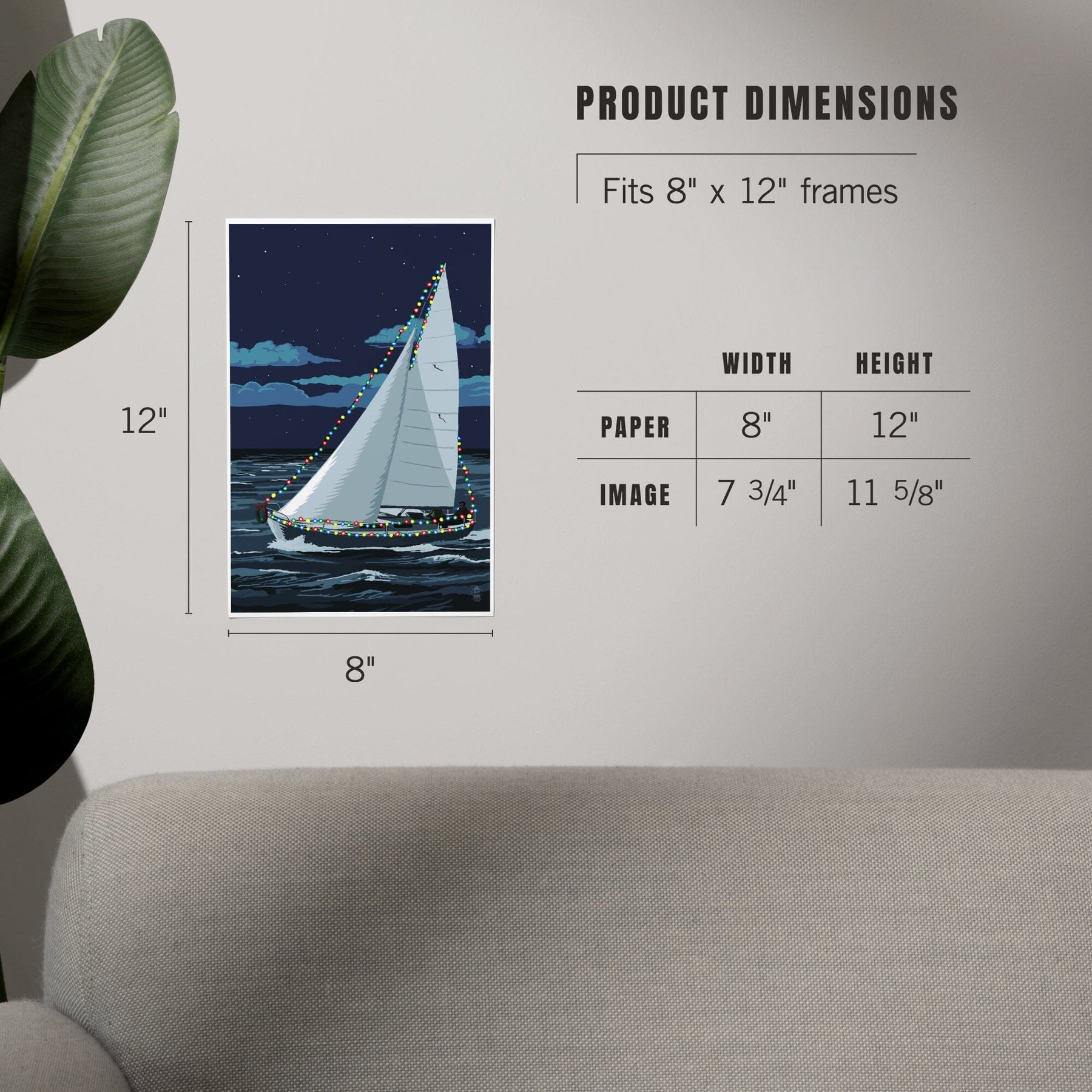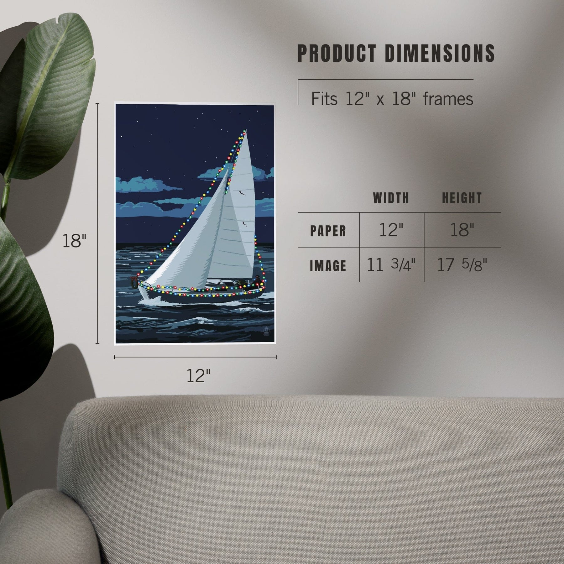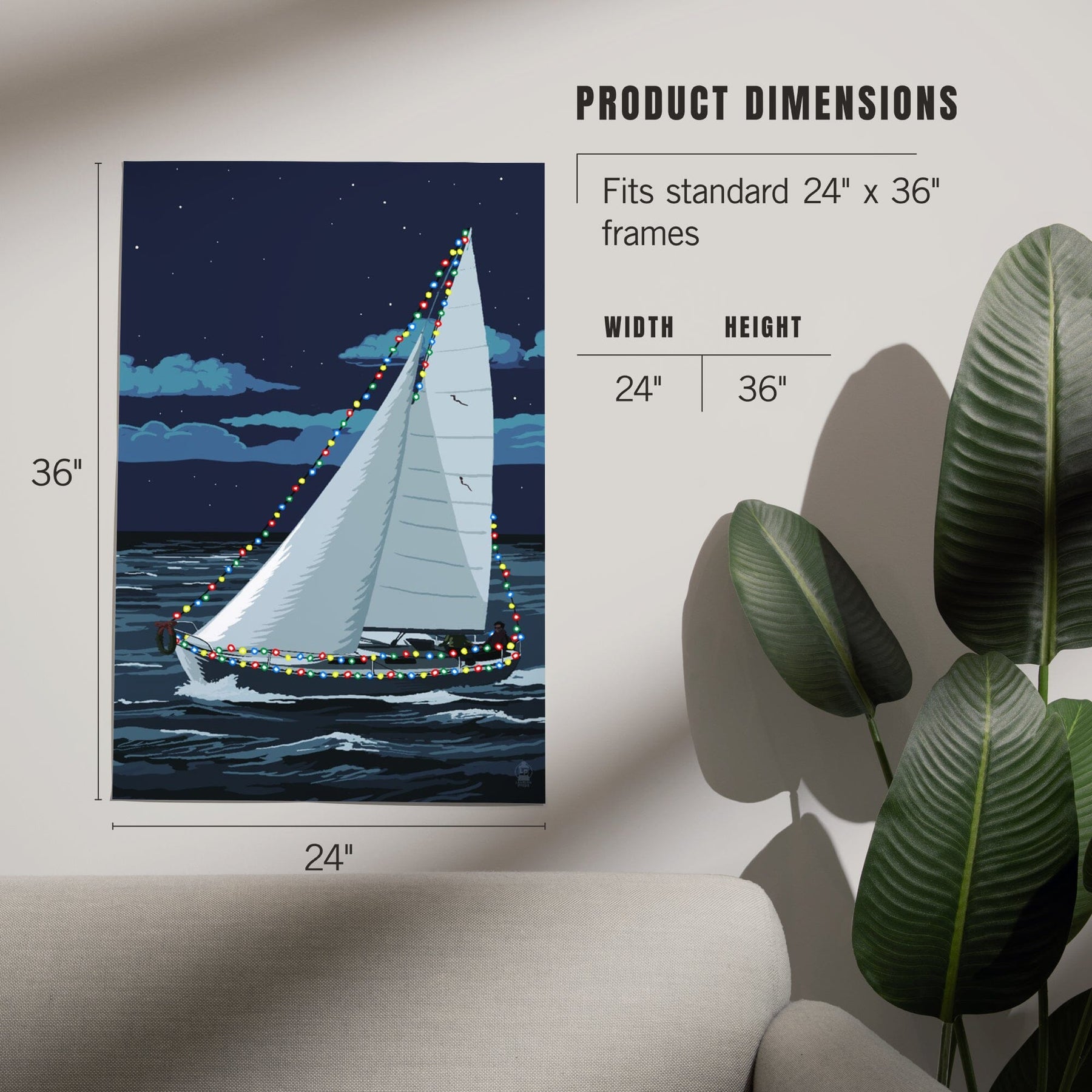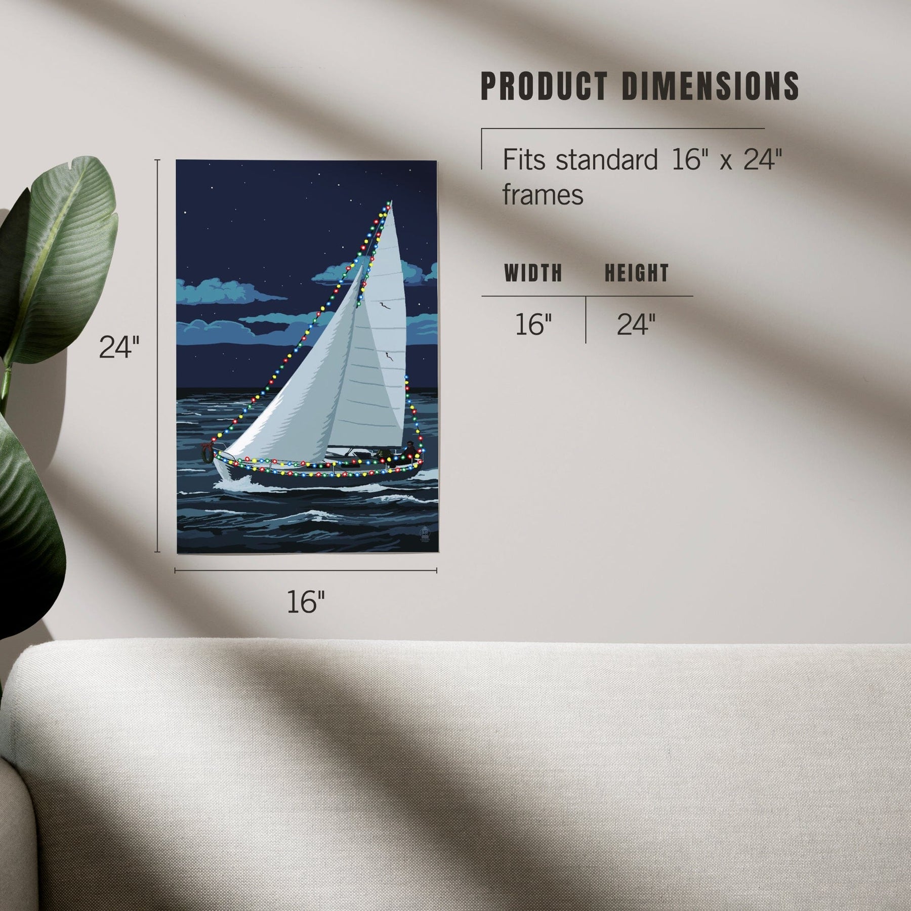 Christmas Lights Sailboat, Art & Giclee Prints Art Lantern Press