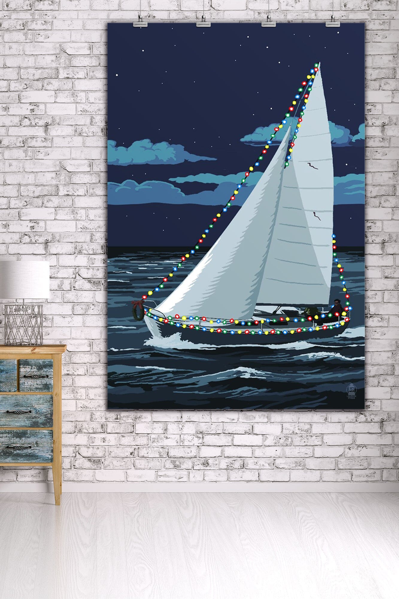 Christmas Lights Sailboat, Art & Giclee Prints